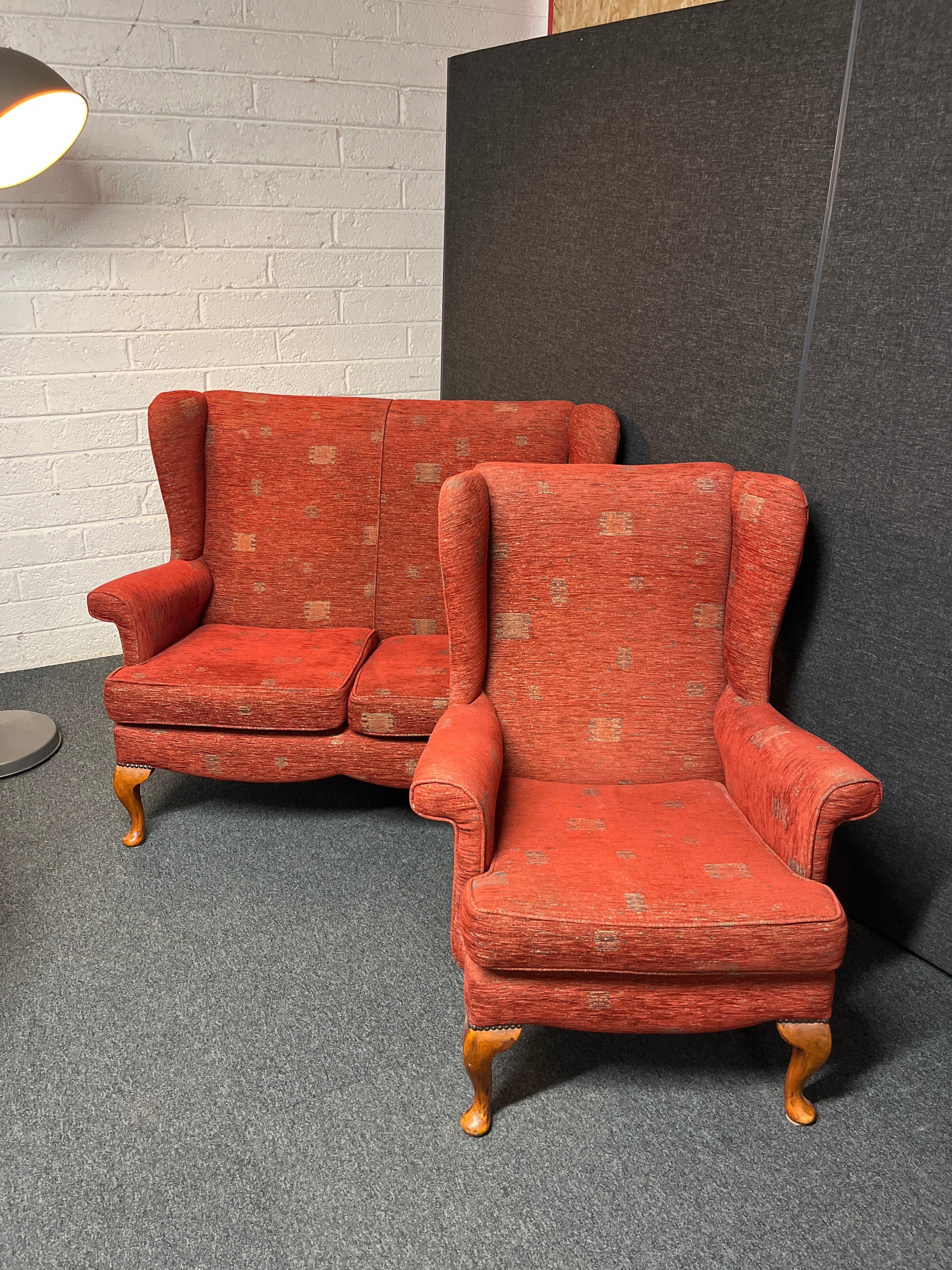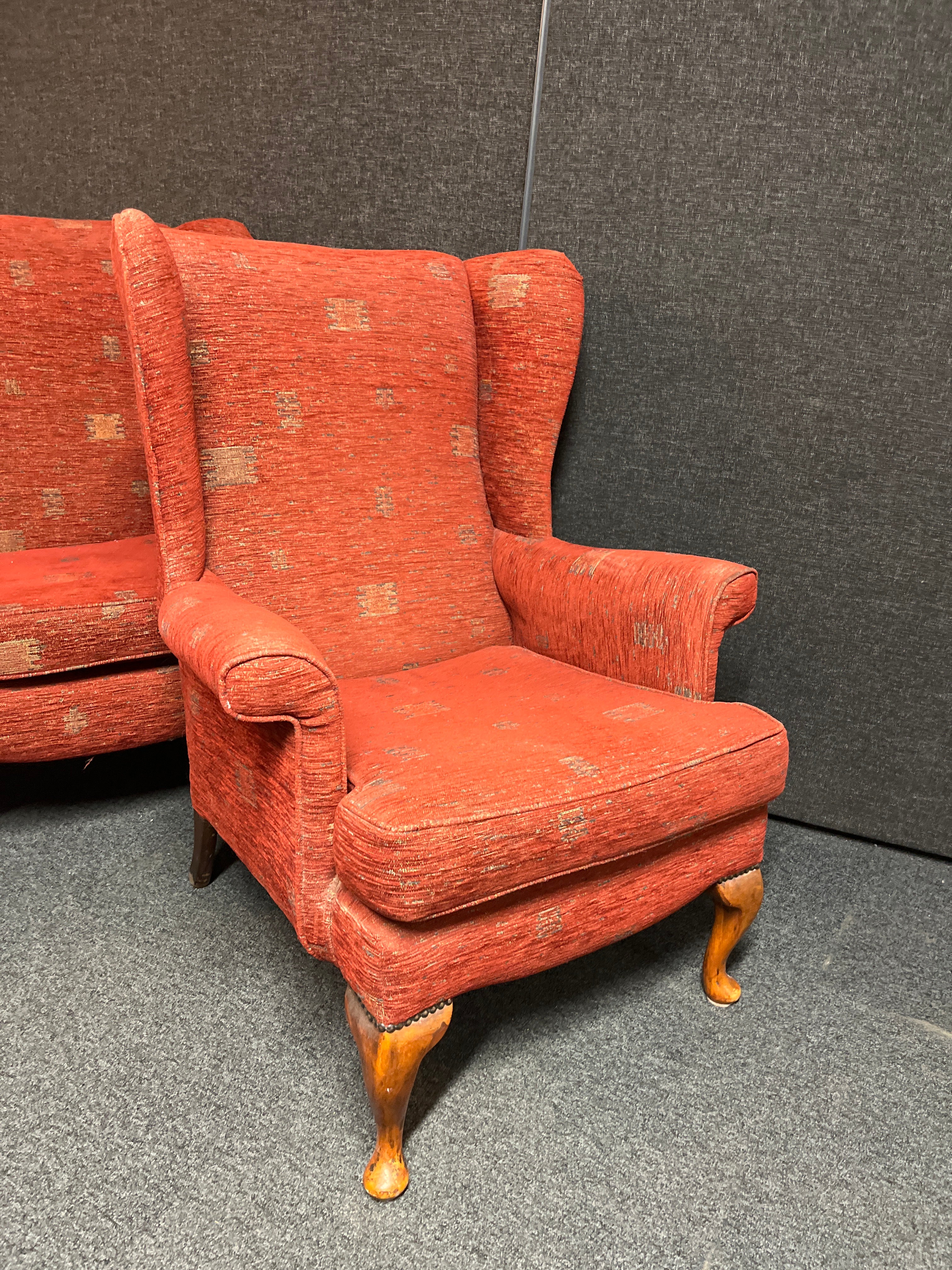 - Share: 2+1 Wine mix fabric Queen Anne wing back suite 2225