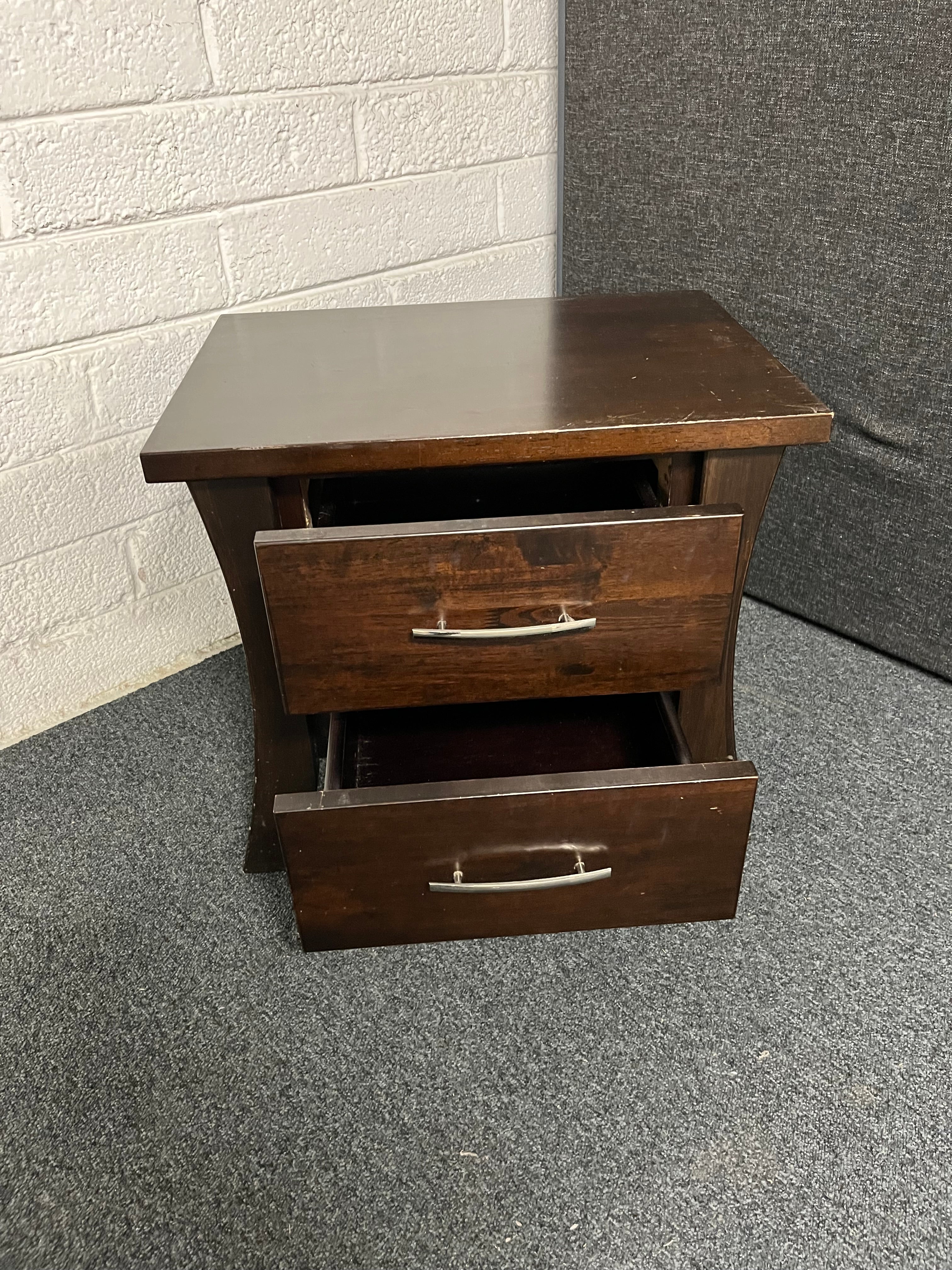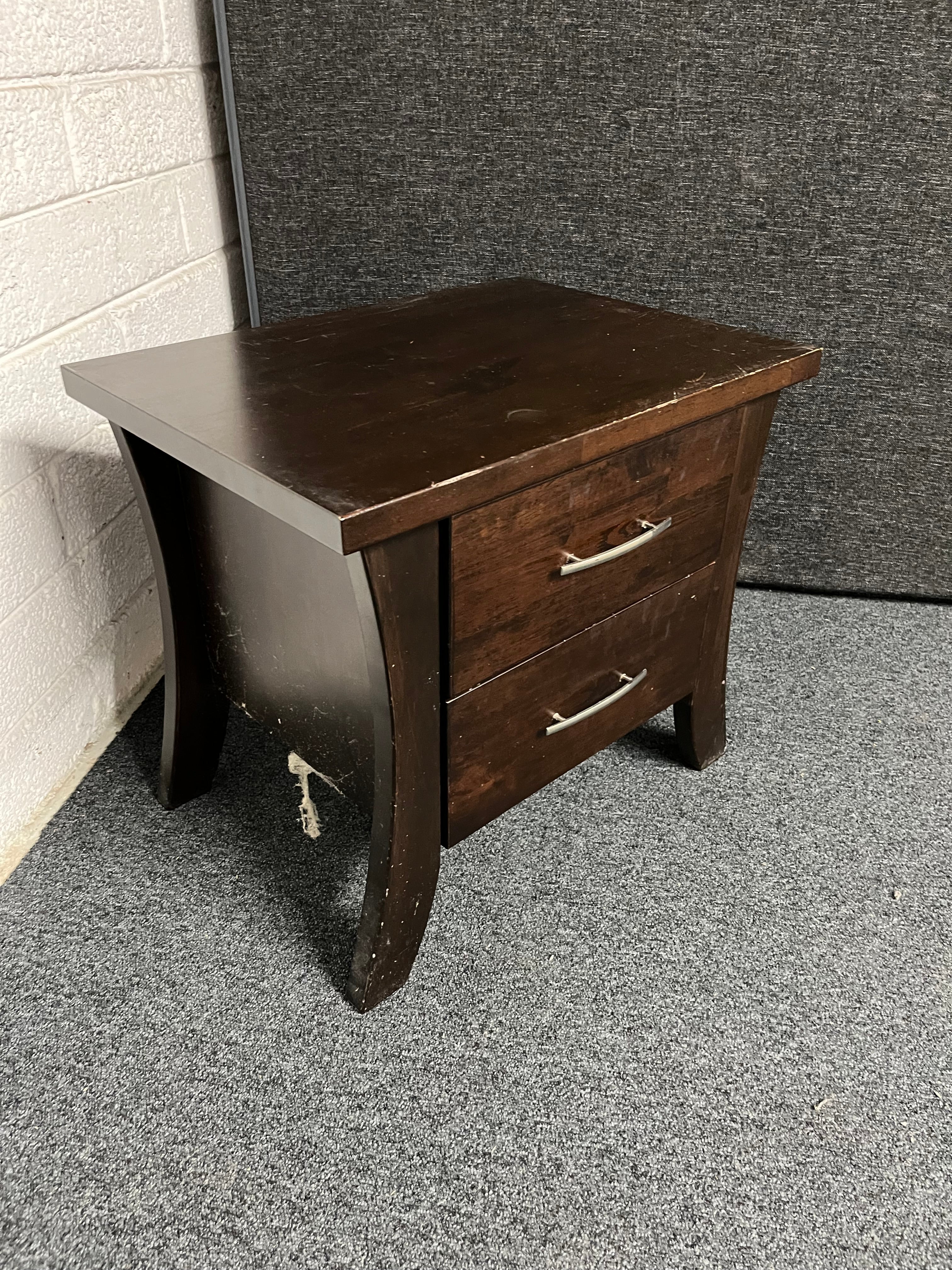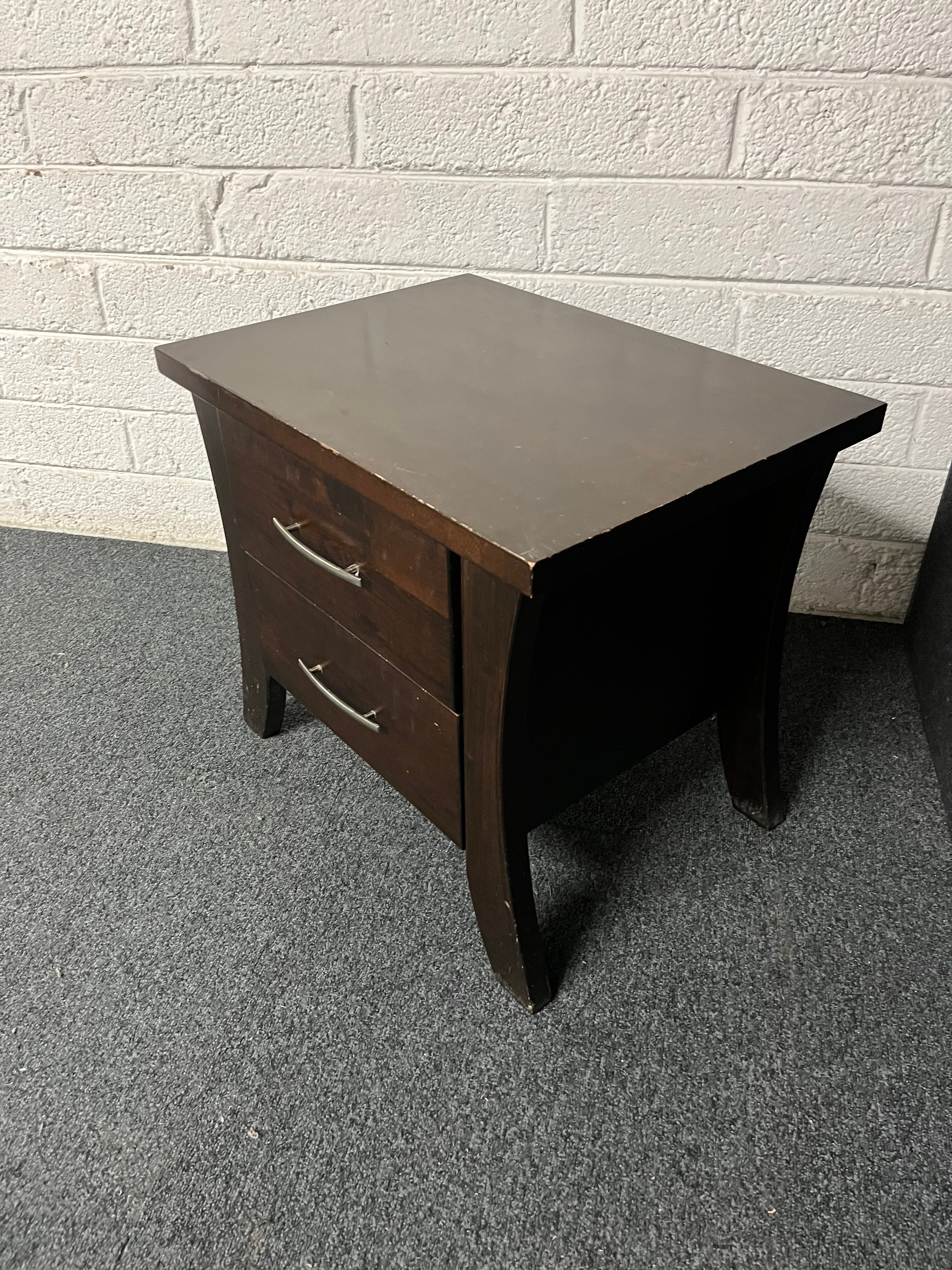 2 drawer dark wood stained bedside lockers