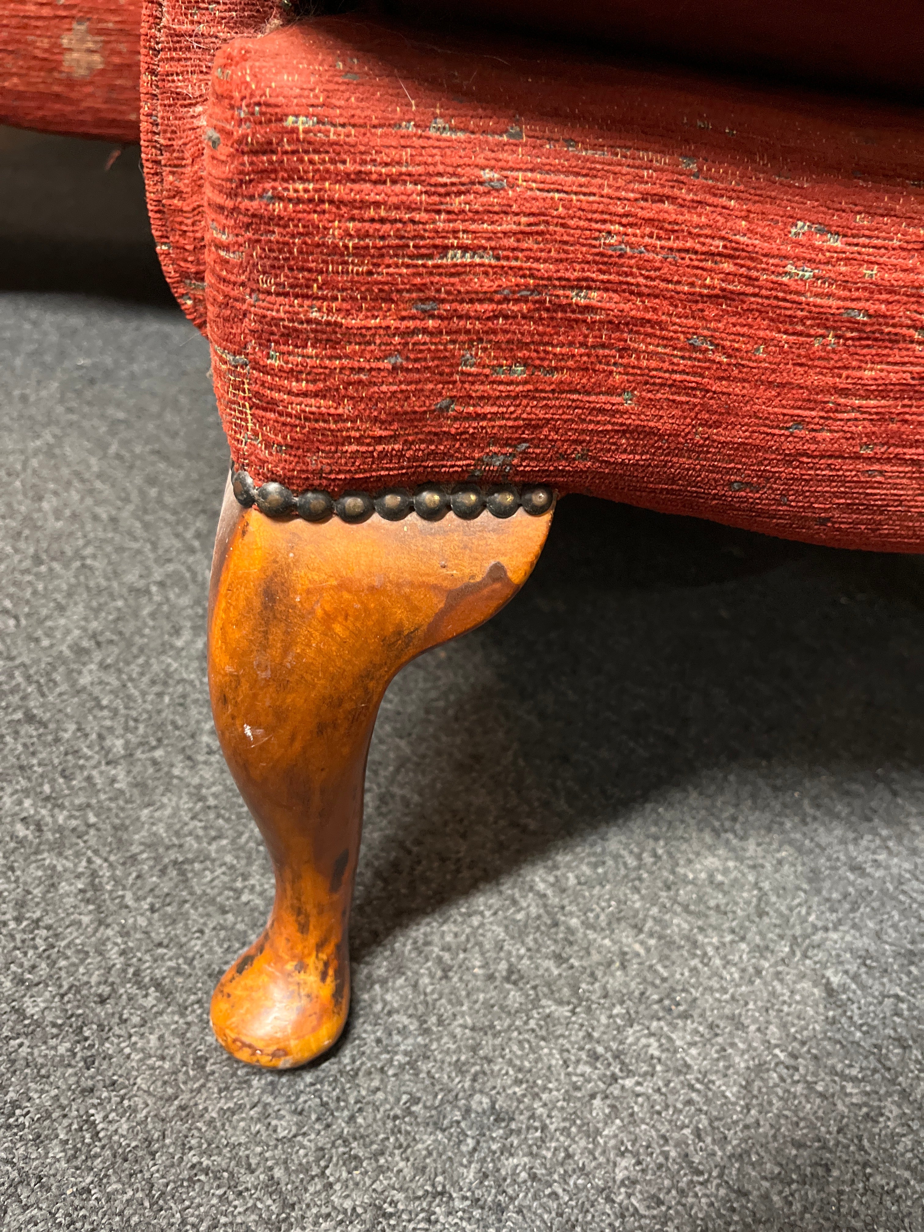 2 seater wine mix fabric Queen Anne wing back suite