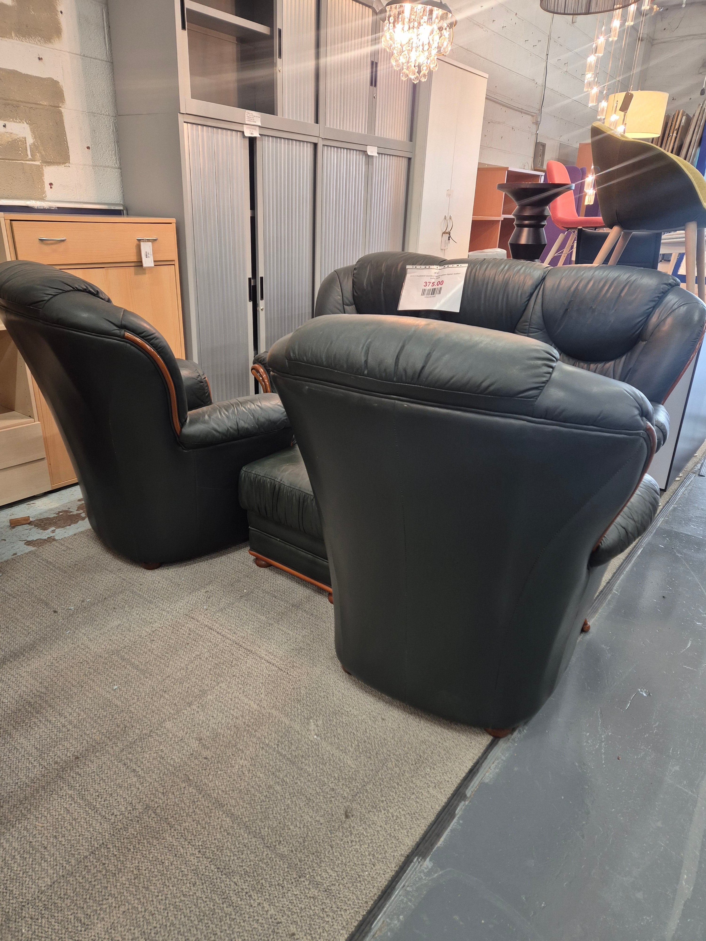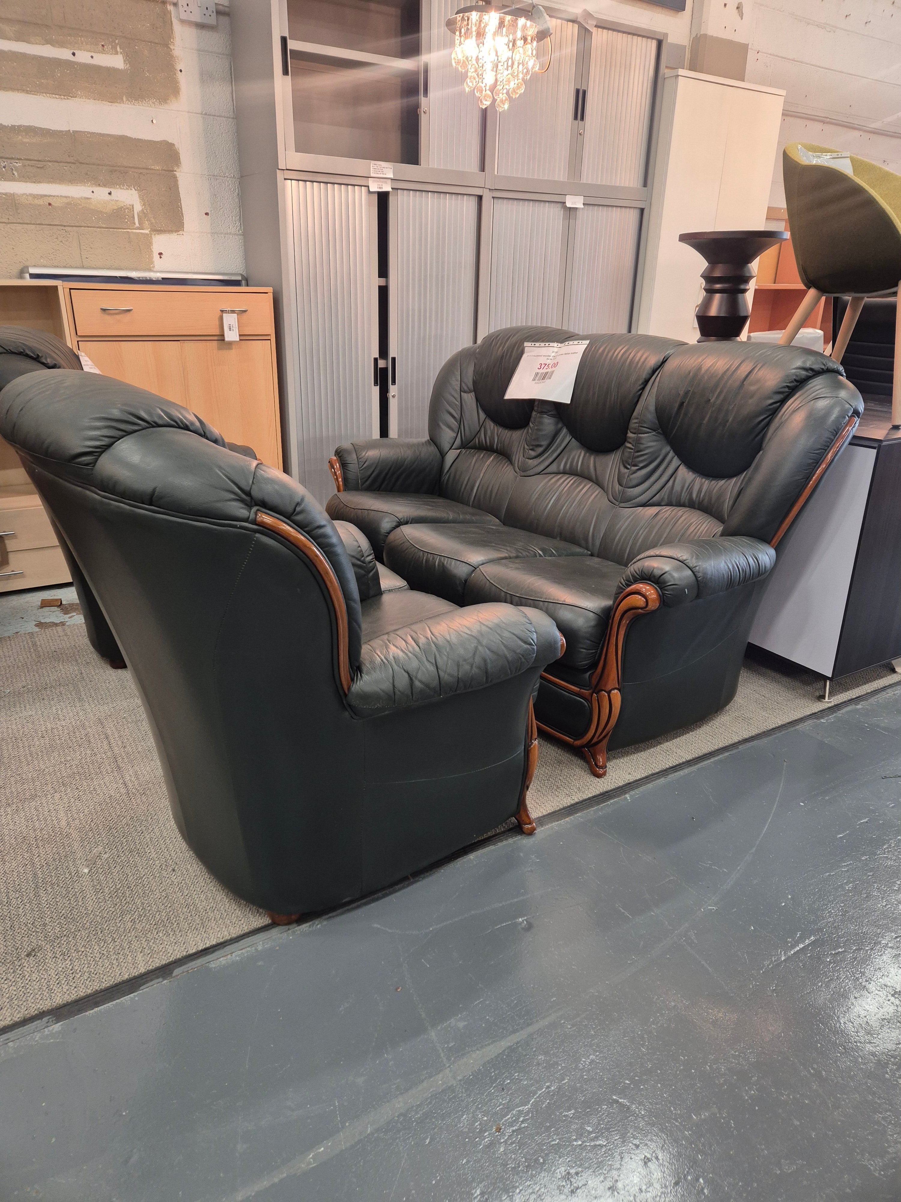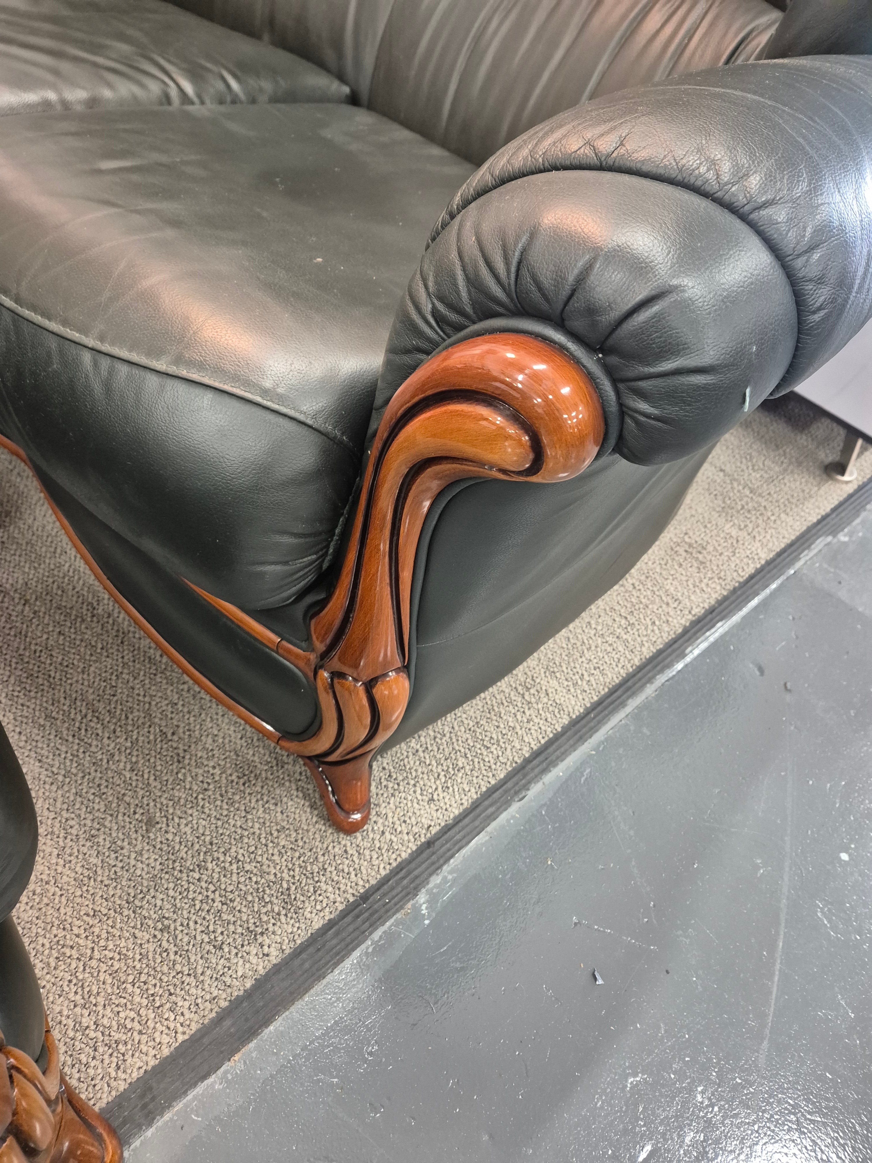 3+1+1+footstool wooden frames green Italian leather suite 1225