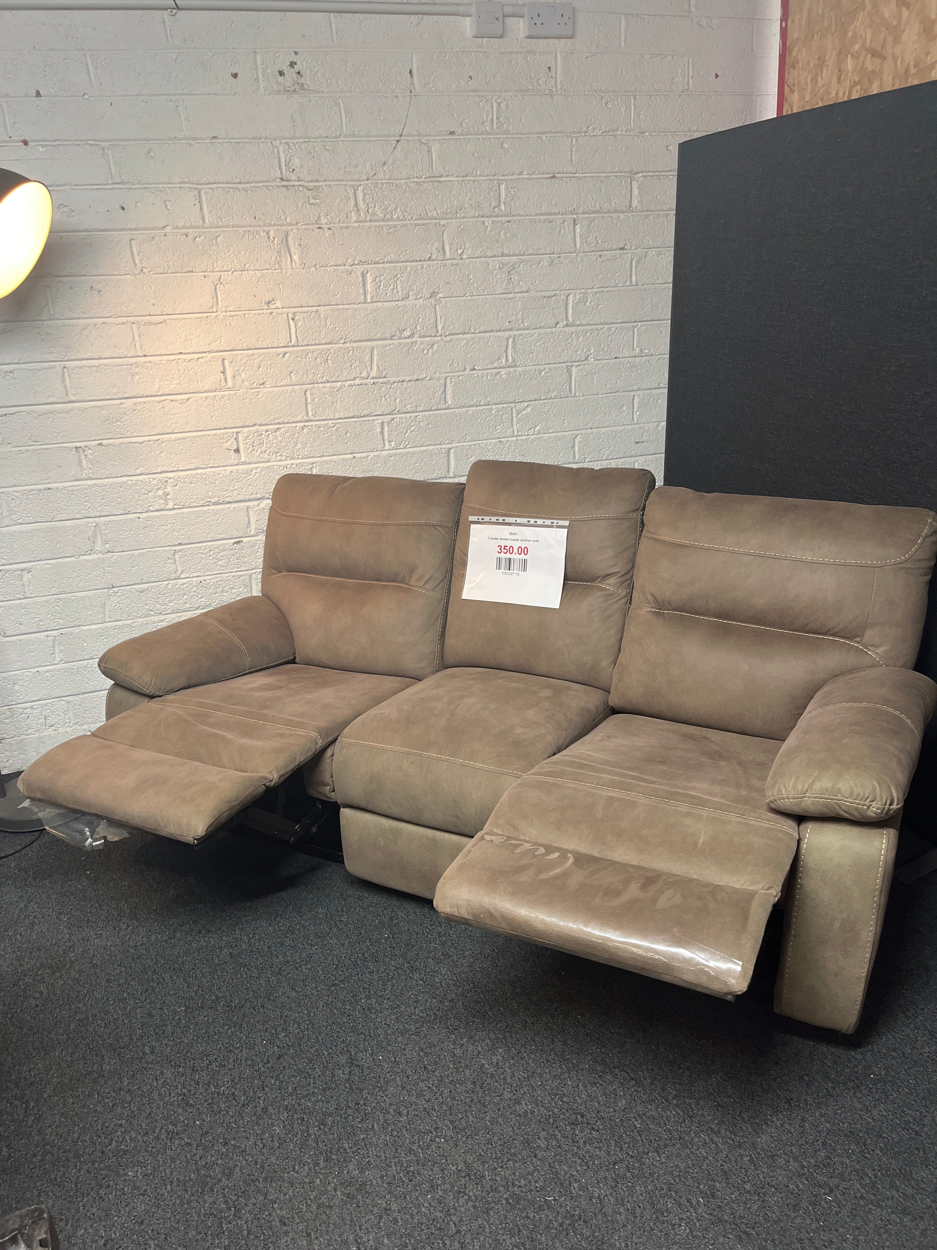 - Share: 3 seater brown suede recliner sofa