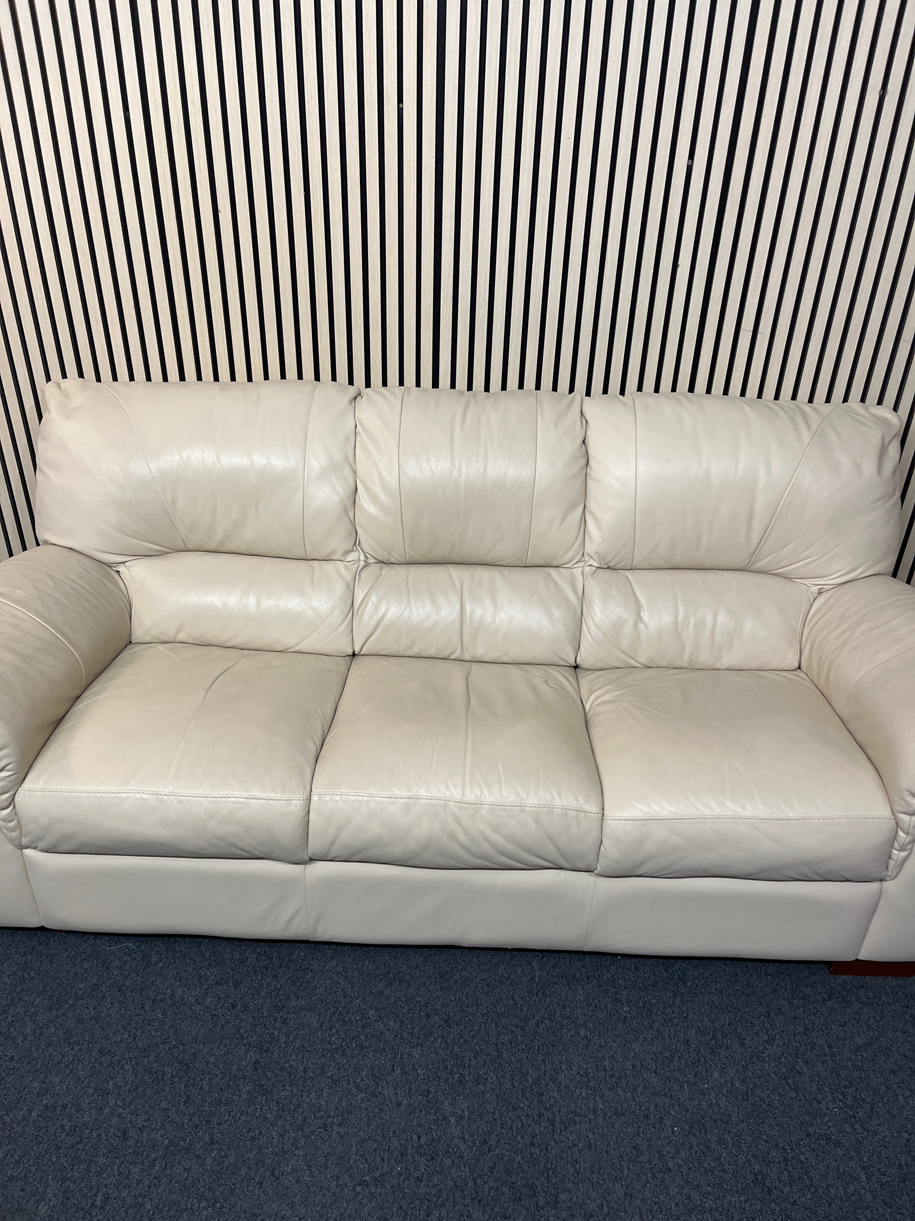 3 seater soft cream leather sofa (210 cm wide)