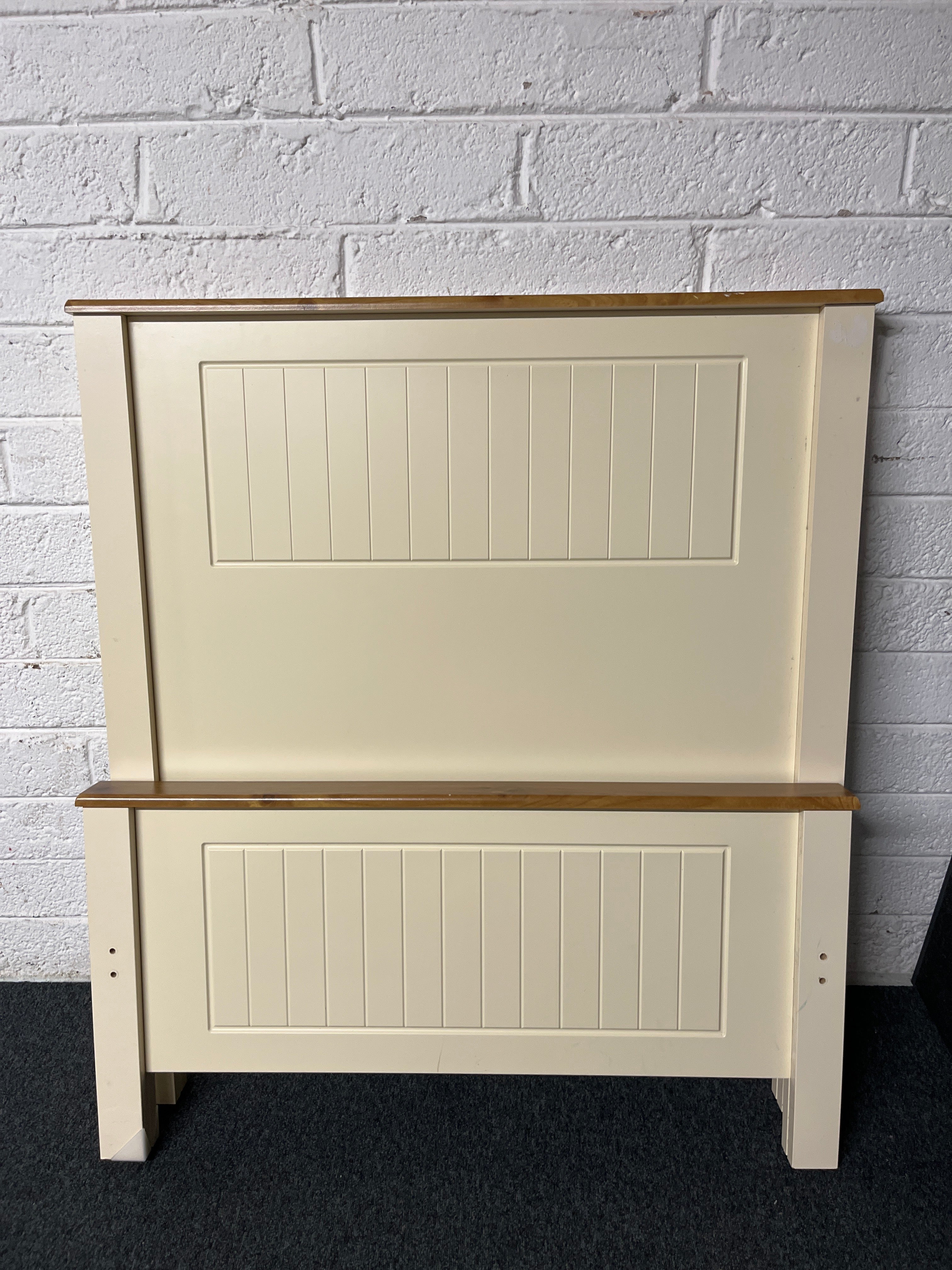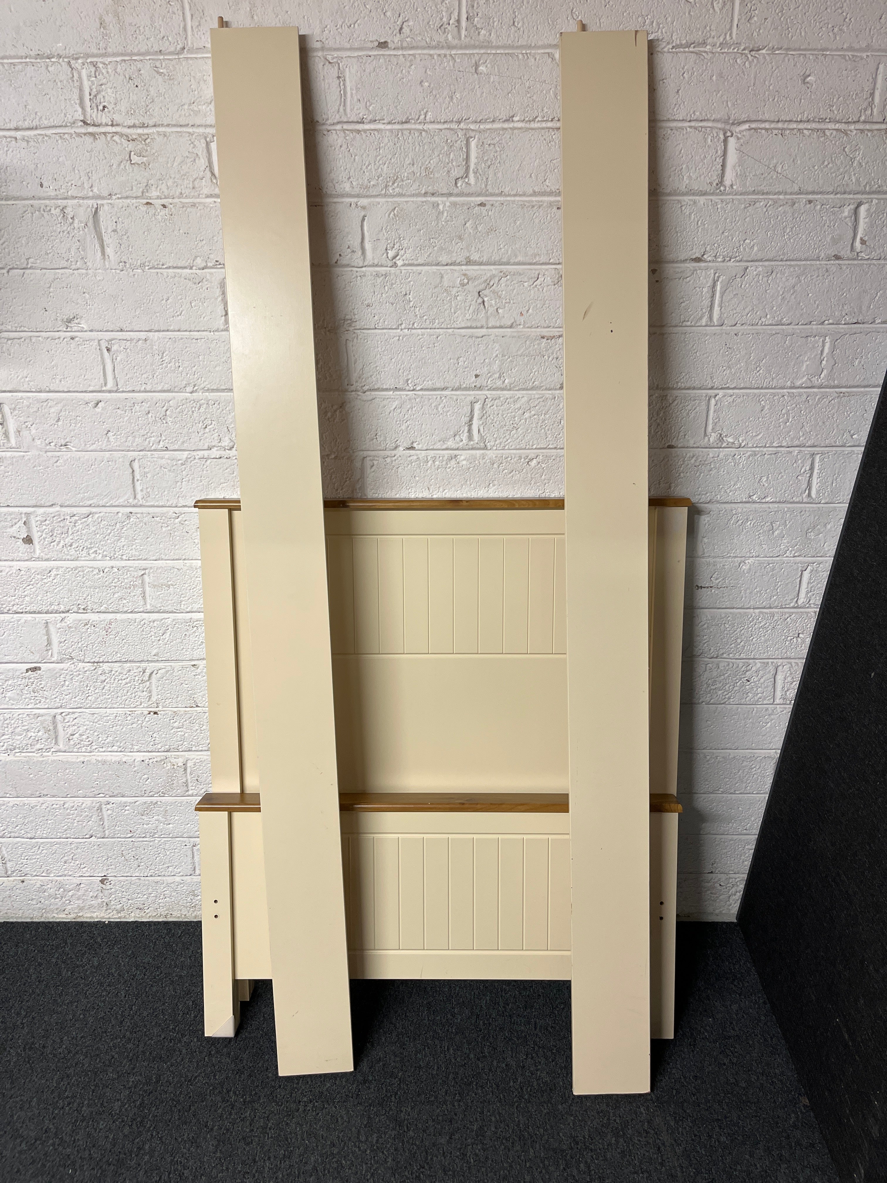 3ft high back cream and oak laminate bed frame