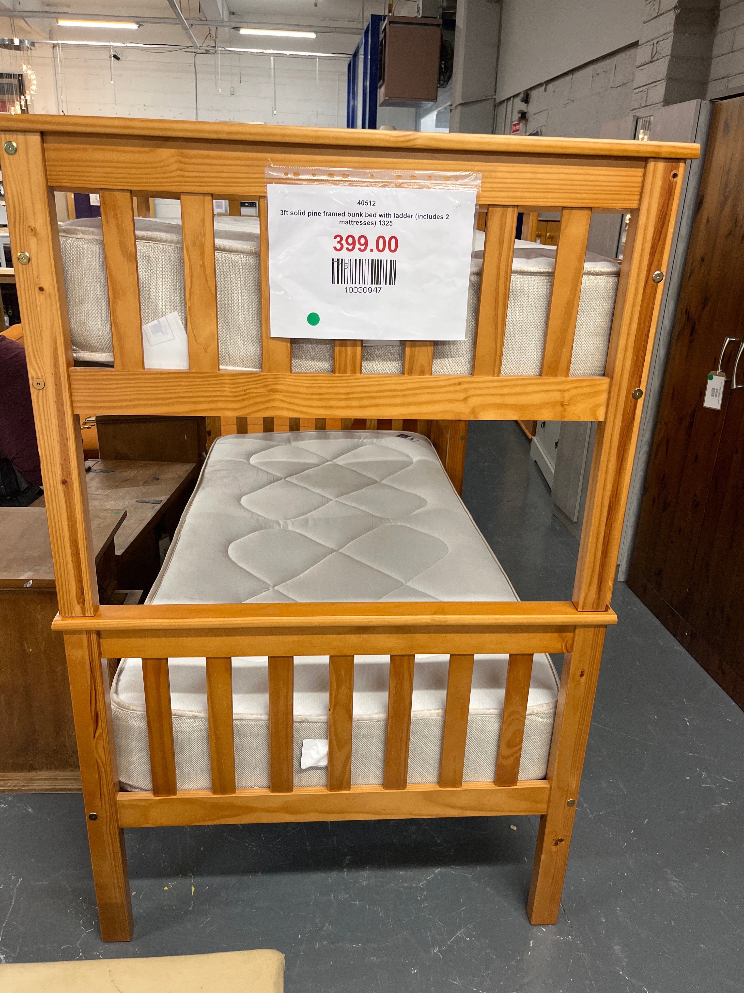 3ft solid pine framed bunk bed with ladder (includes 2 mattresses) 1325