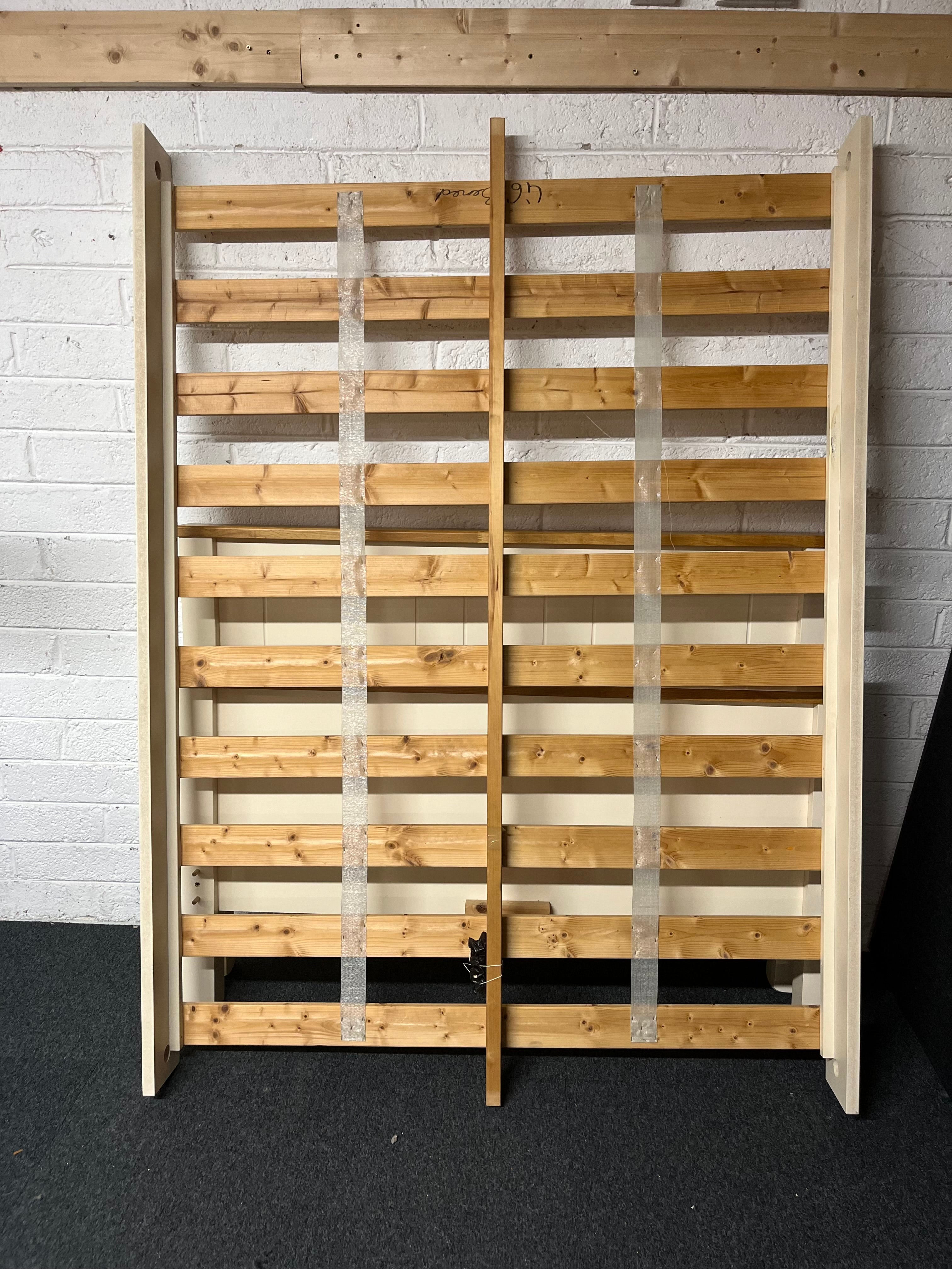 - Share: 4ft 6 cream and oak high end bed frame 1225