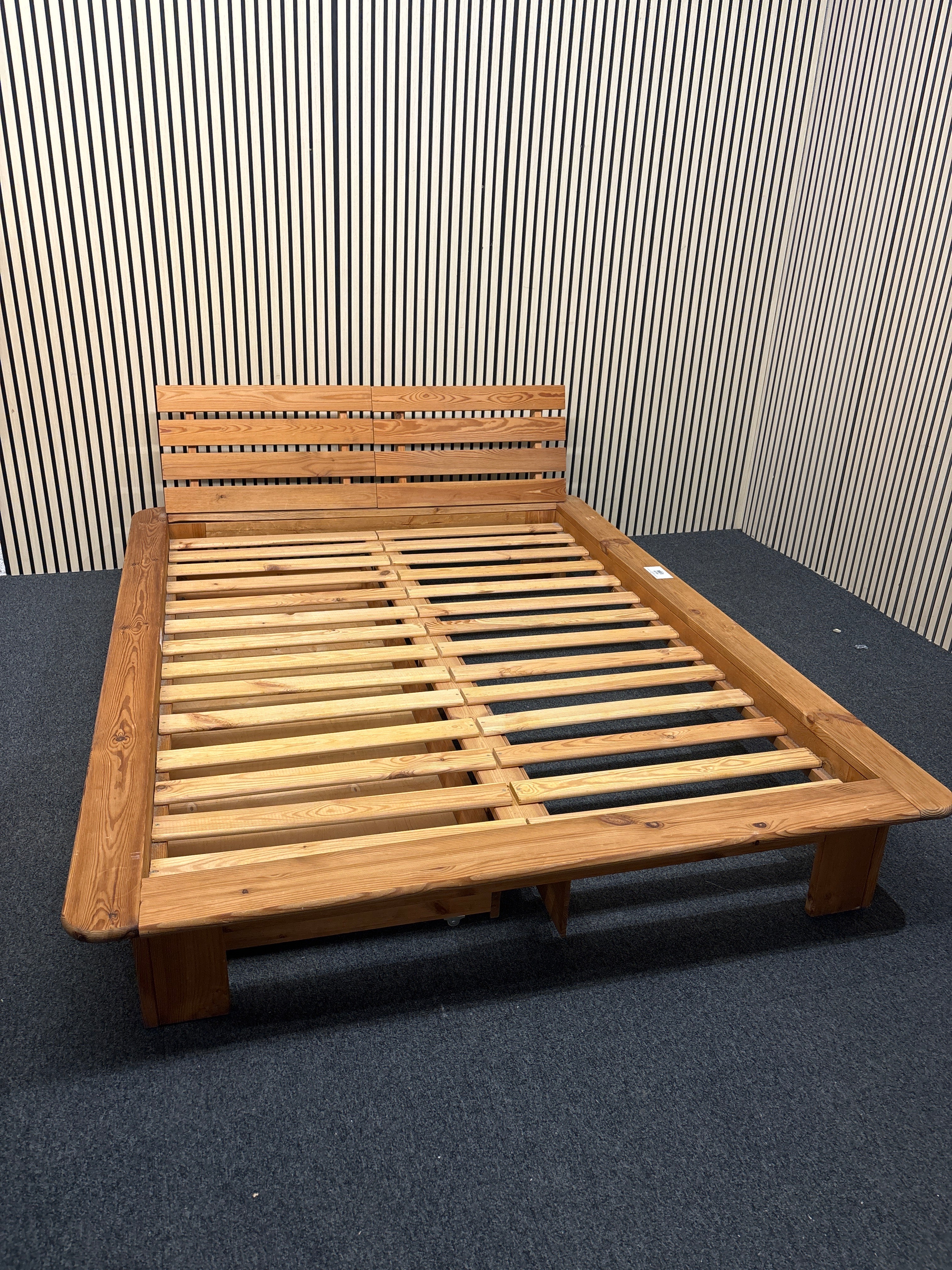 4ft 6 pine framed futon style bed frame with under bed drawers 3325
