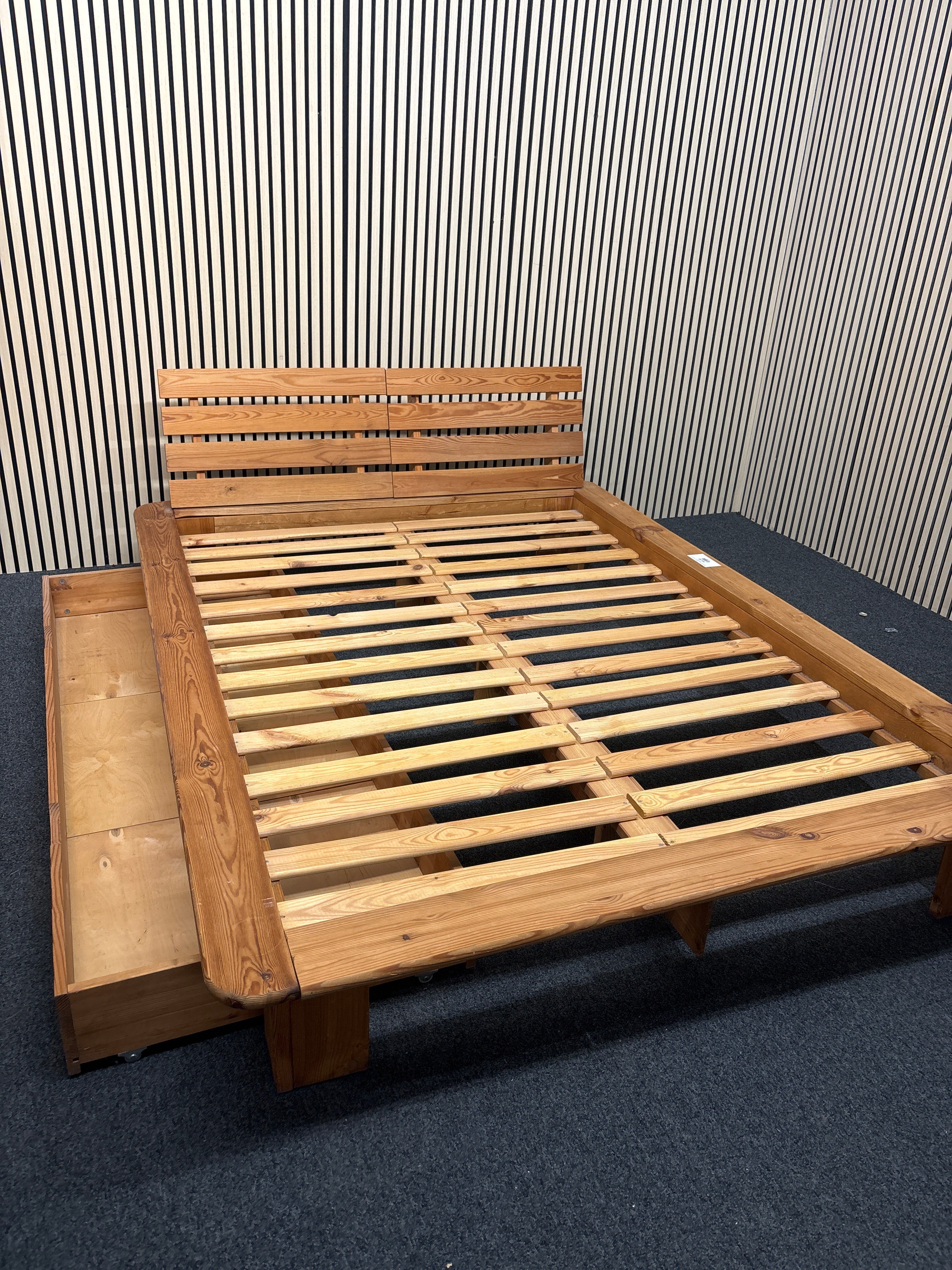 4ft 6 pine framed futon style bed frame with under bed drawers
