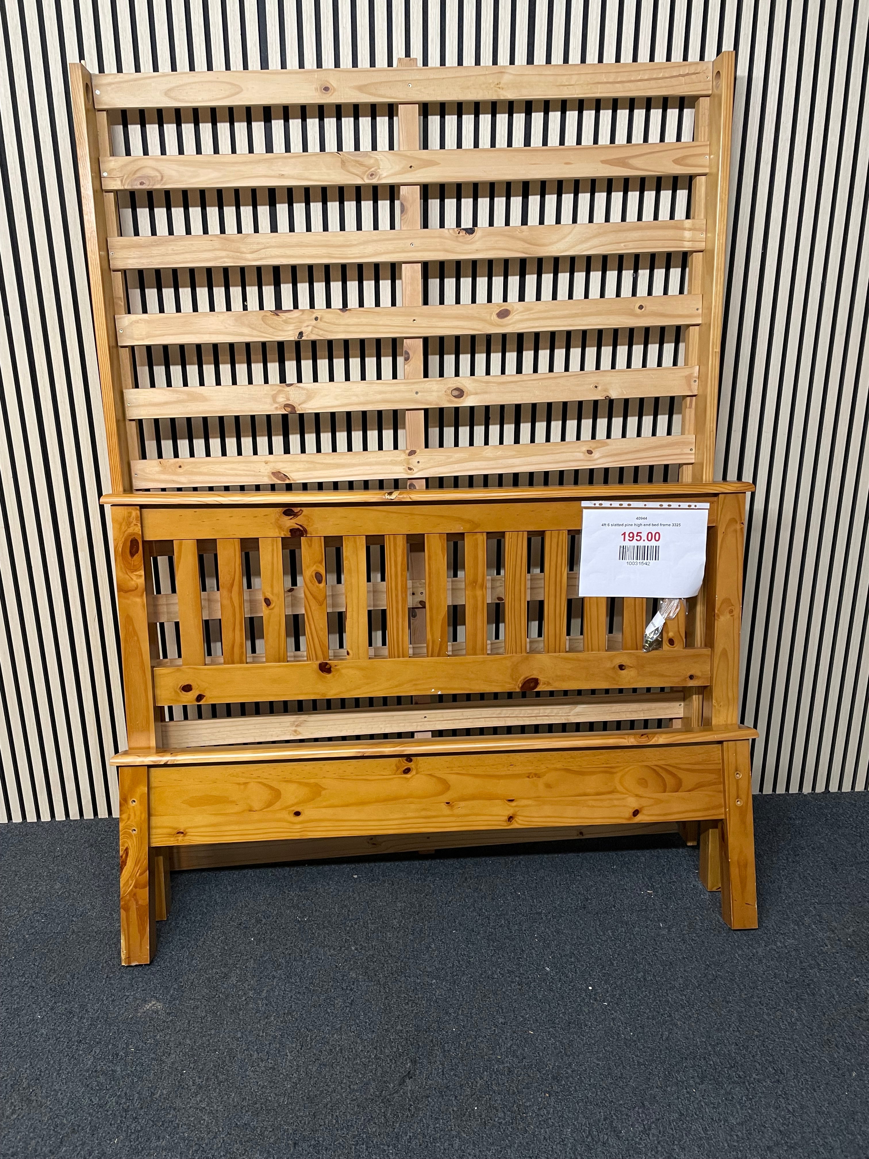 4ft 6 slatted pine high end bed frame