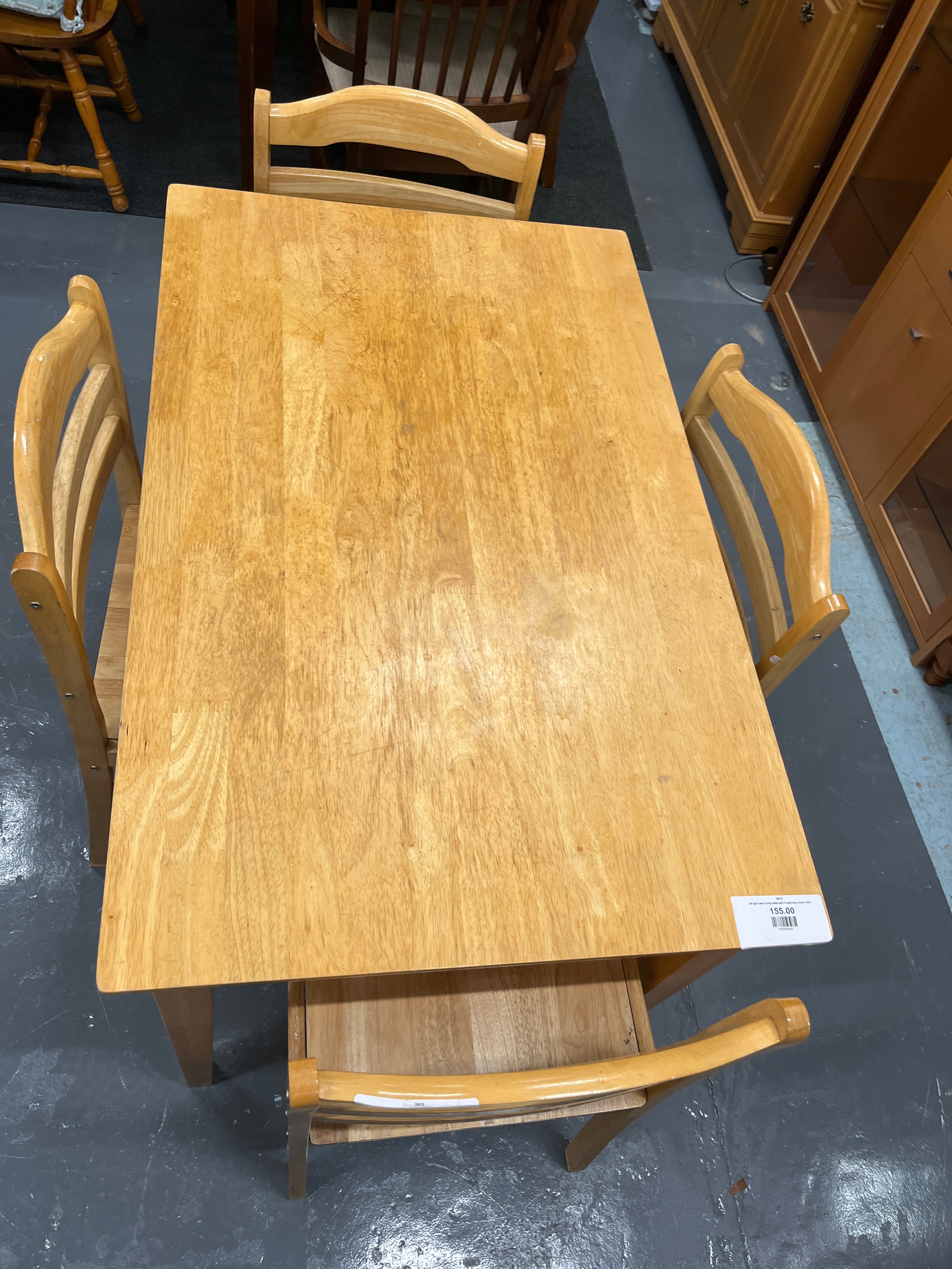 - Share: 4ft light wide Dining table with 4 matching chairs 2225