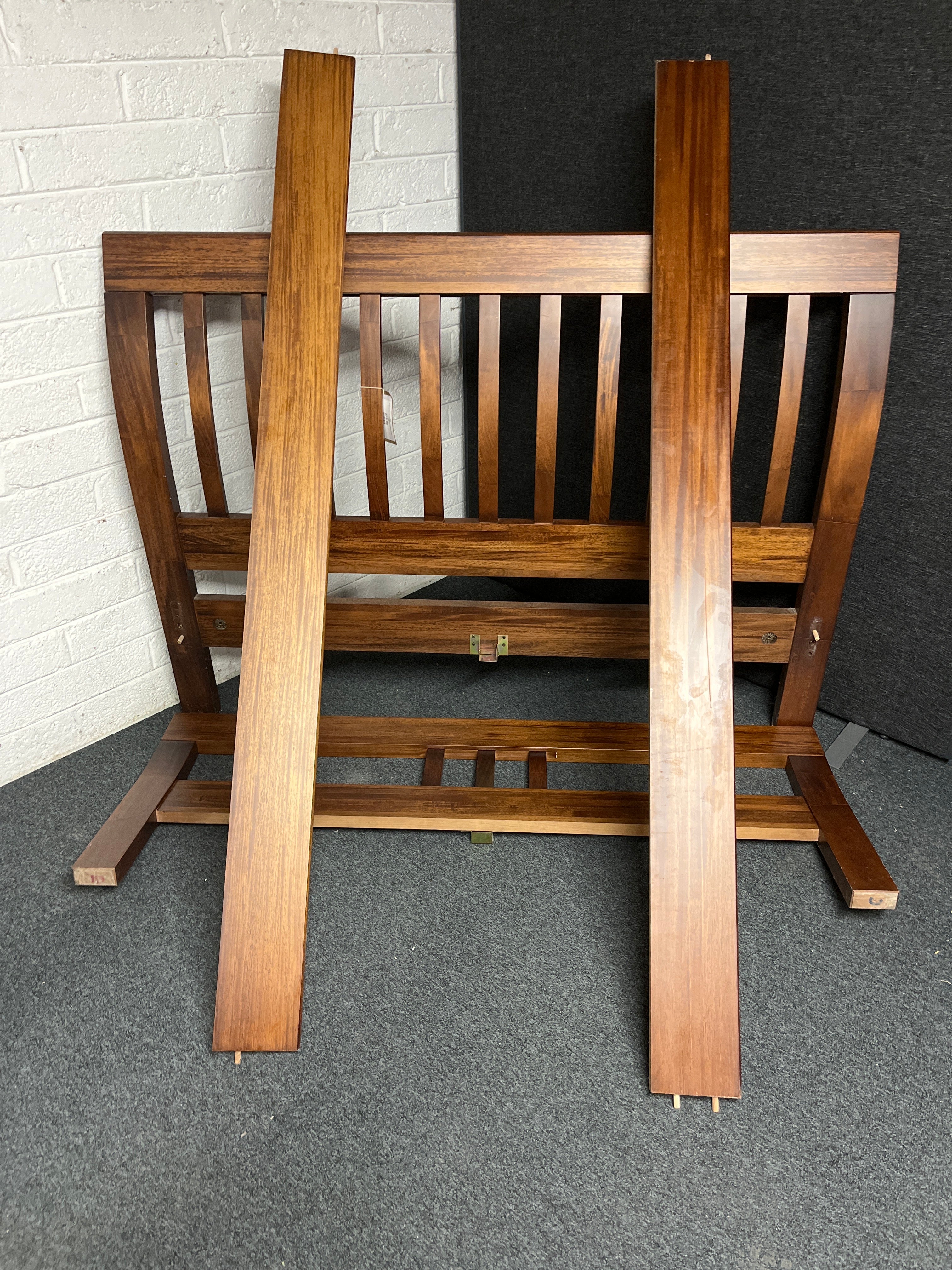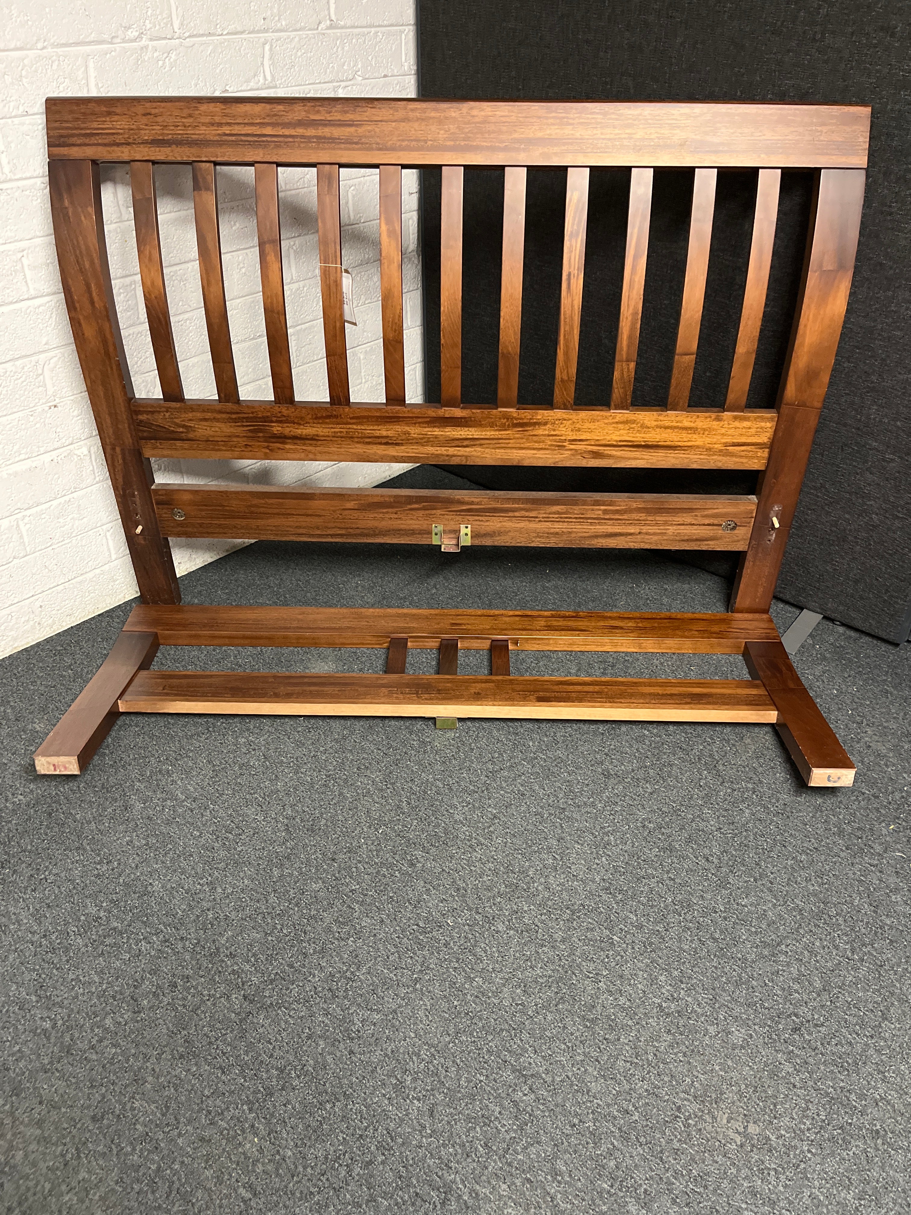 5ft high back, low foot end bed frame in dark wood stain 1225