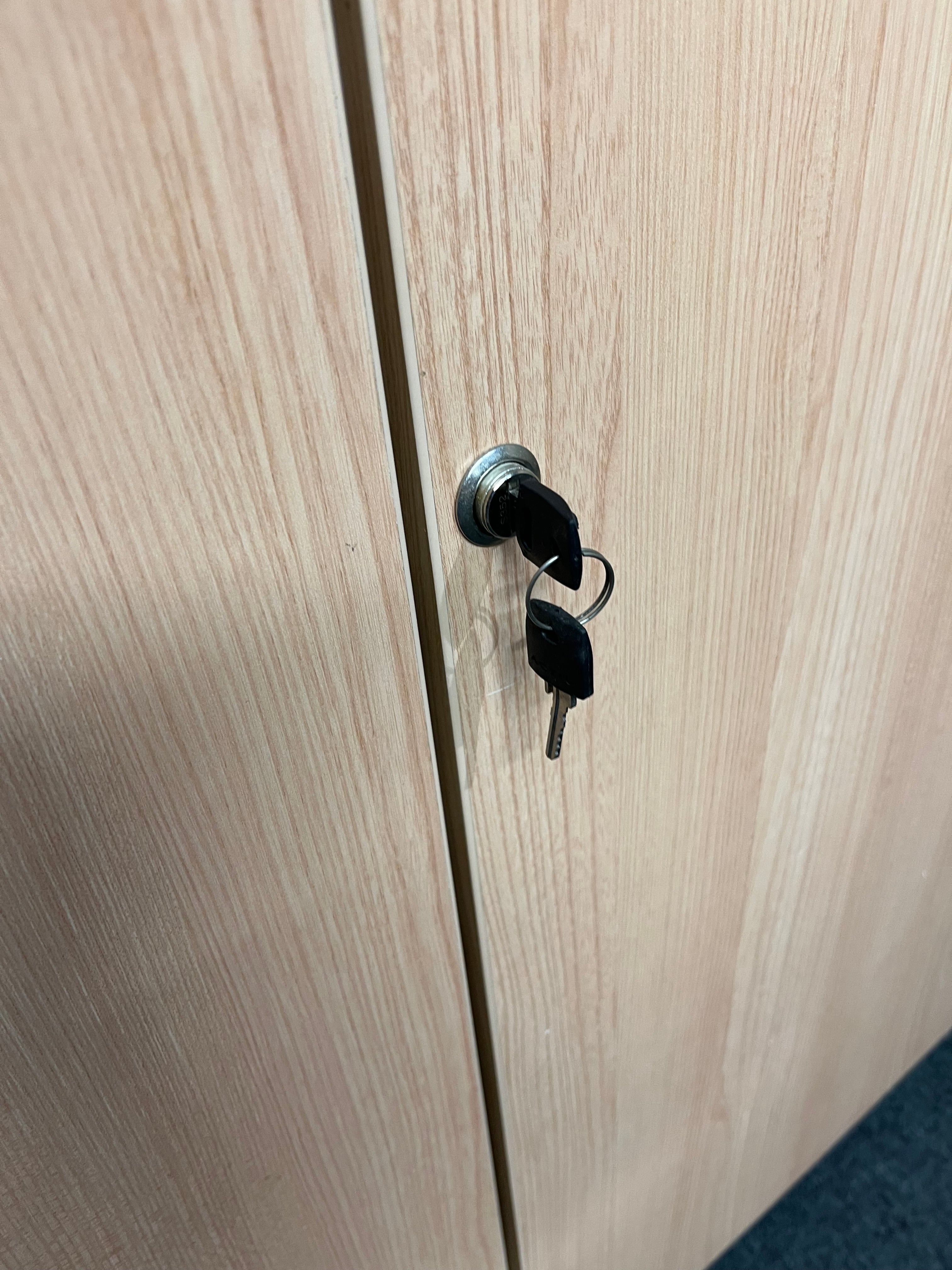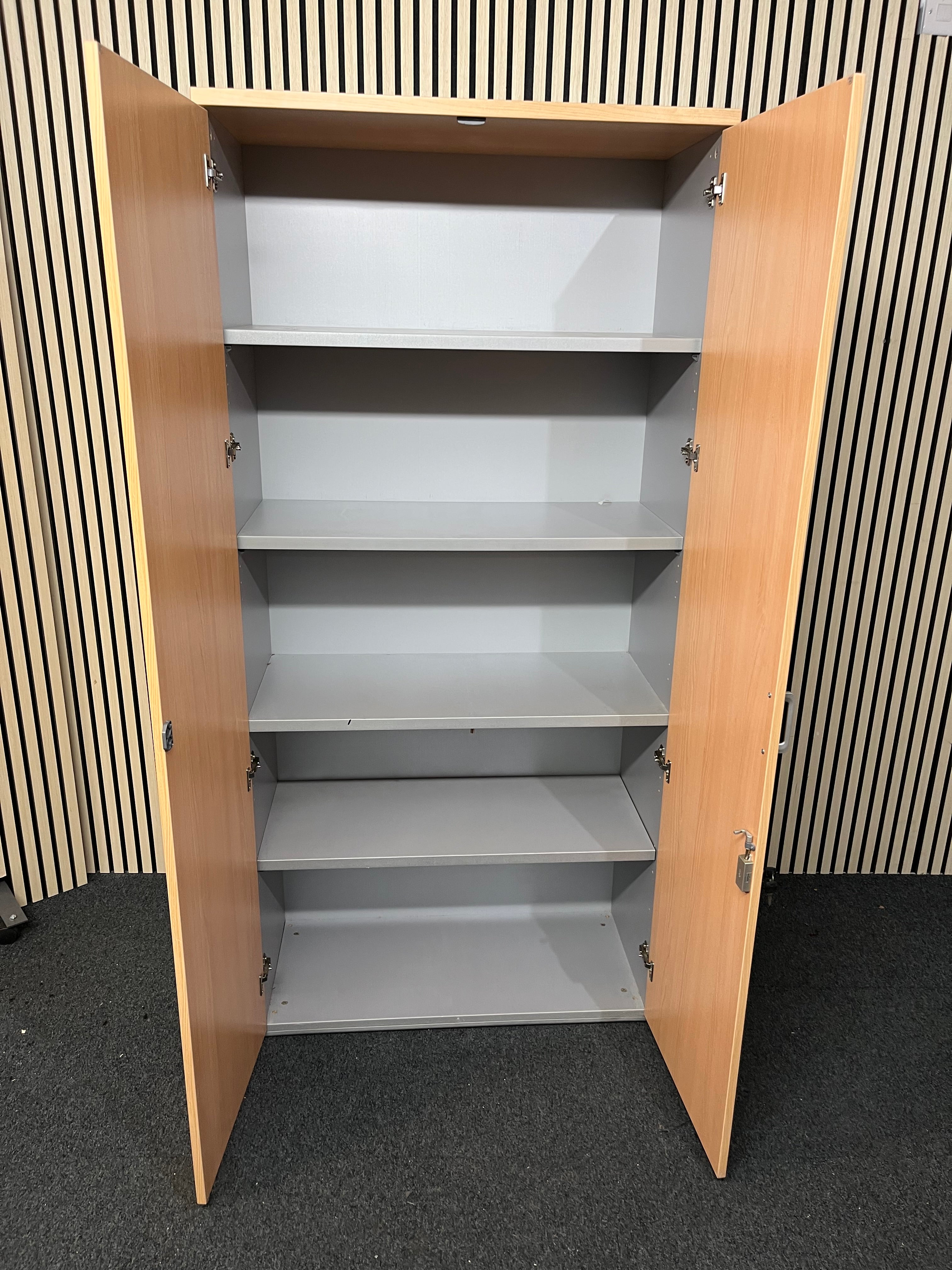 Actiu Tall beech laminate 2 door storage unit, grey carcass with shelves 186Hx42Dx89W