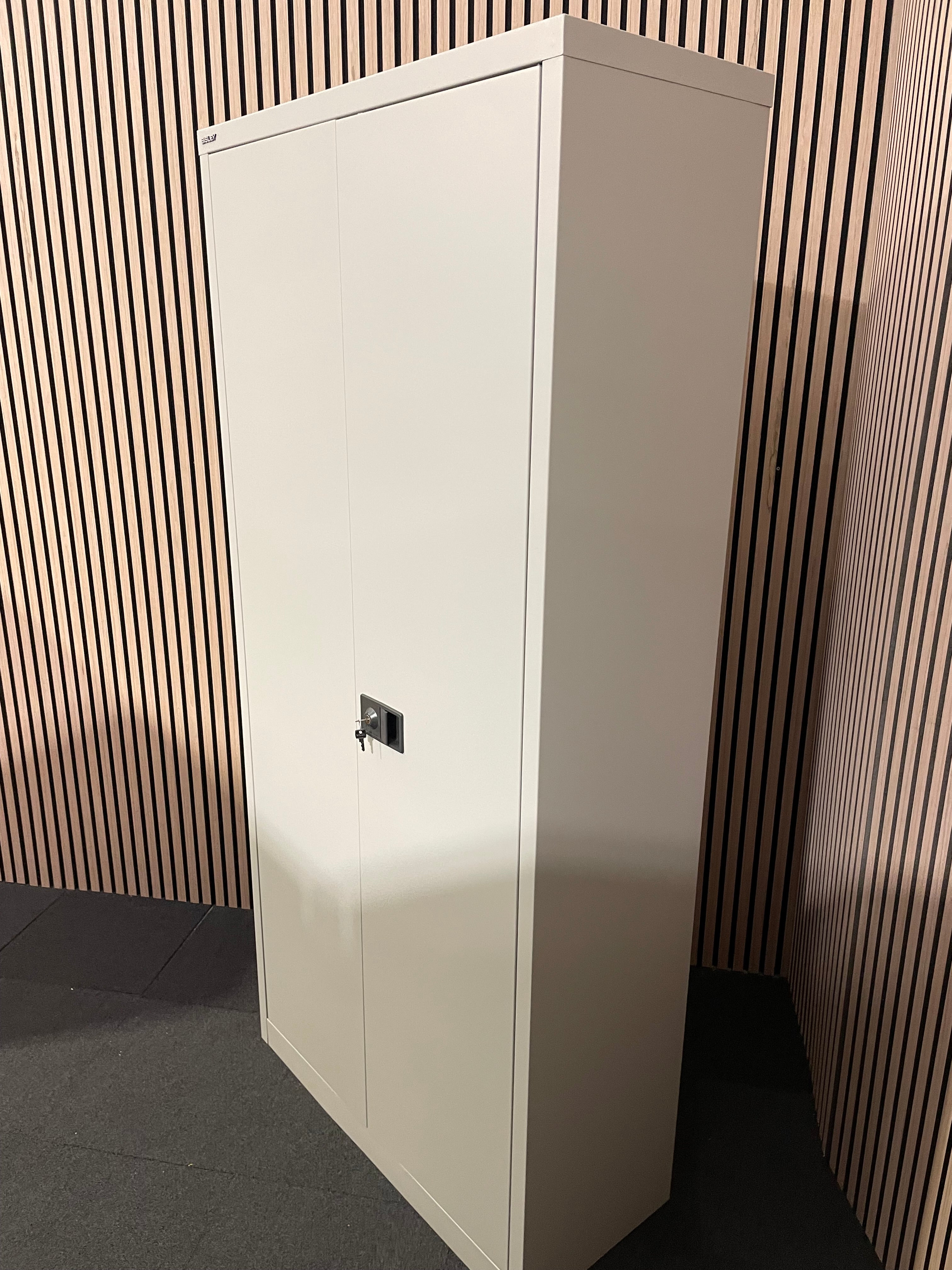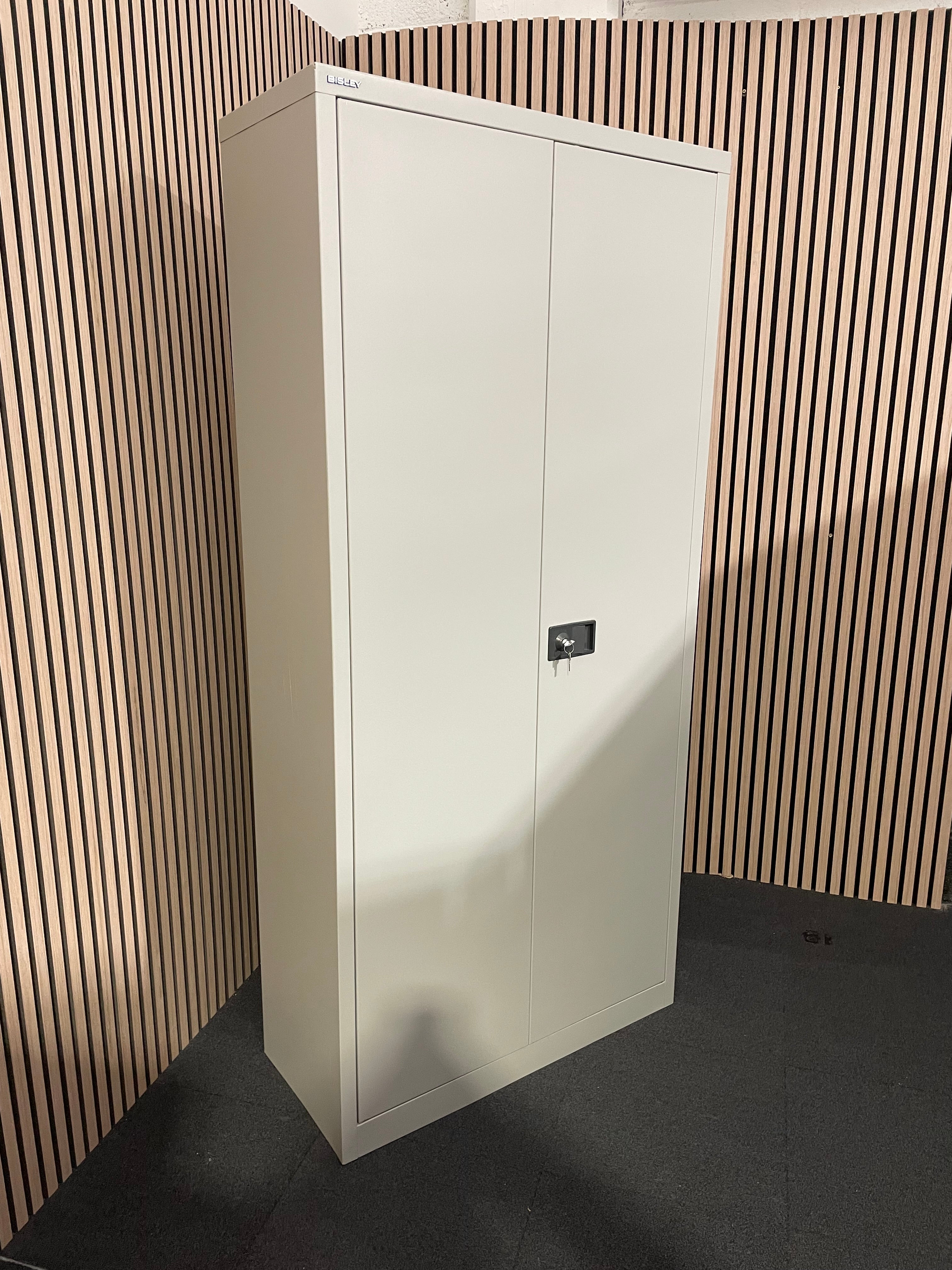 - Share: Bisley grey metal 2 door storage unit with keys and 4 shelves (H 195 x W 92 x D 40 cm)