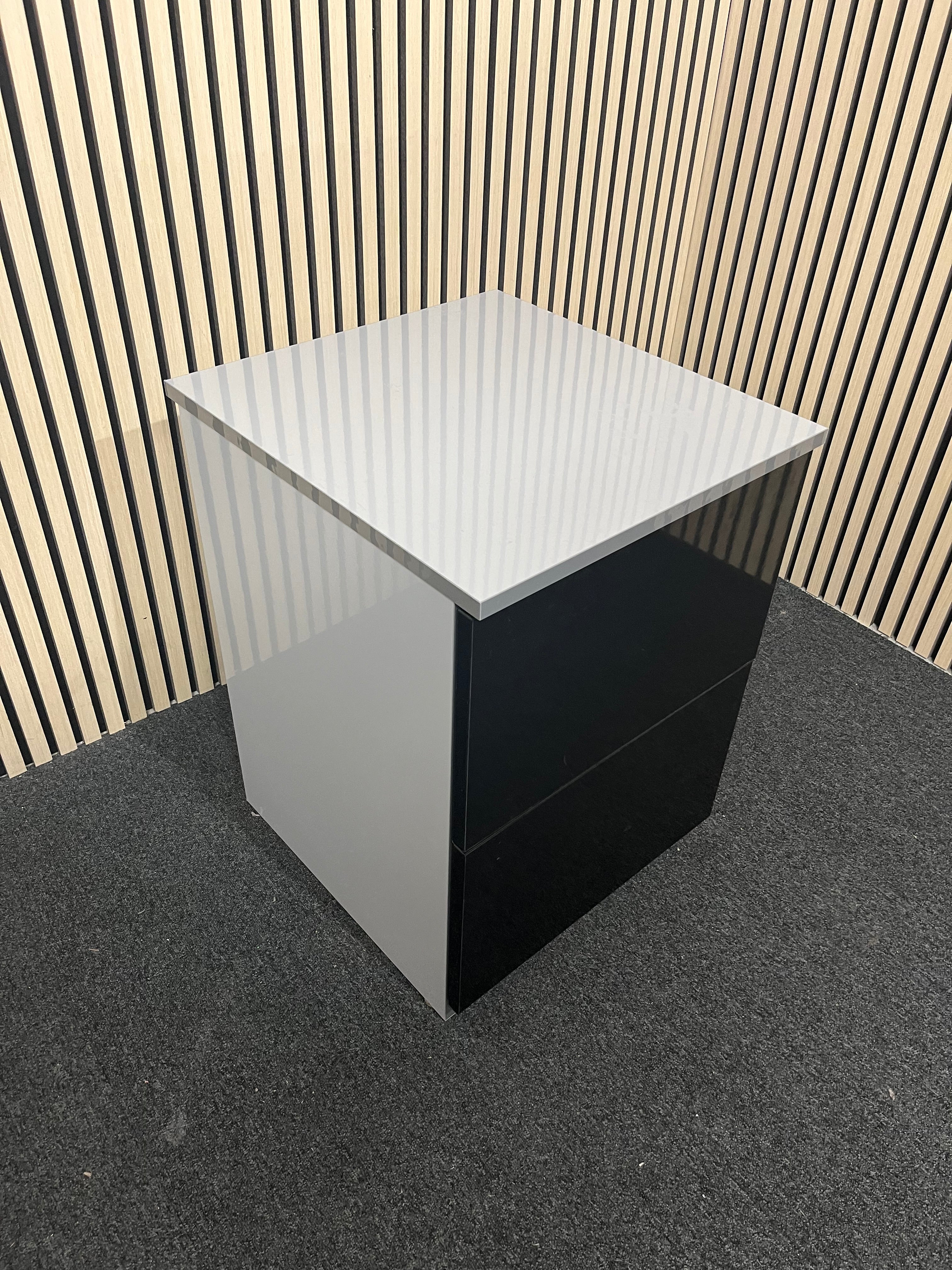 black gloss 2 drawer storage unit (H 67 x W 50 x D 59 cm)