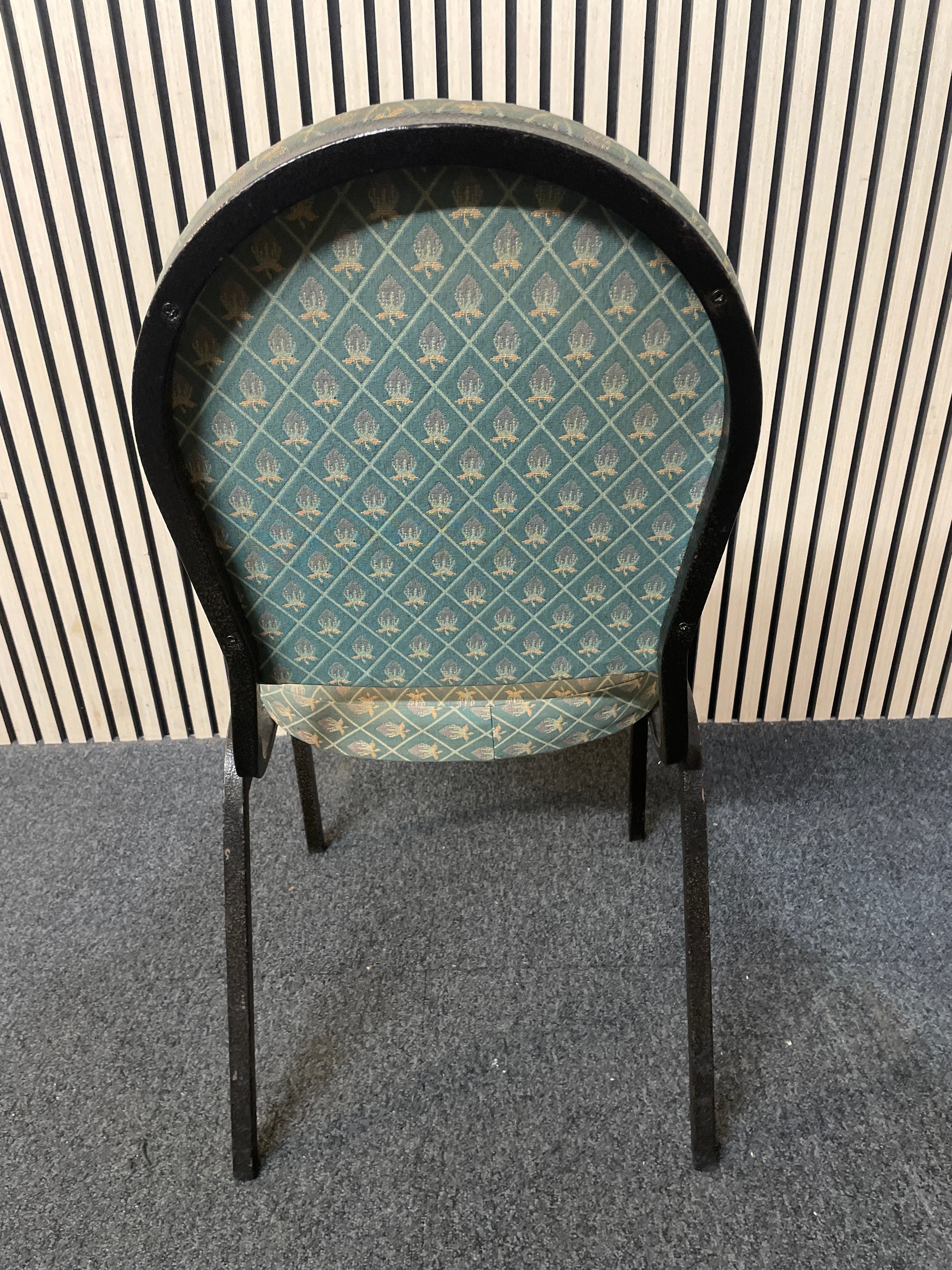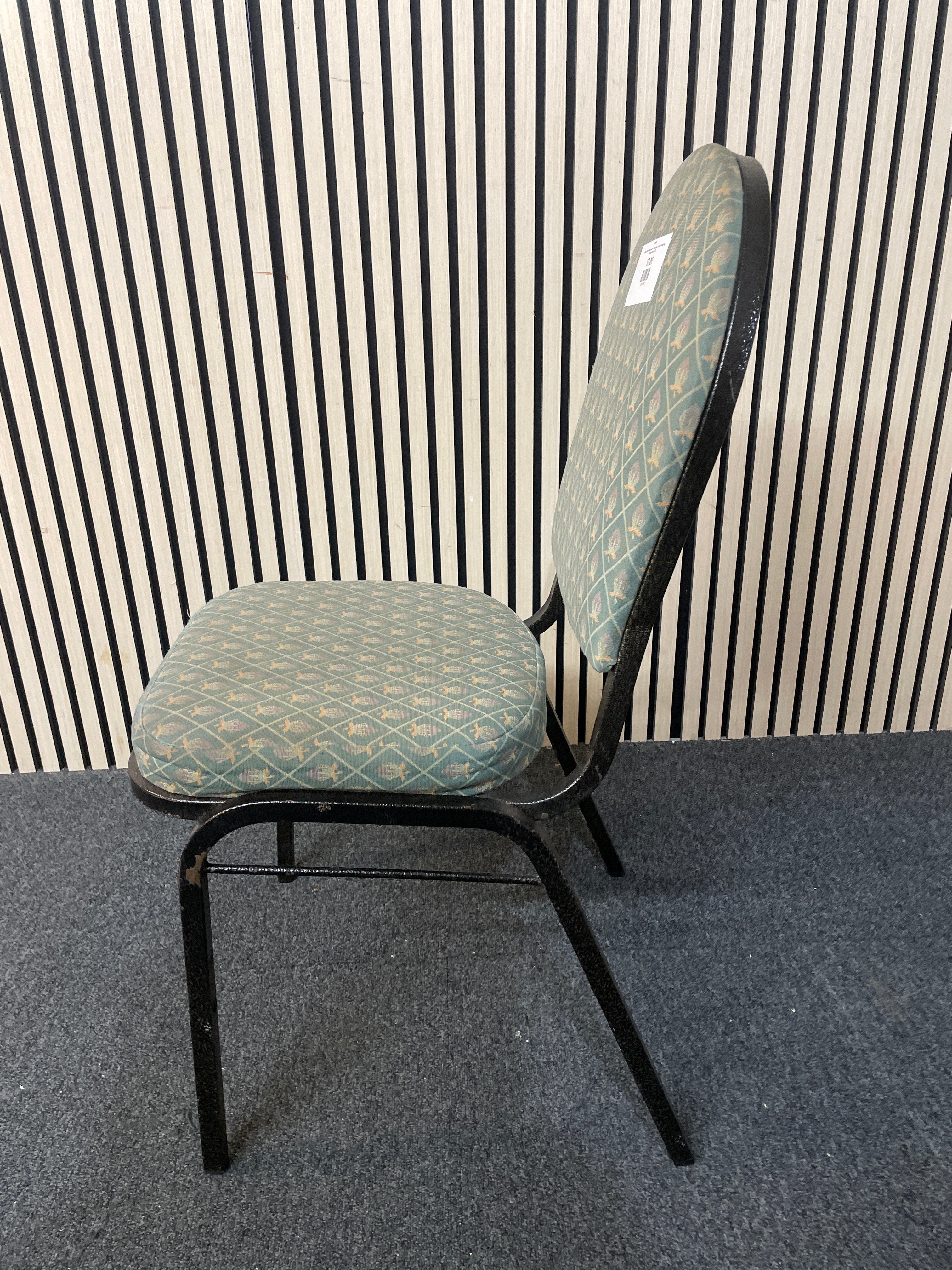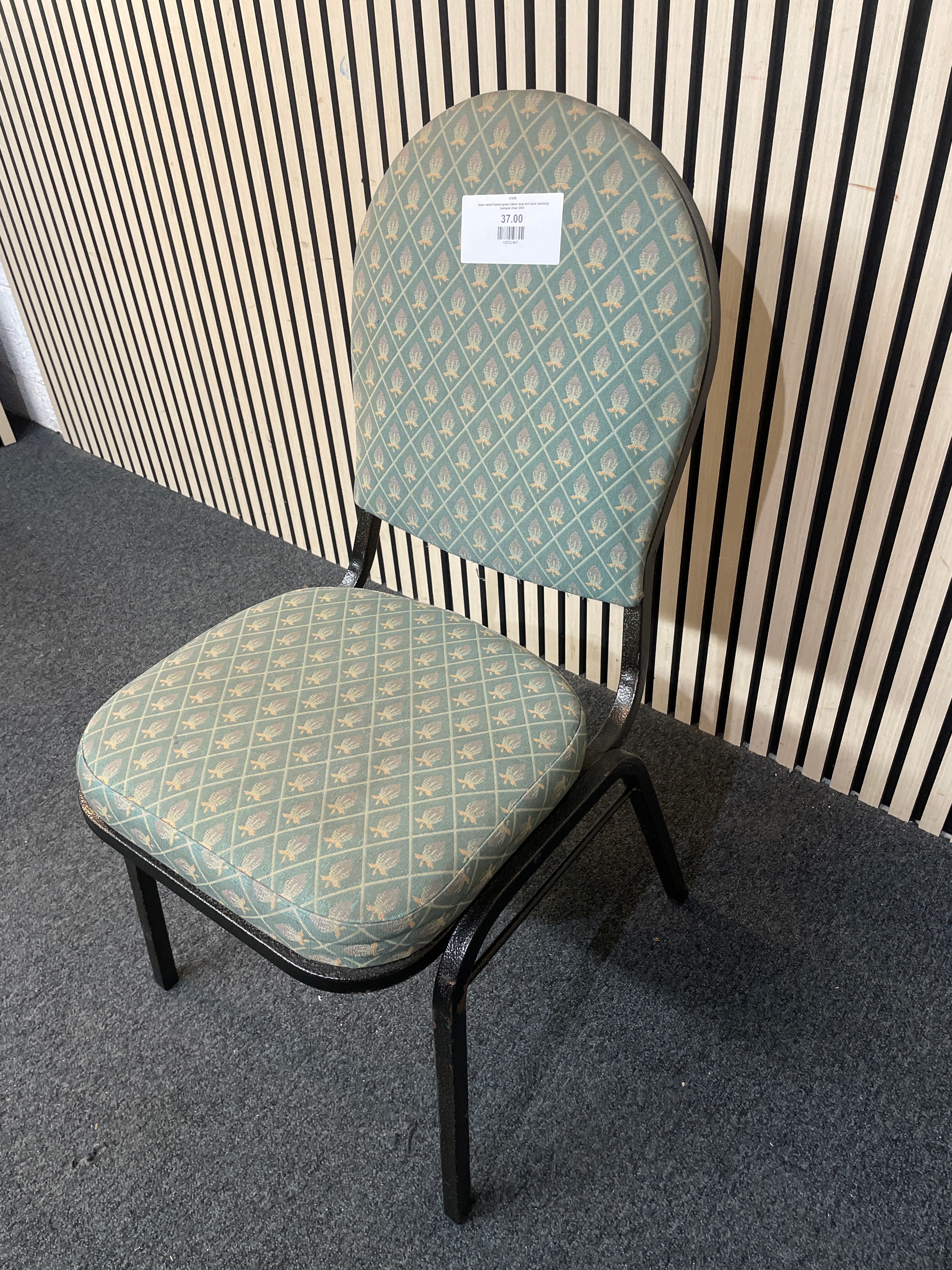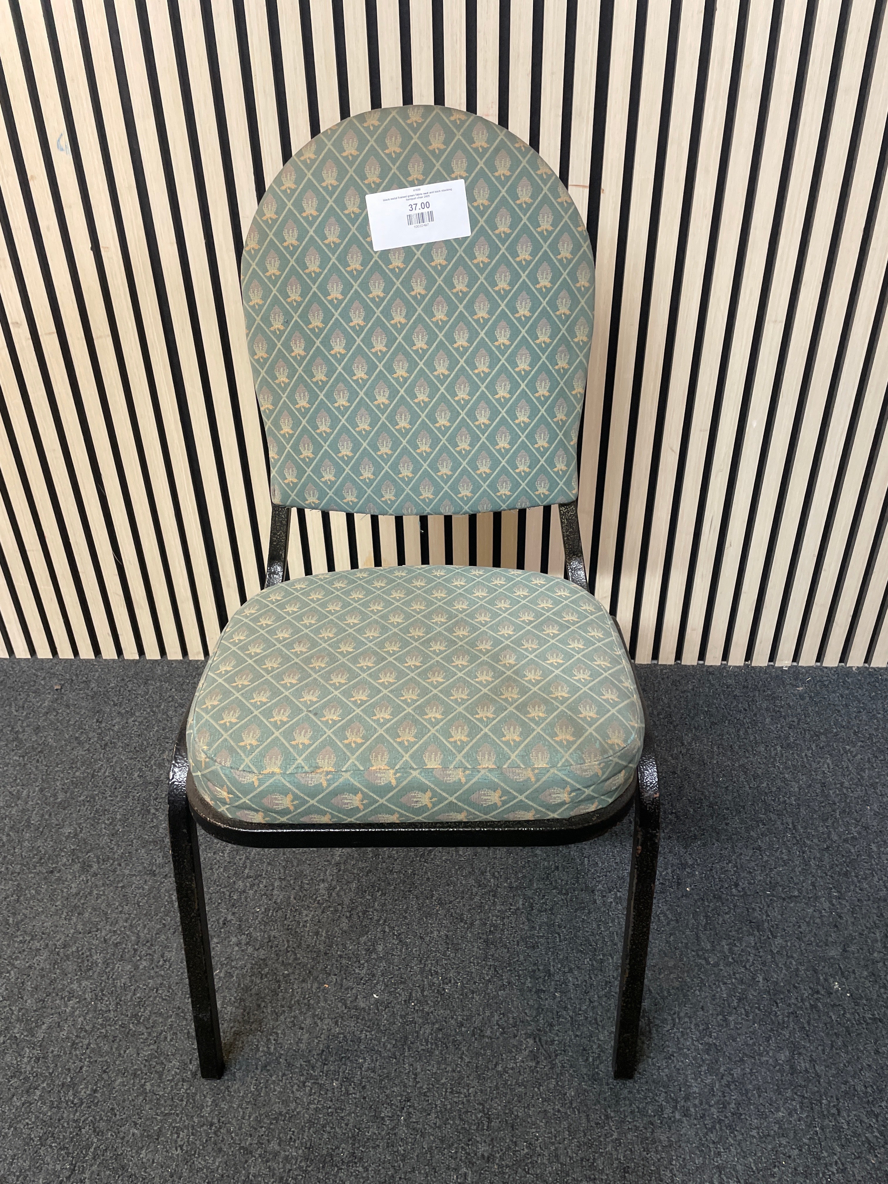 - Share: black metal framed green fabric seat and back stacking banquet chair 2425