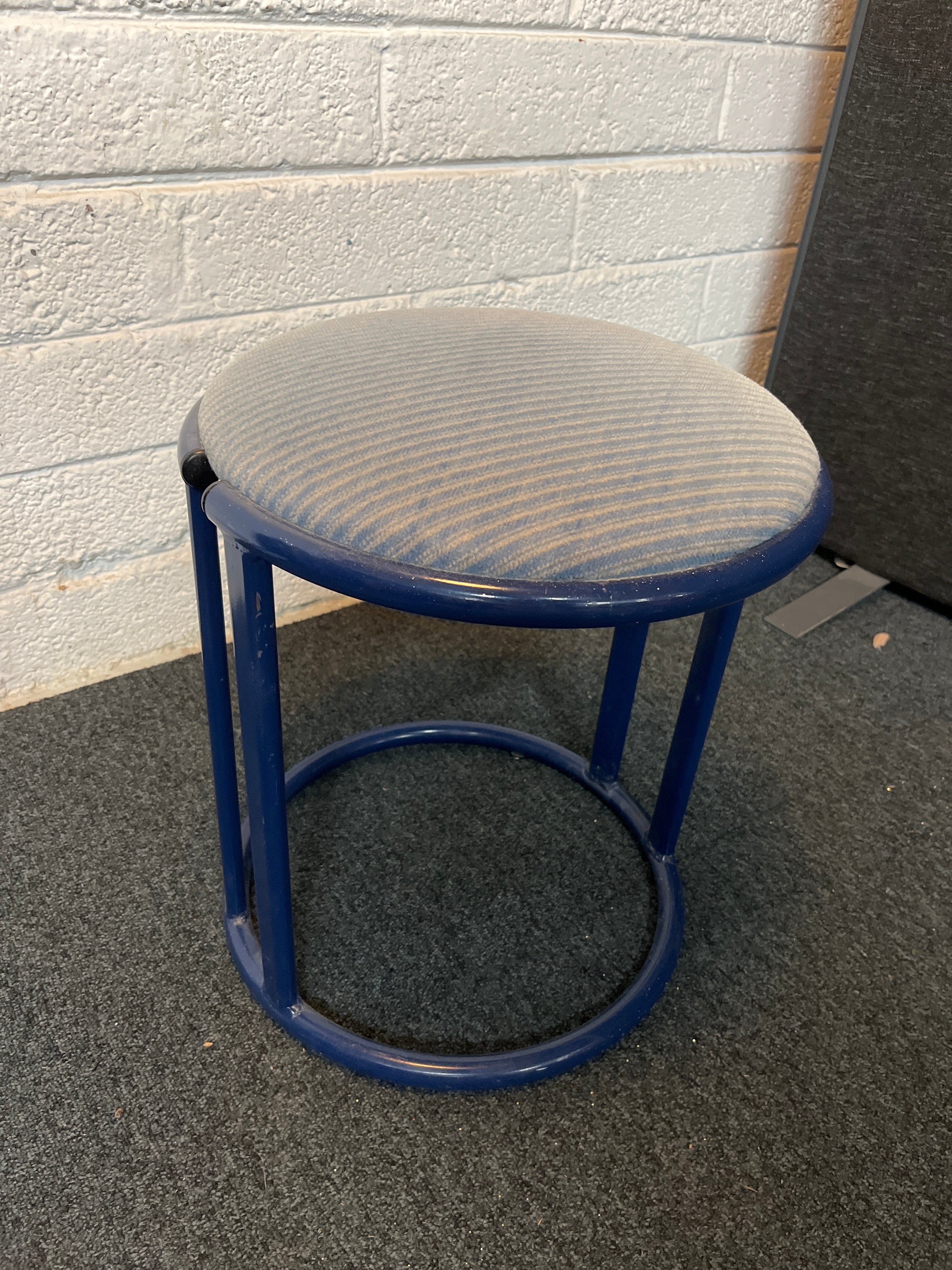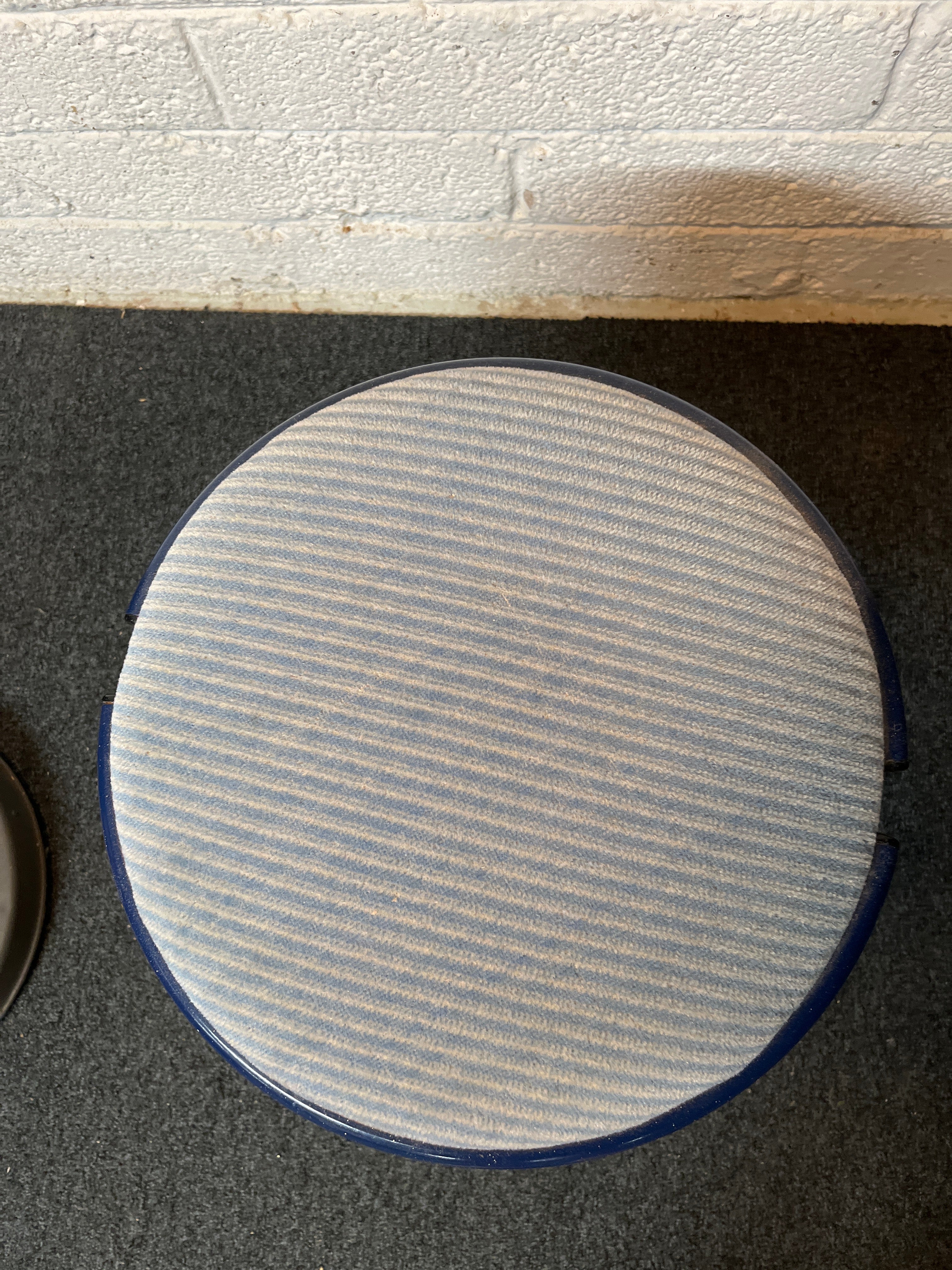 blue metal stool with circular fabric seat (H 43 cm Diameter 40 cm)