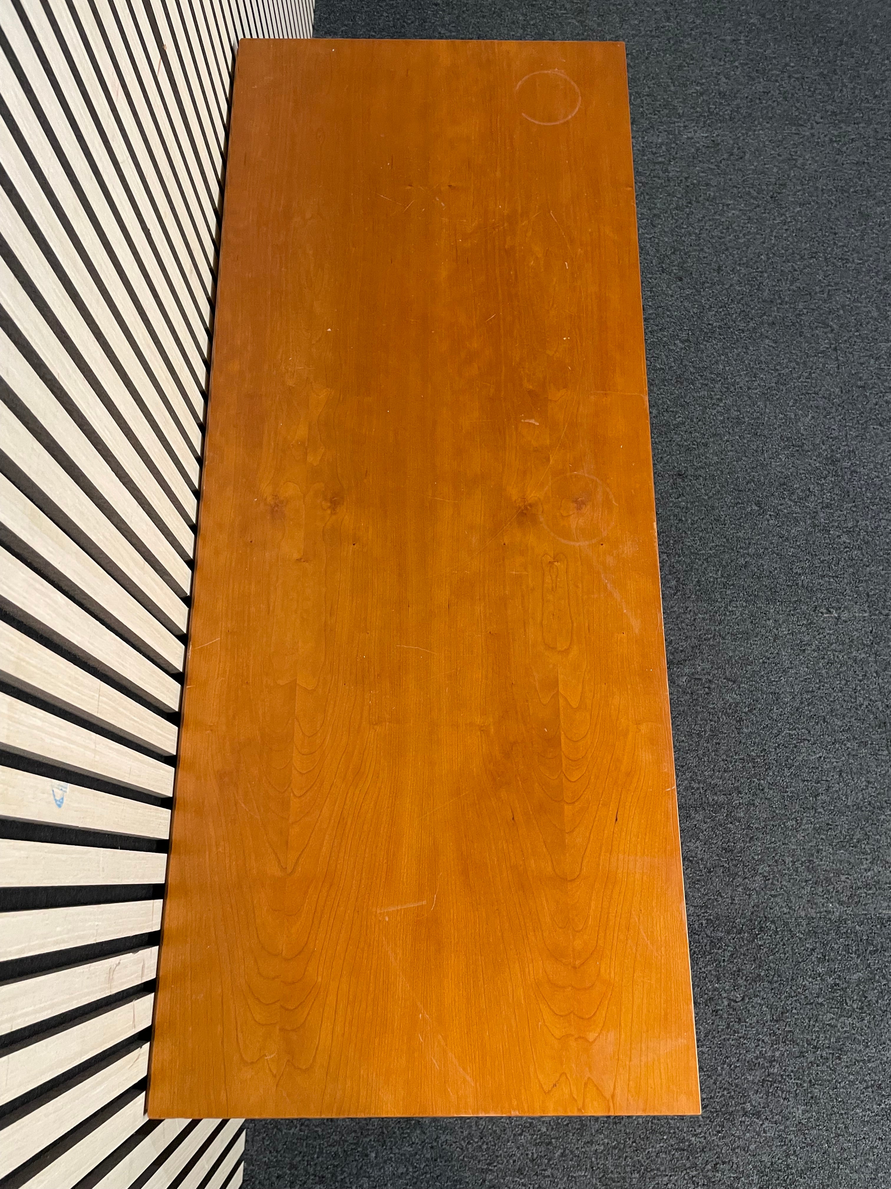 Cherry veneer low rectangular TV unit on castors (H 57 x W 122 x D 48 cm)