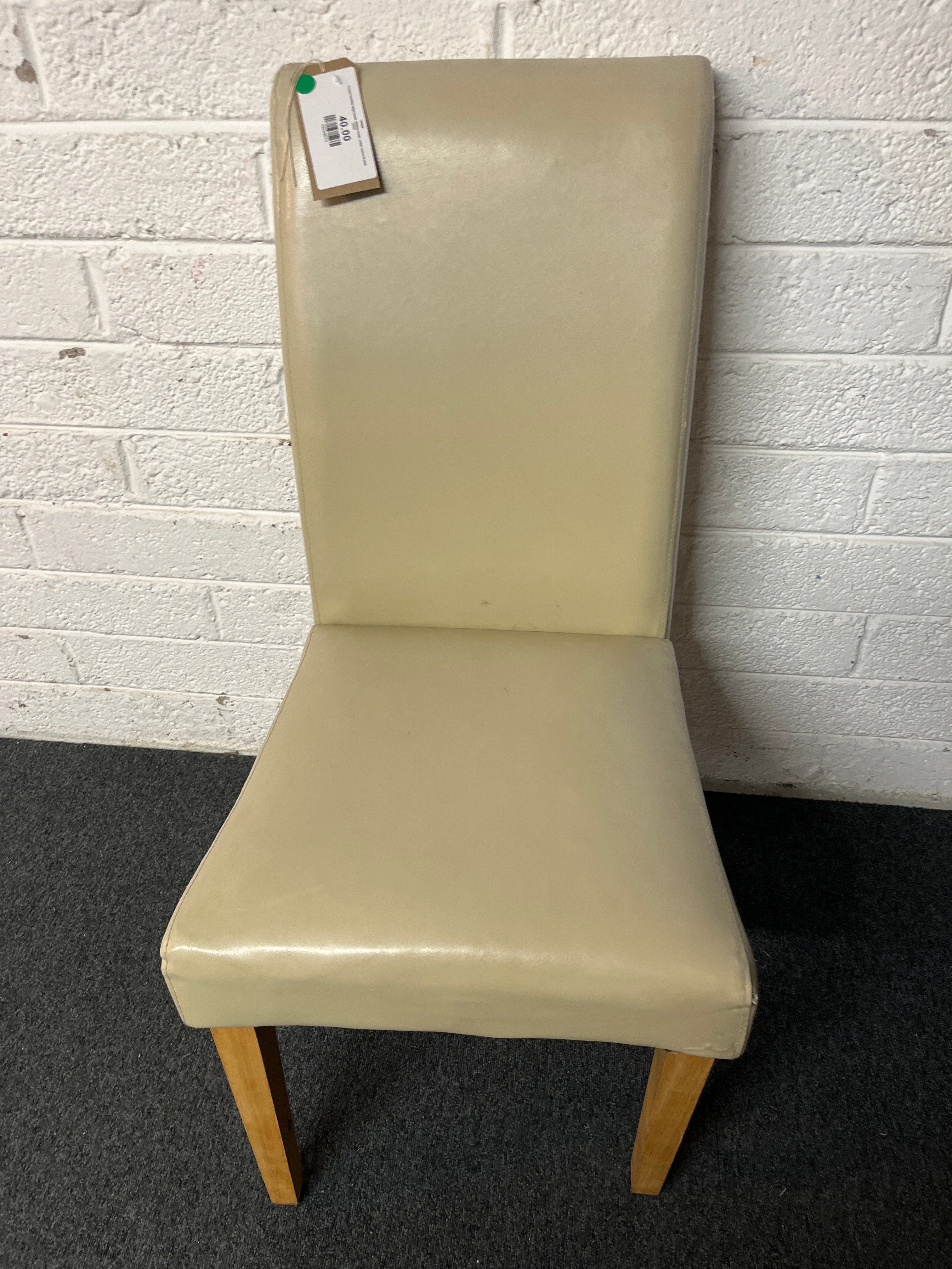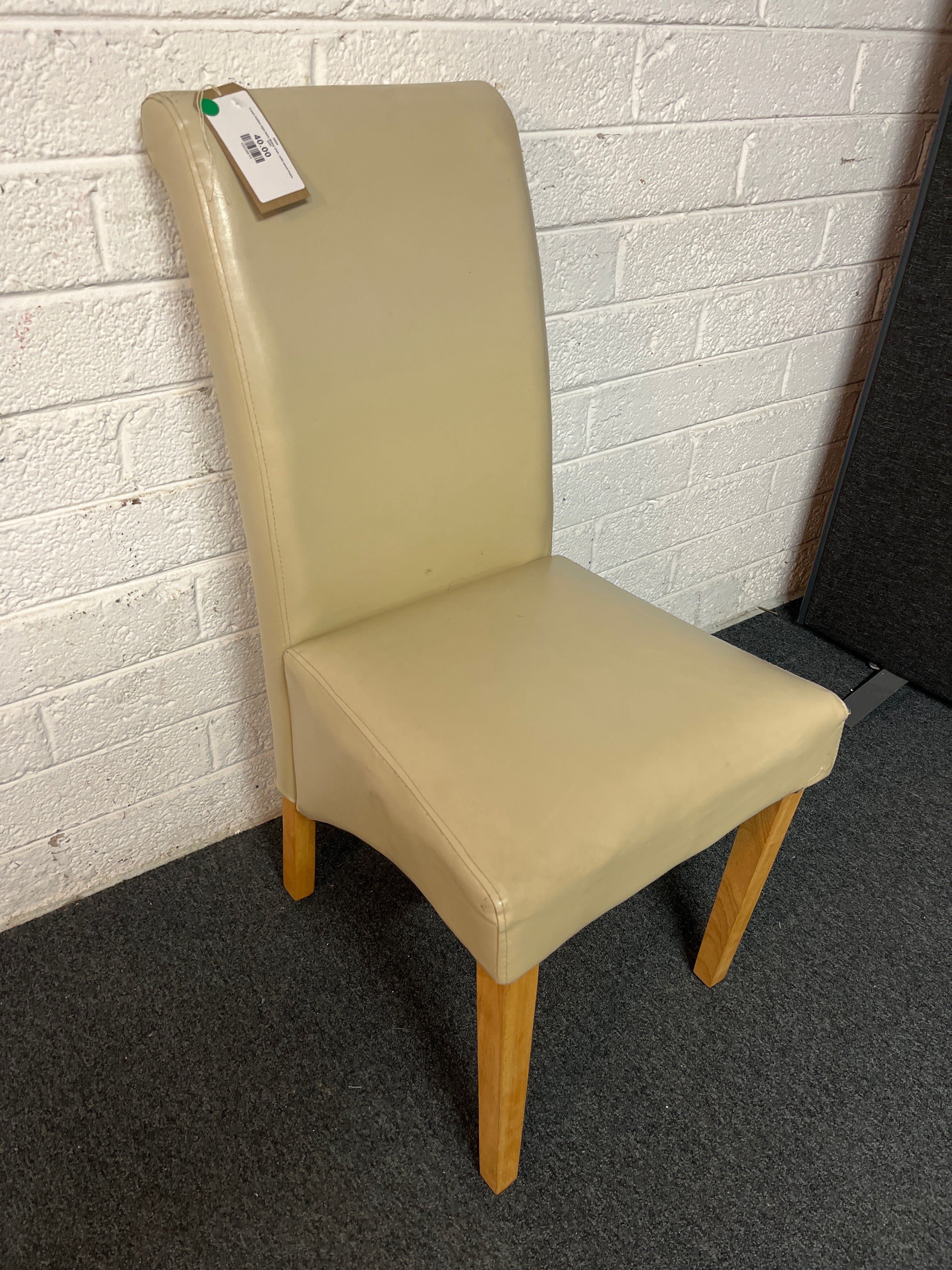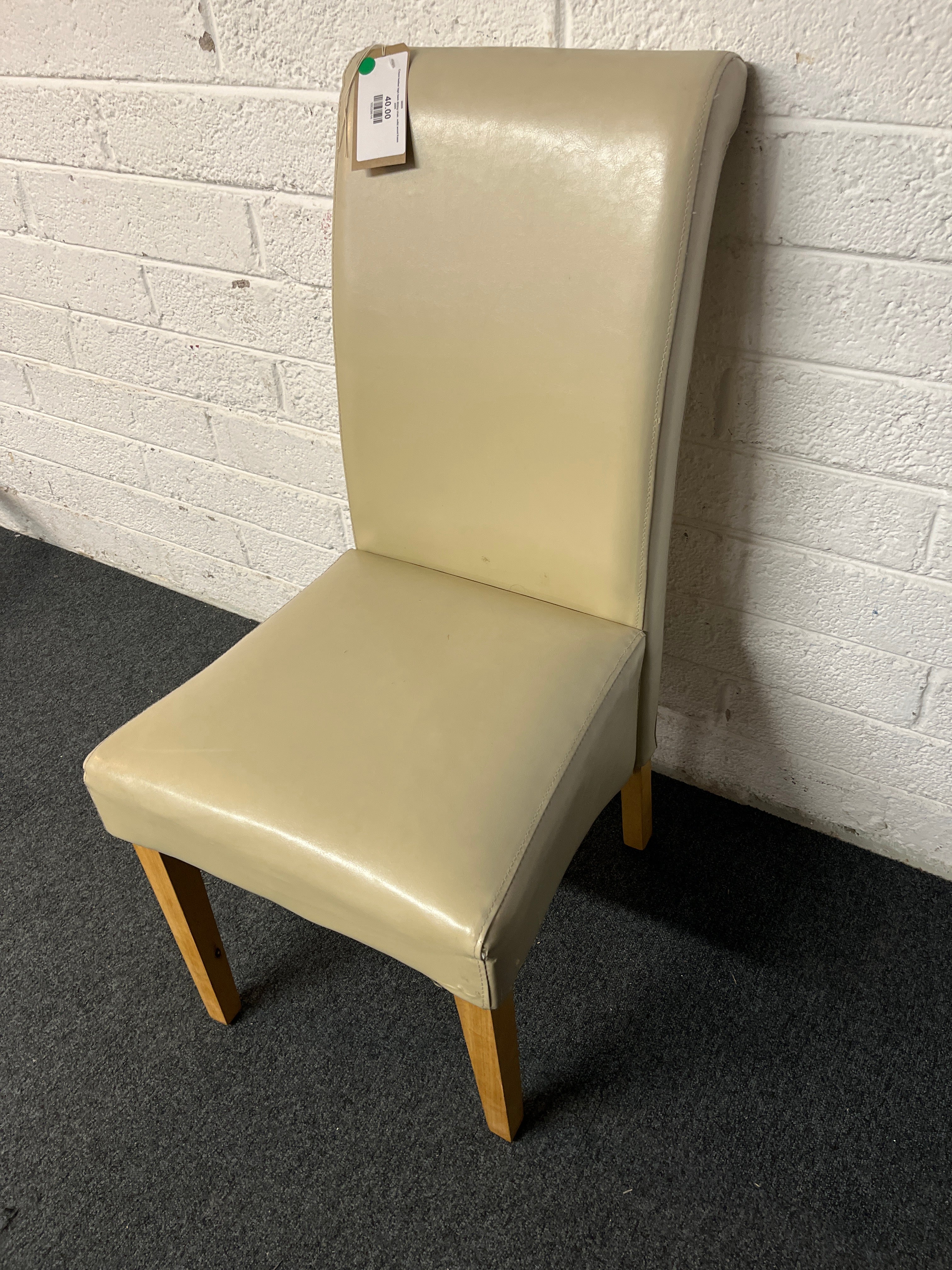 - Share: Cream leather high back dining chair, solid wood frame 2225