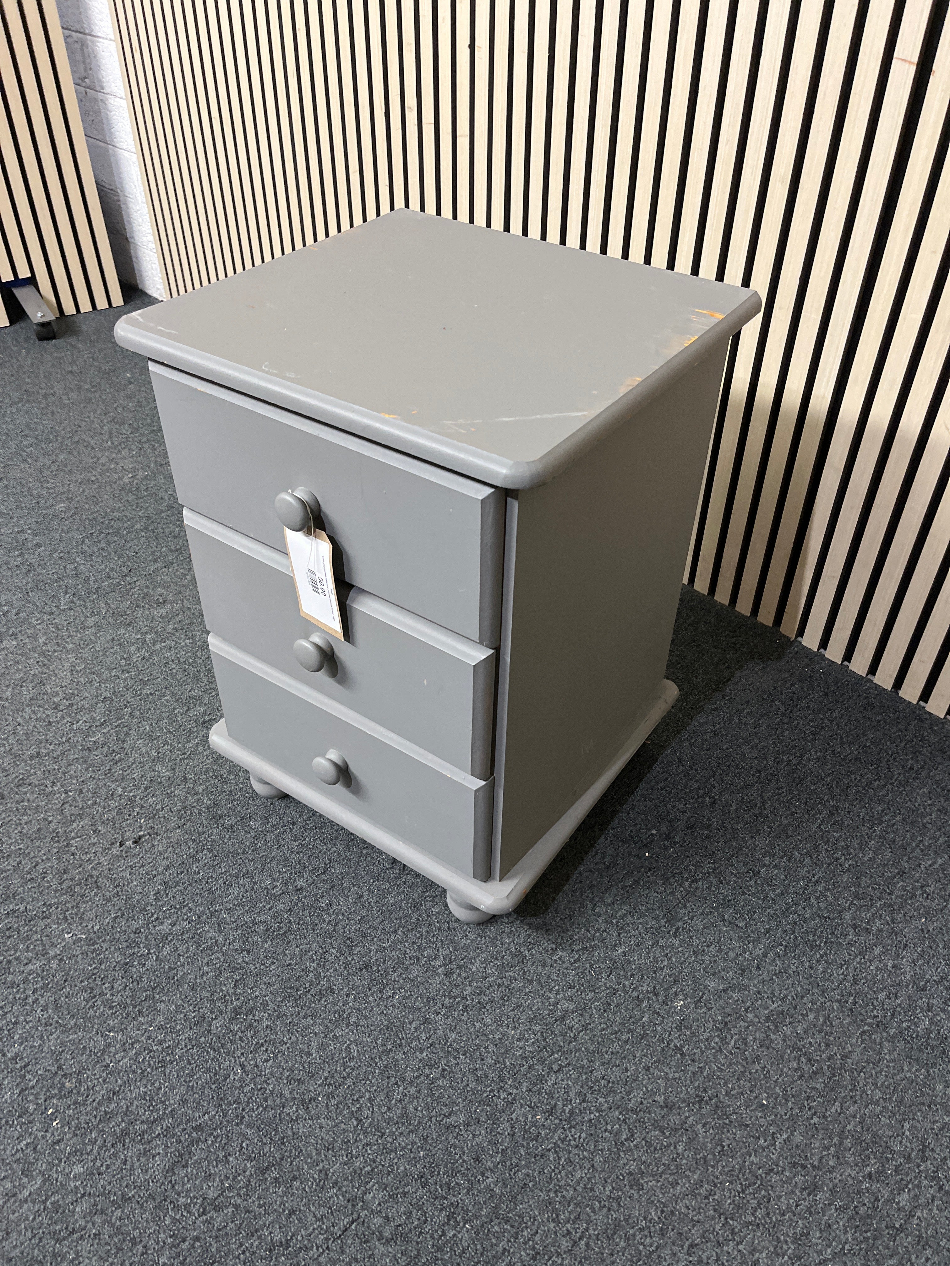 Dark grey painted solid pine 3 drawer bedside locker 2425
