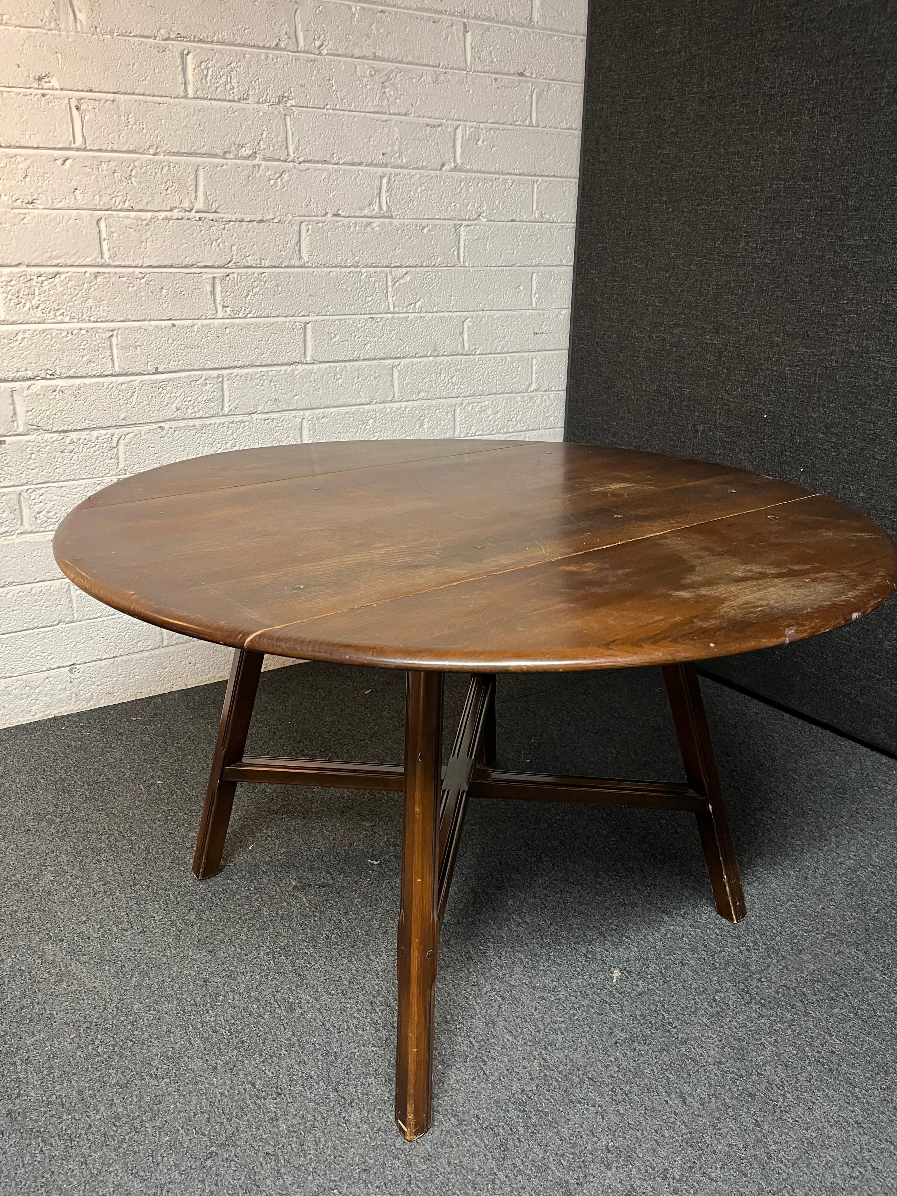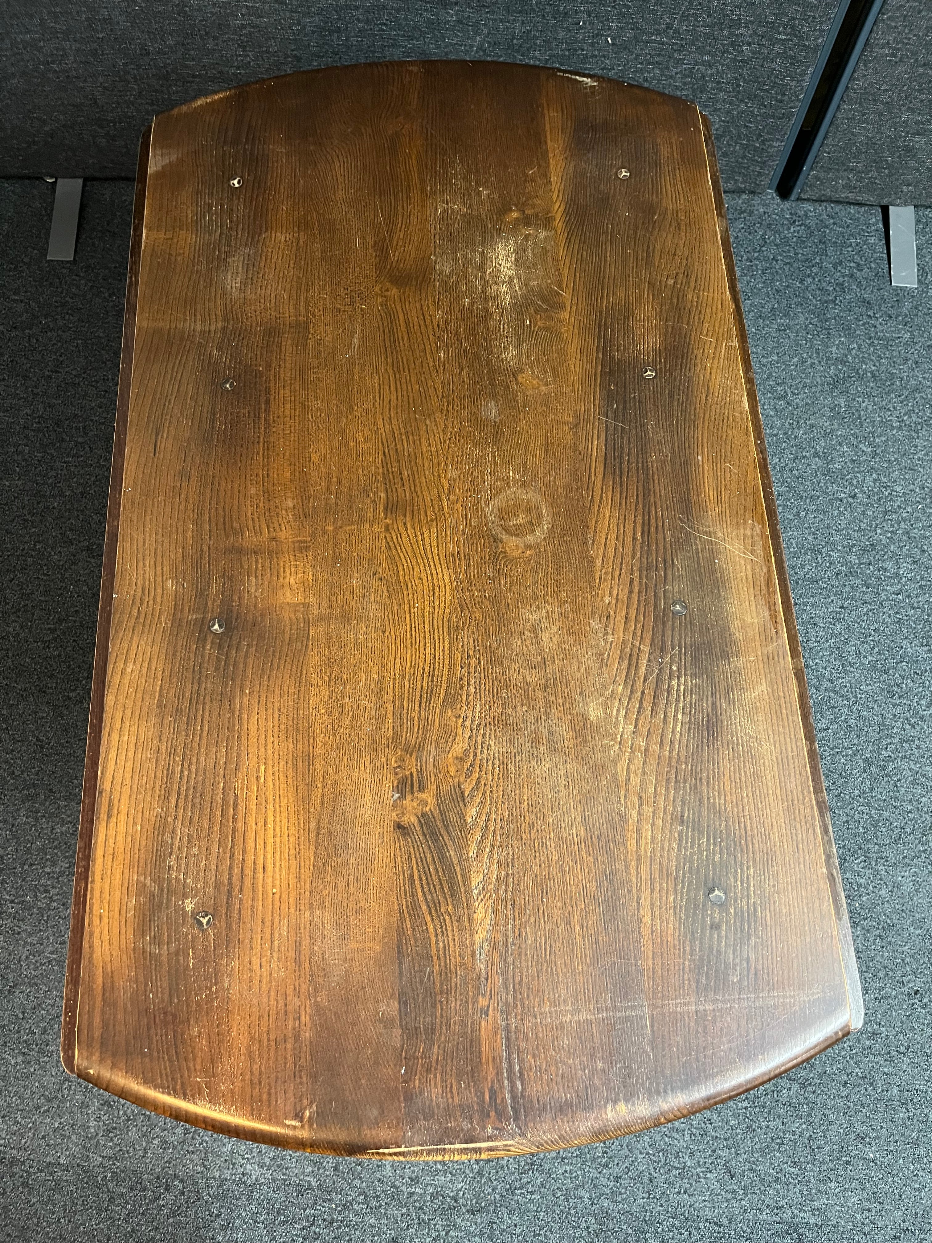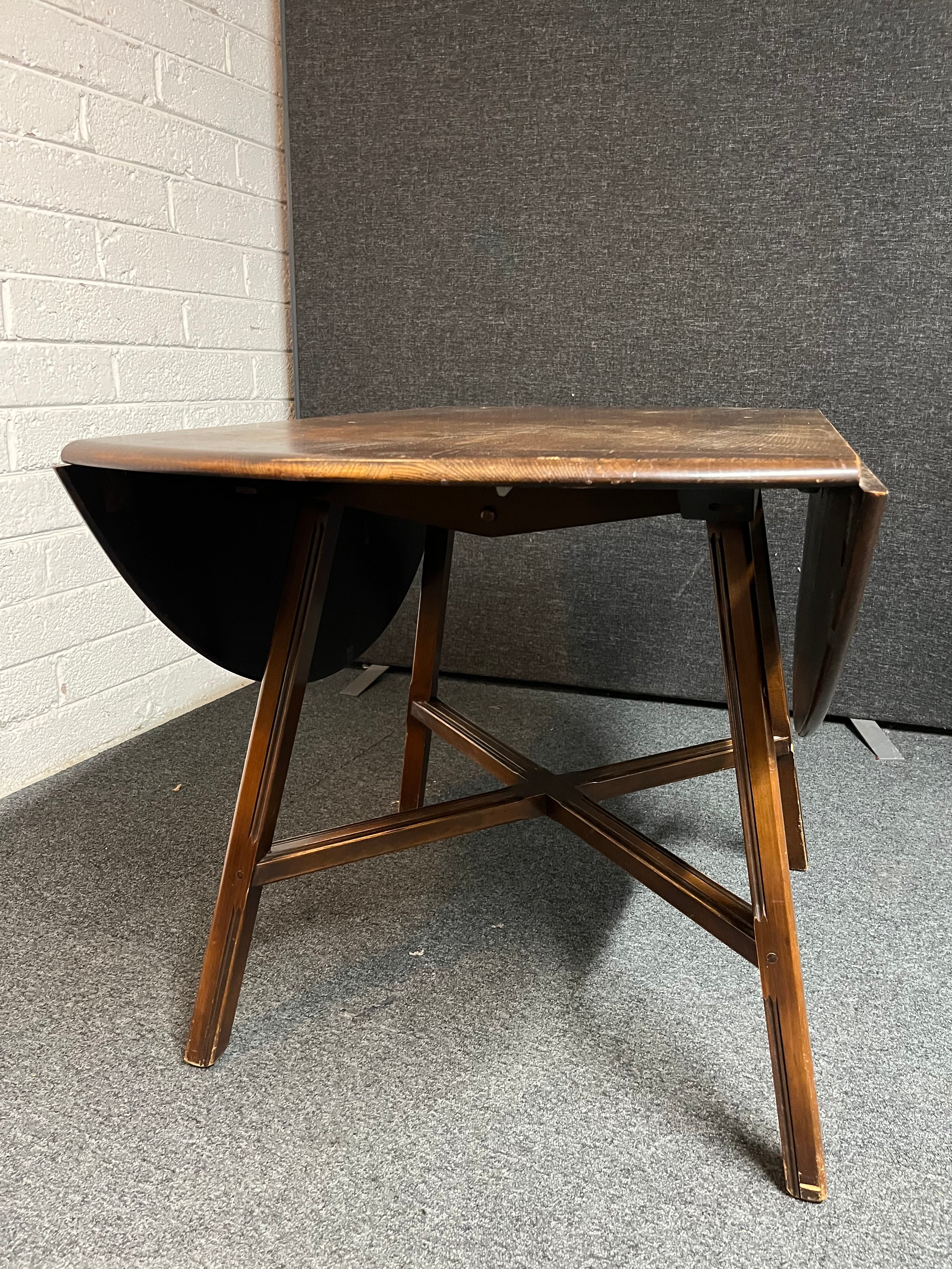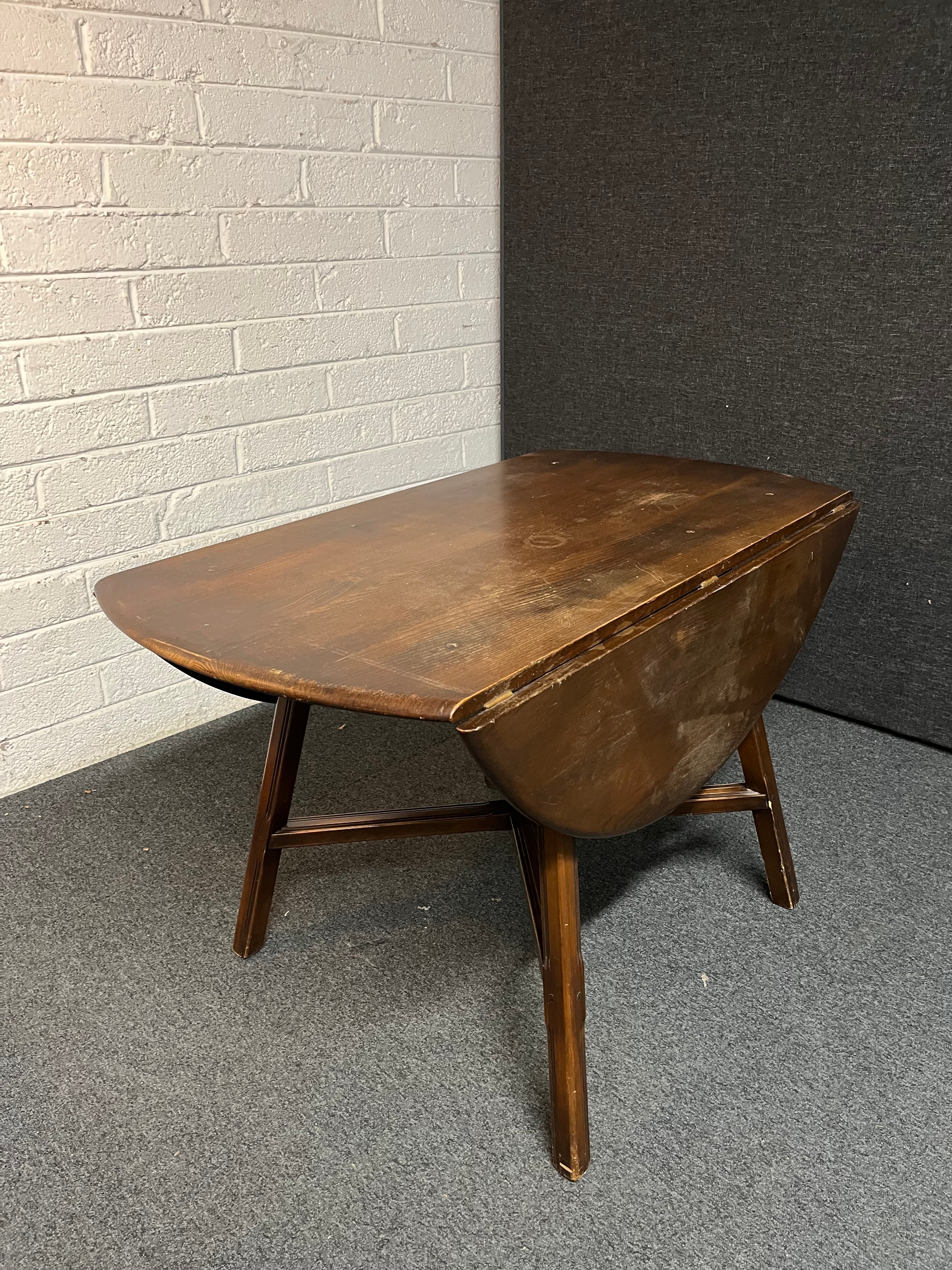 - Share: Ercol oak stained oval drop leaf table (W 122 x L 110 cm) 2225