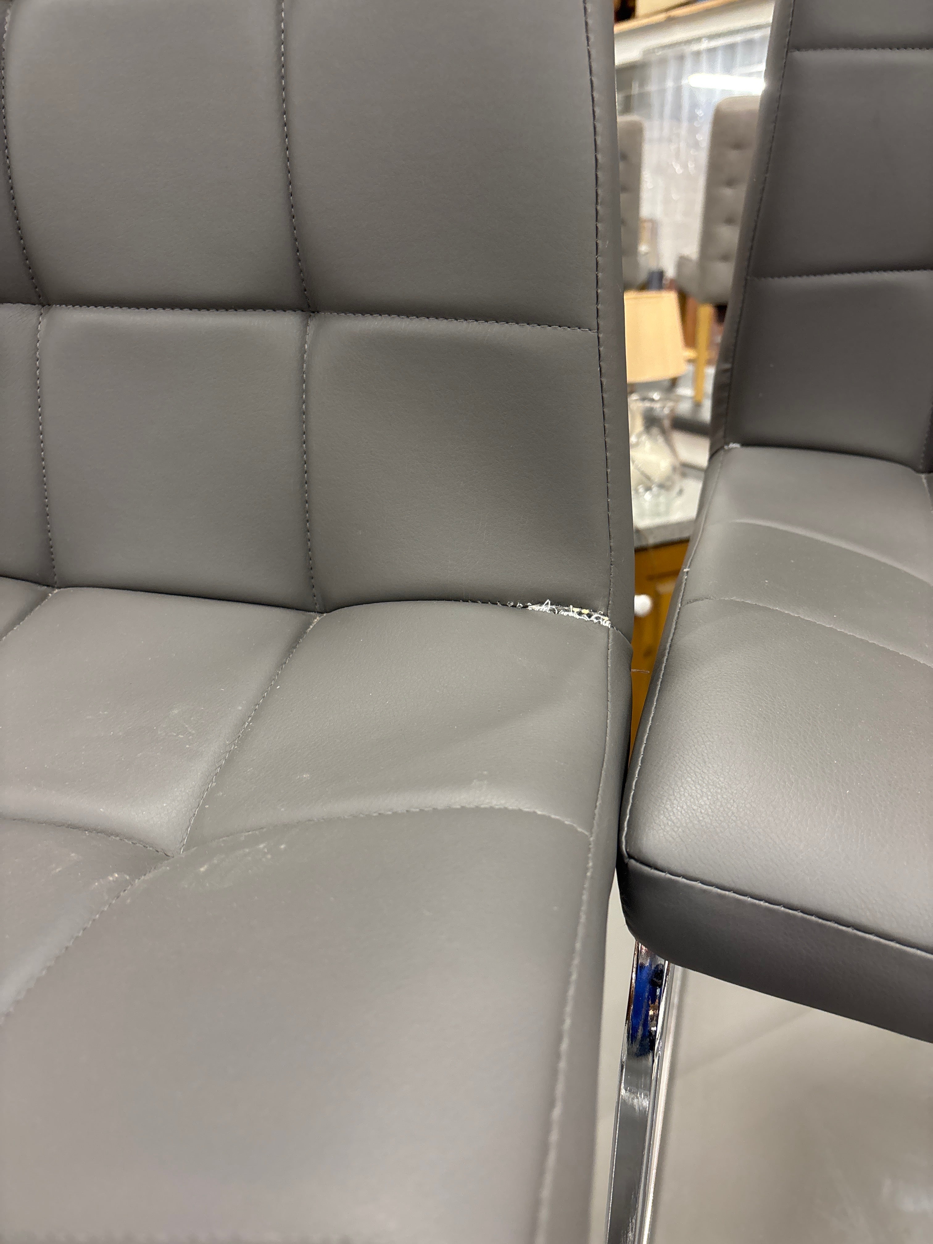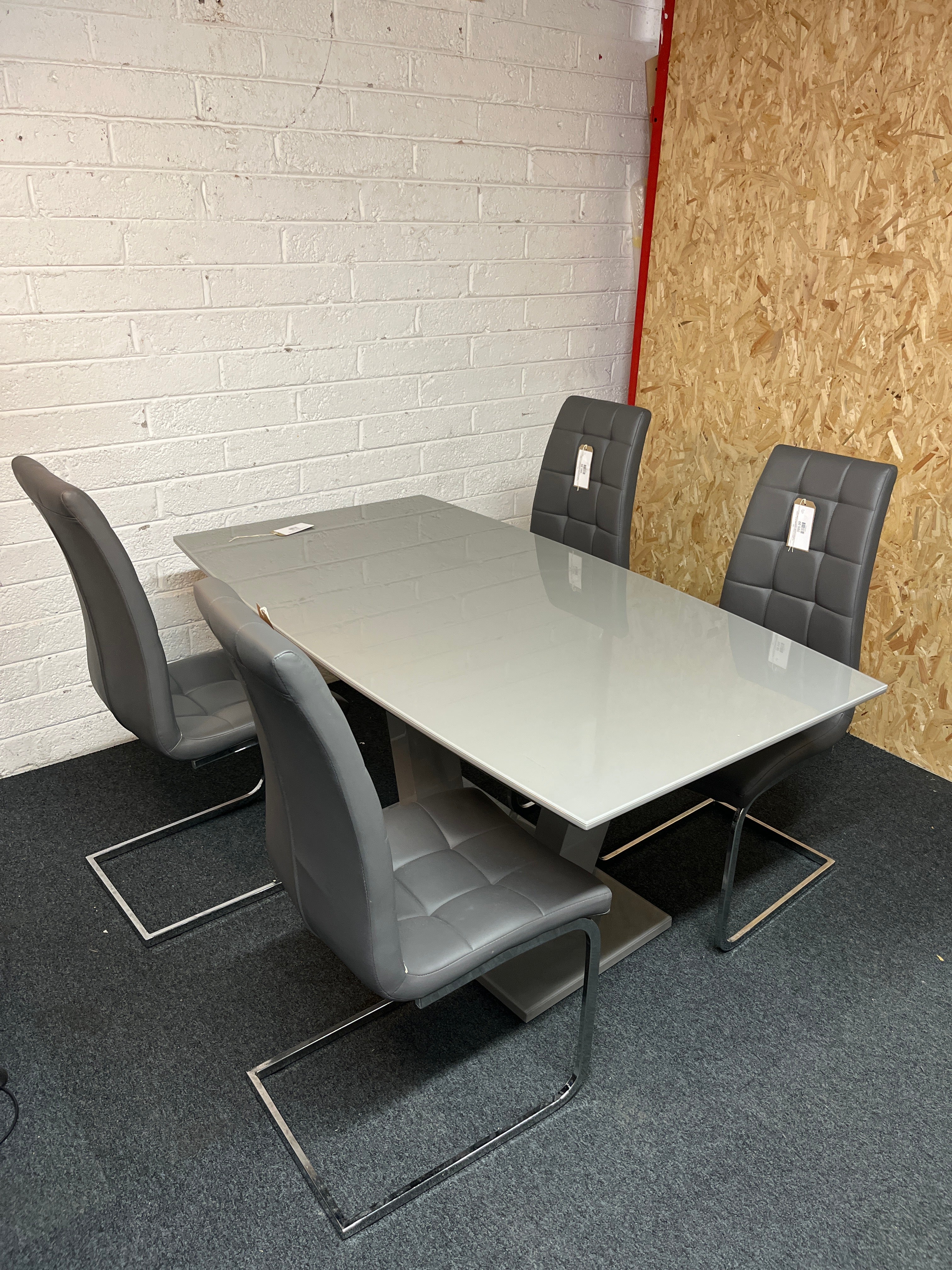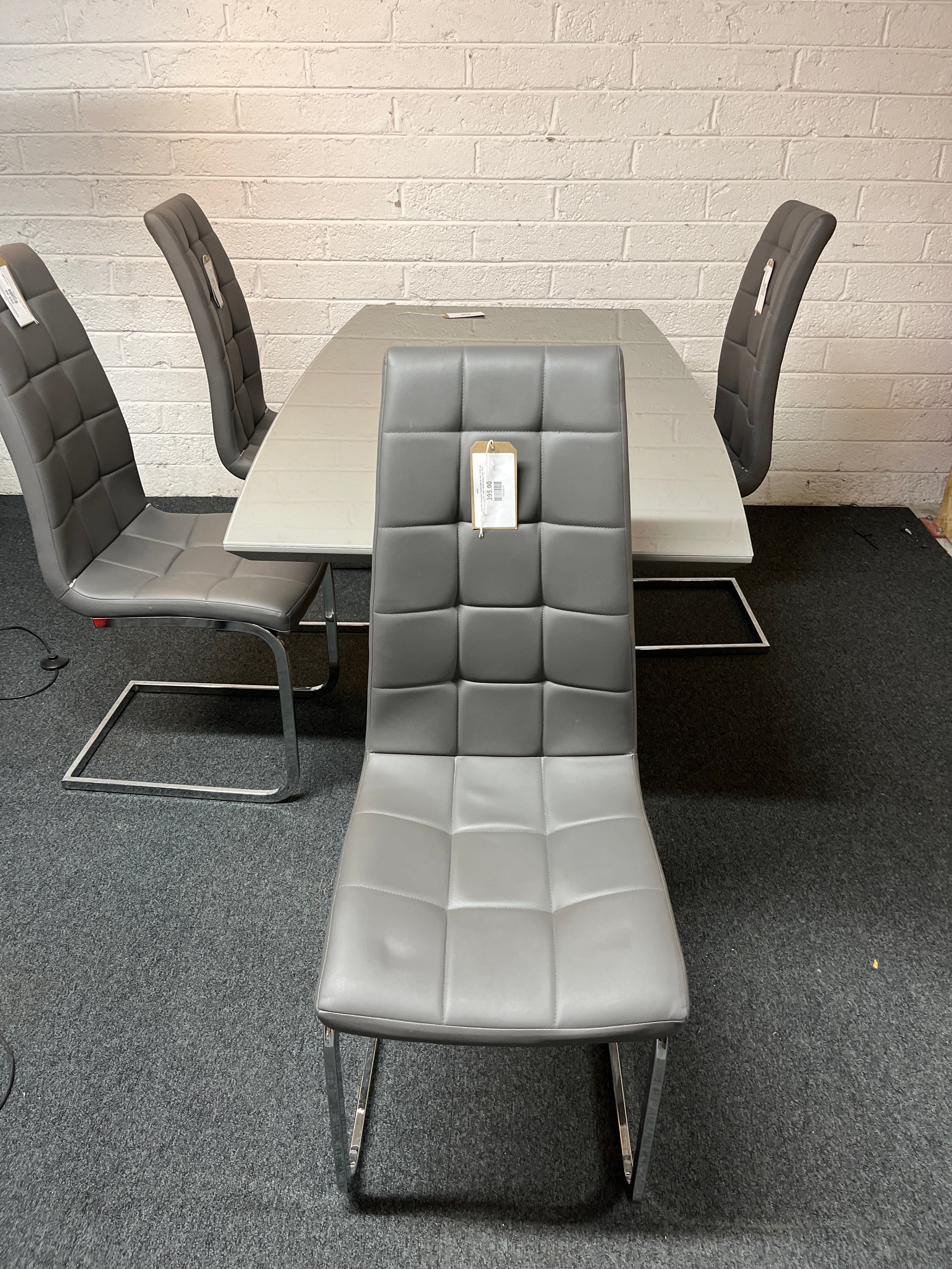 Grey glass top rectangular dining table (W 160 x D 90 cm) and 4 grey leatherette metal framed dining chair 1325