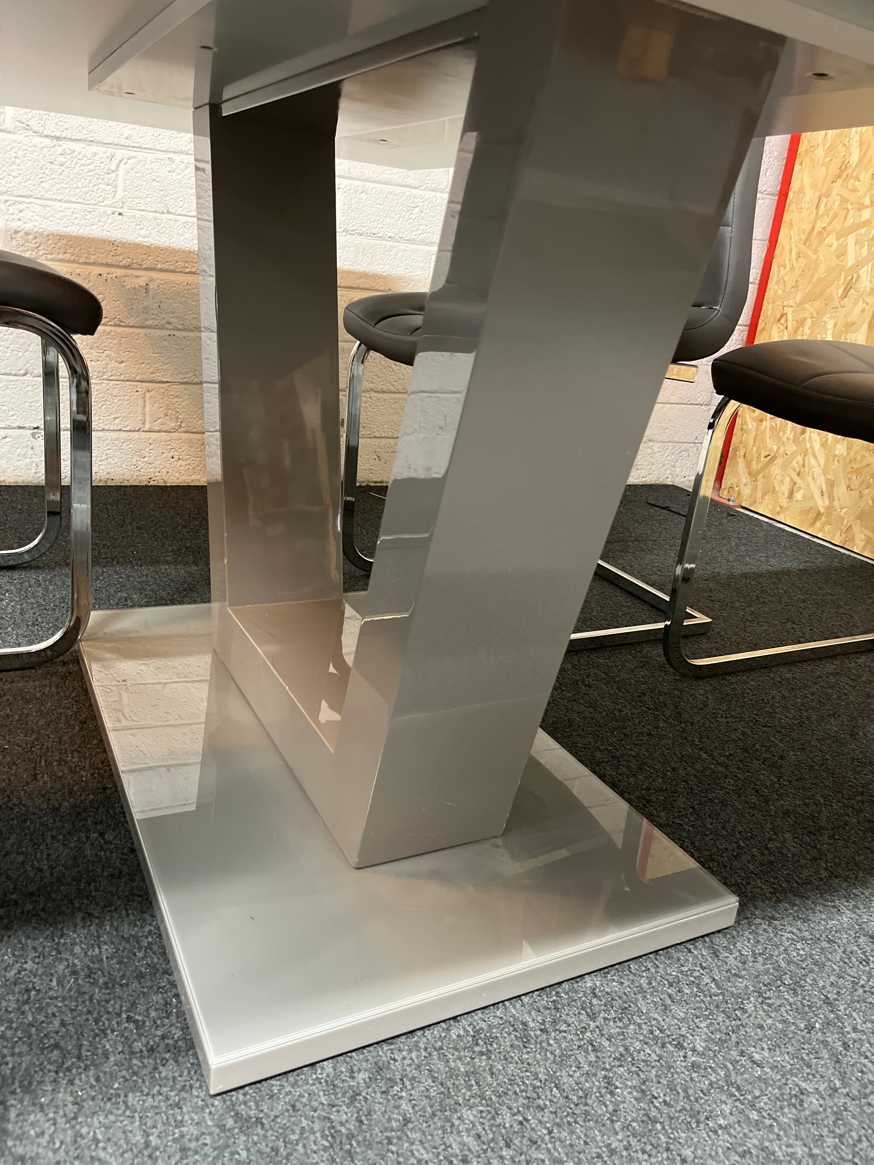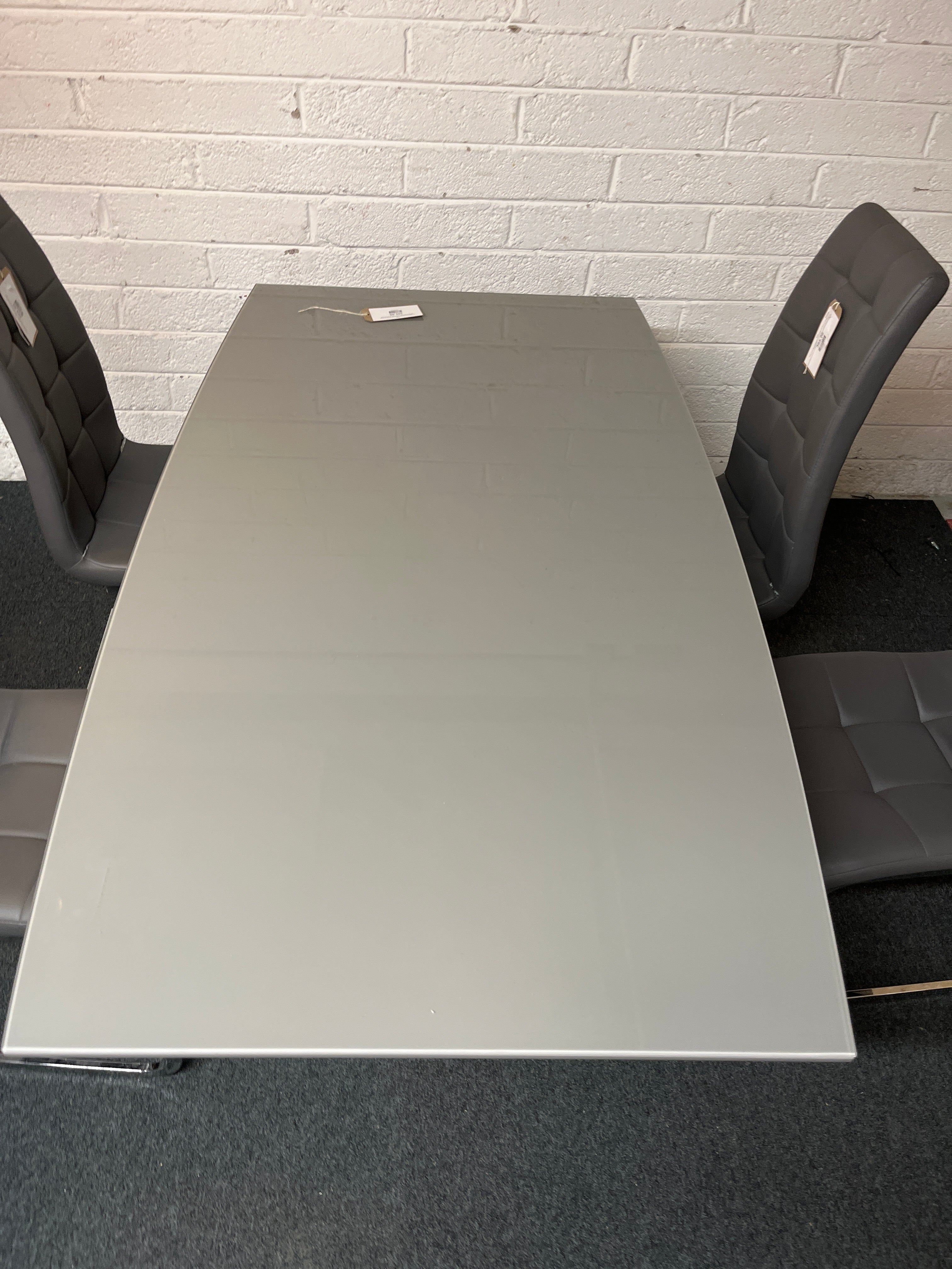 Grey glass top rectangular dining table (W 160 x D 90 cm) and 4 grey leatherette metal framed dining chair