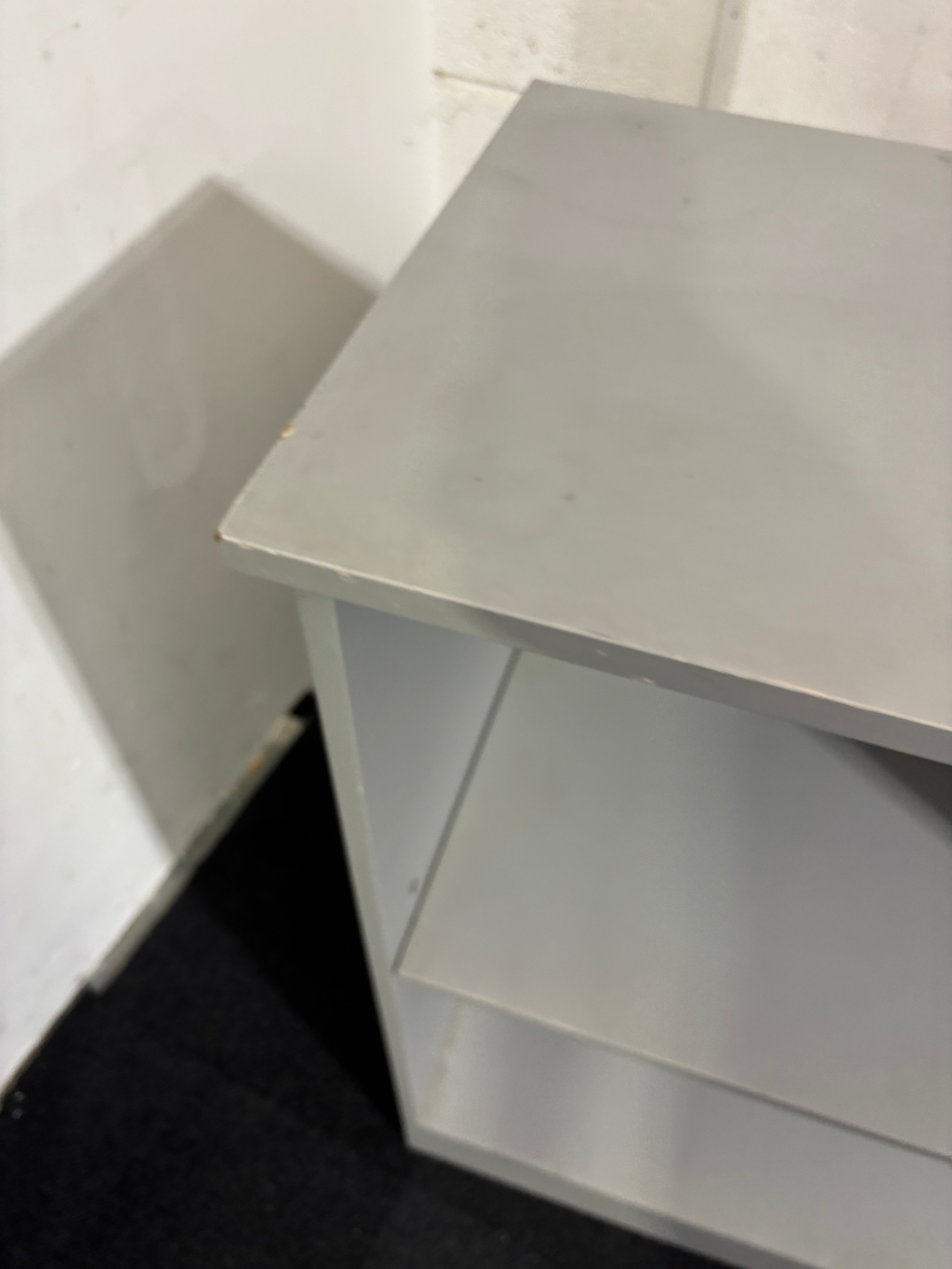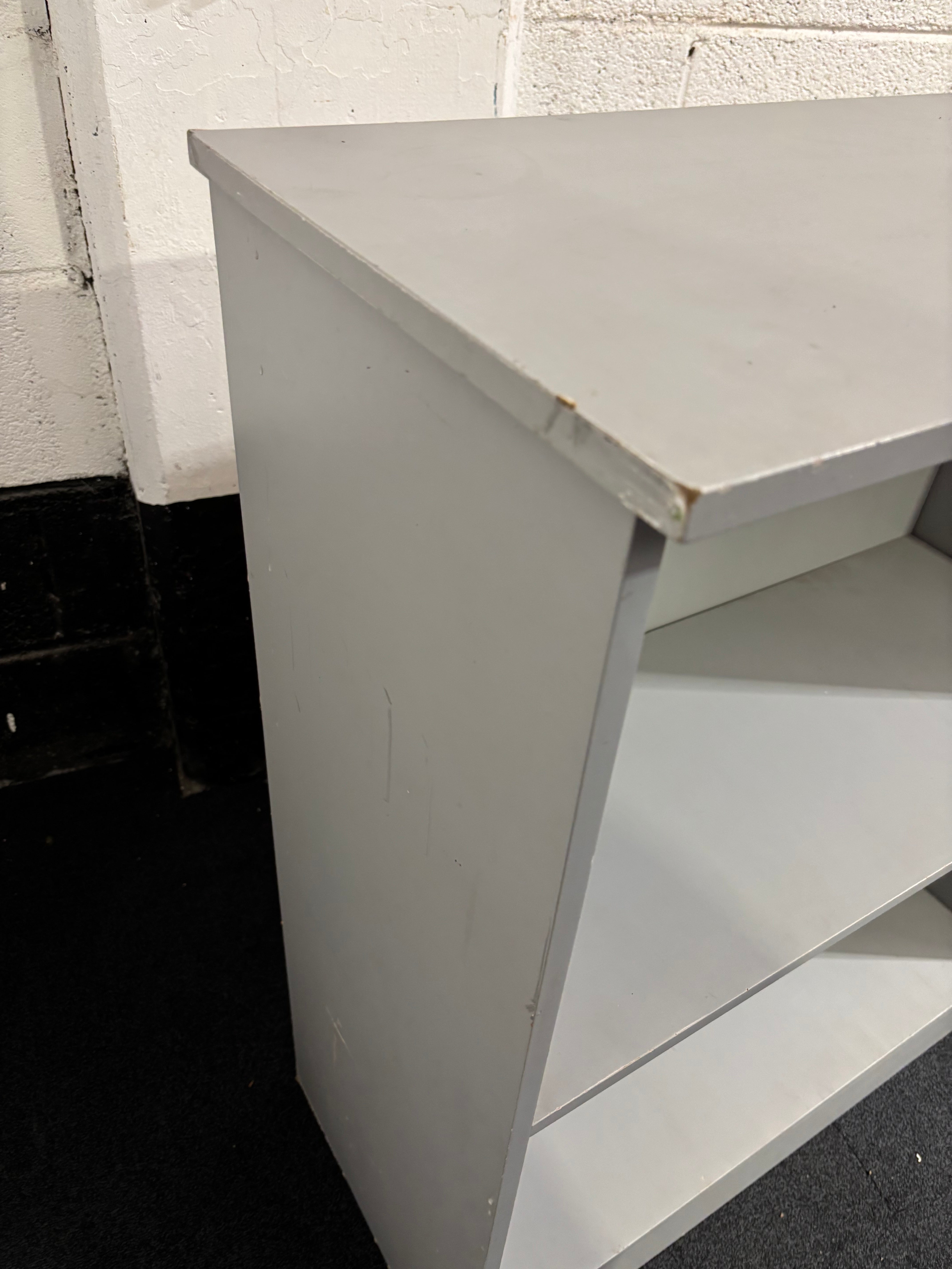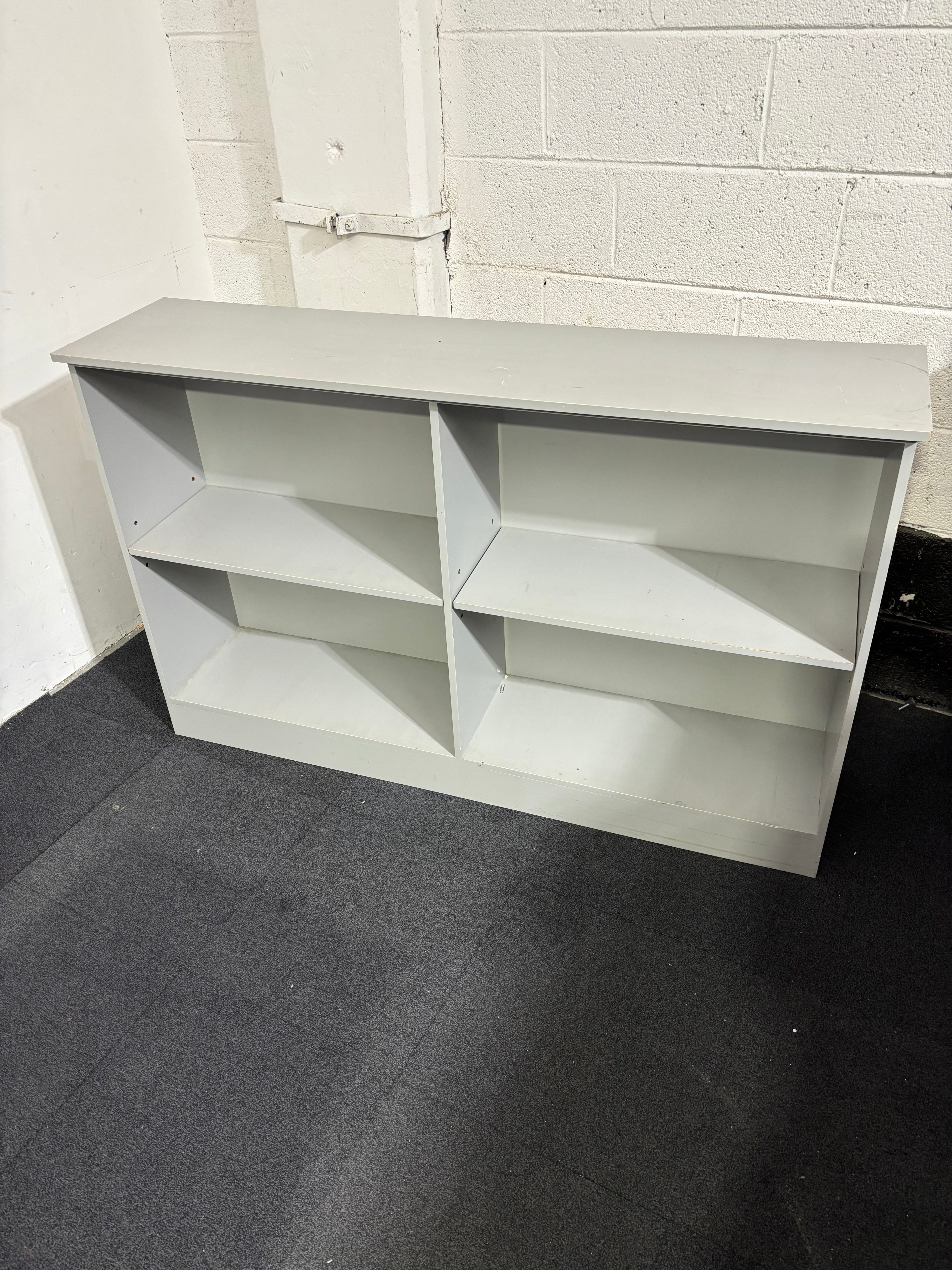 Grey mdf long low 4 section bookcase with adjustable shelves 93Hx148Lx35.5D