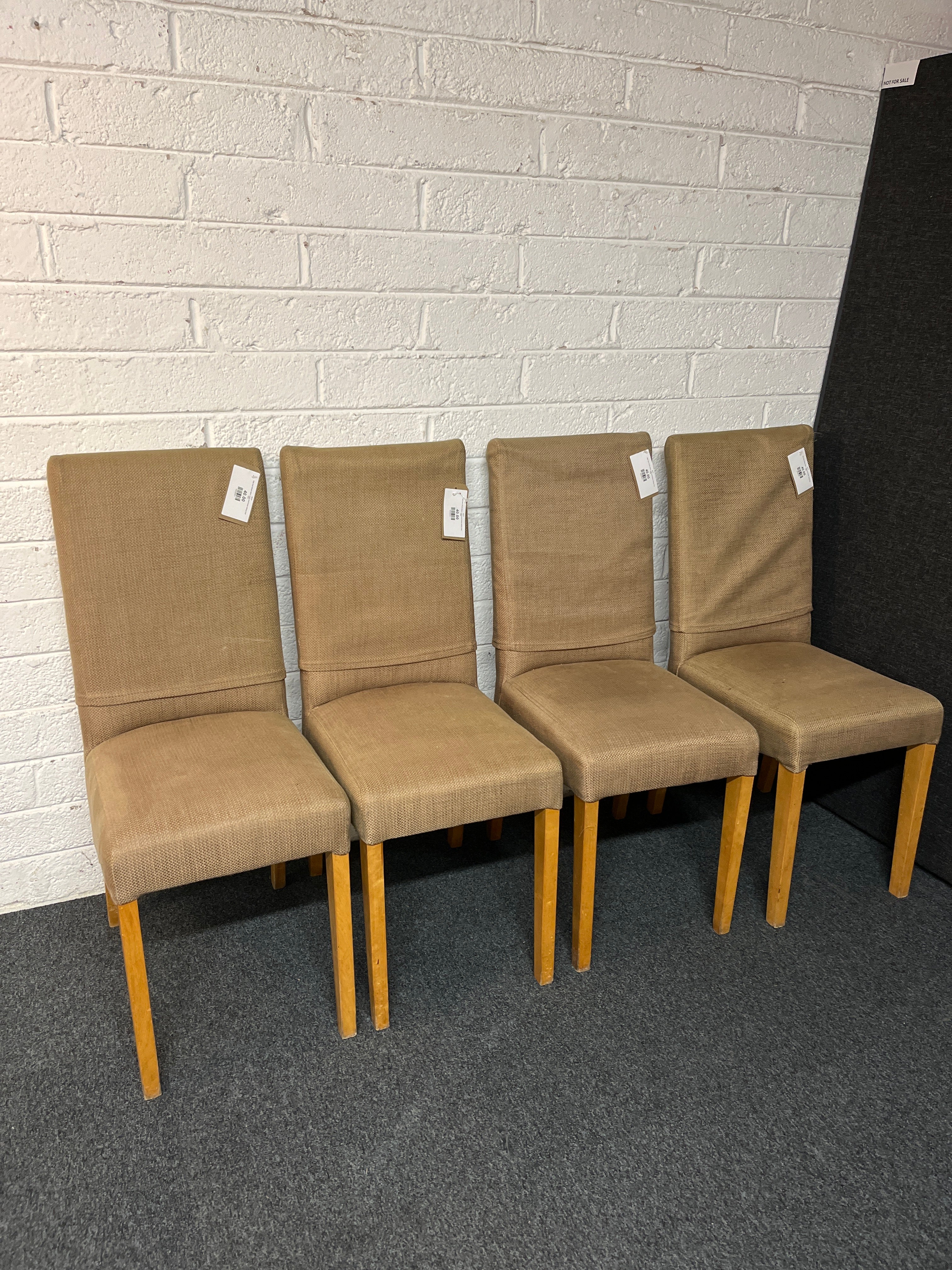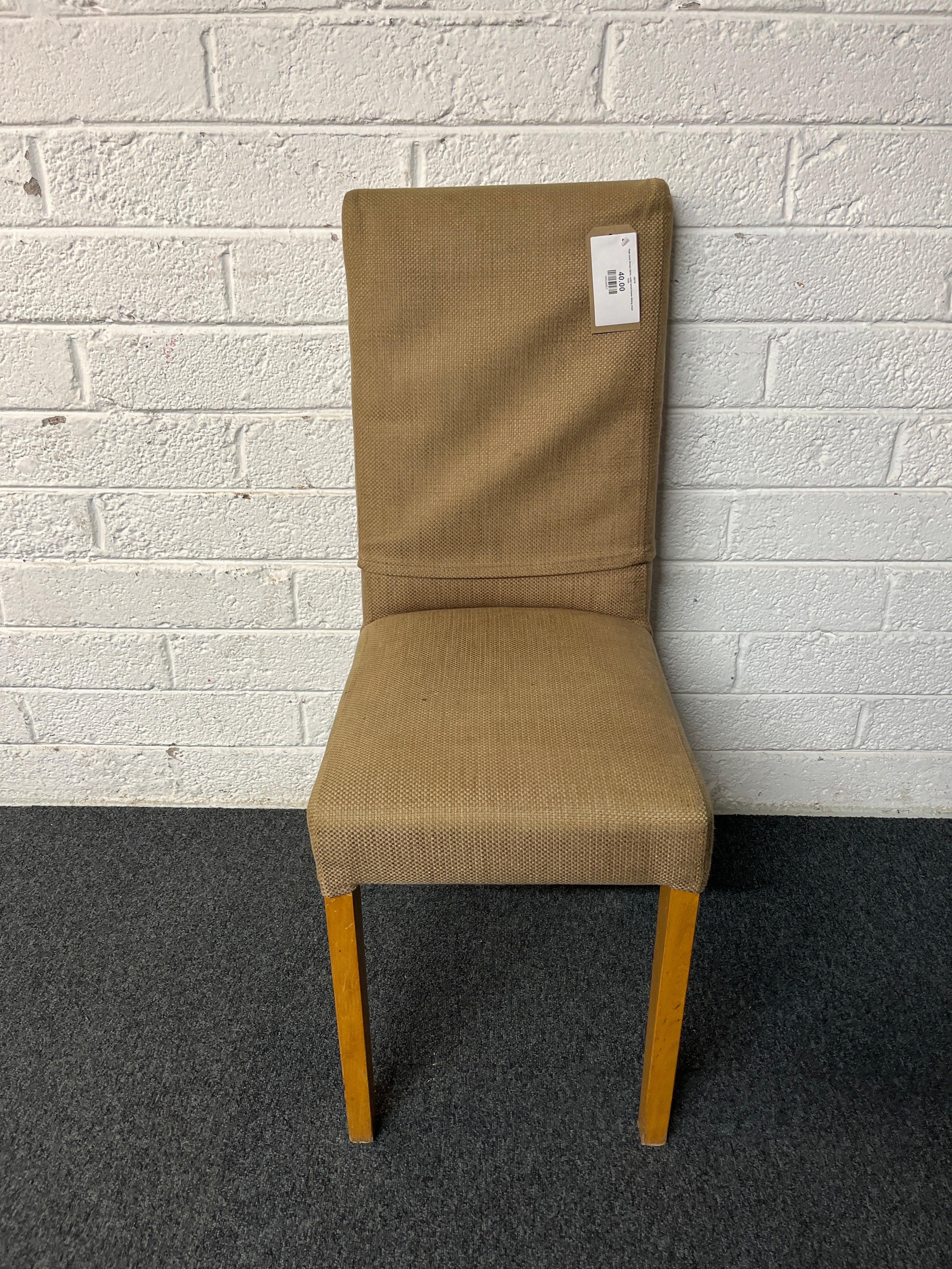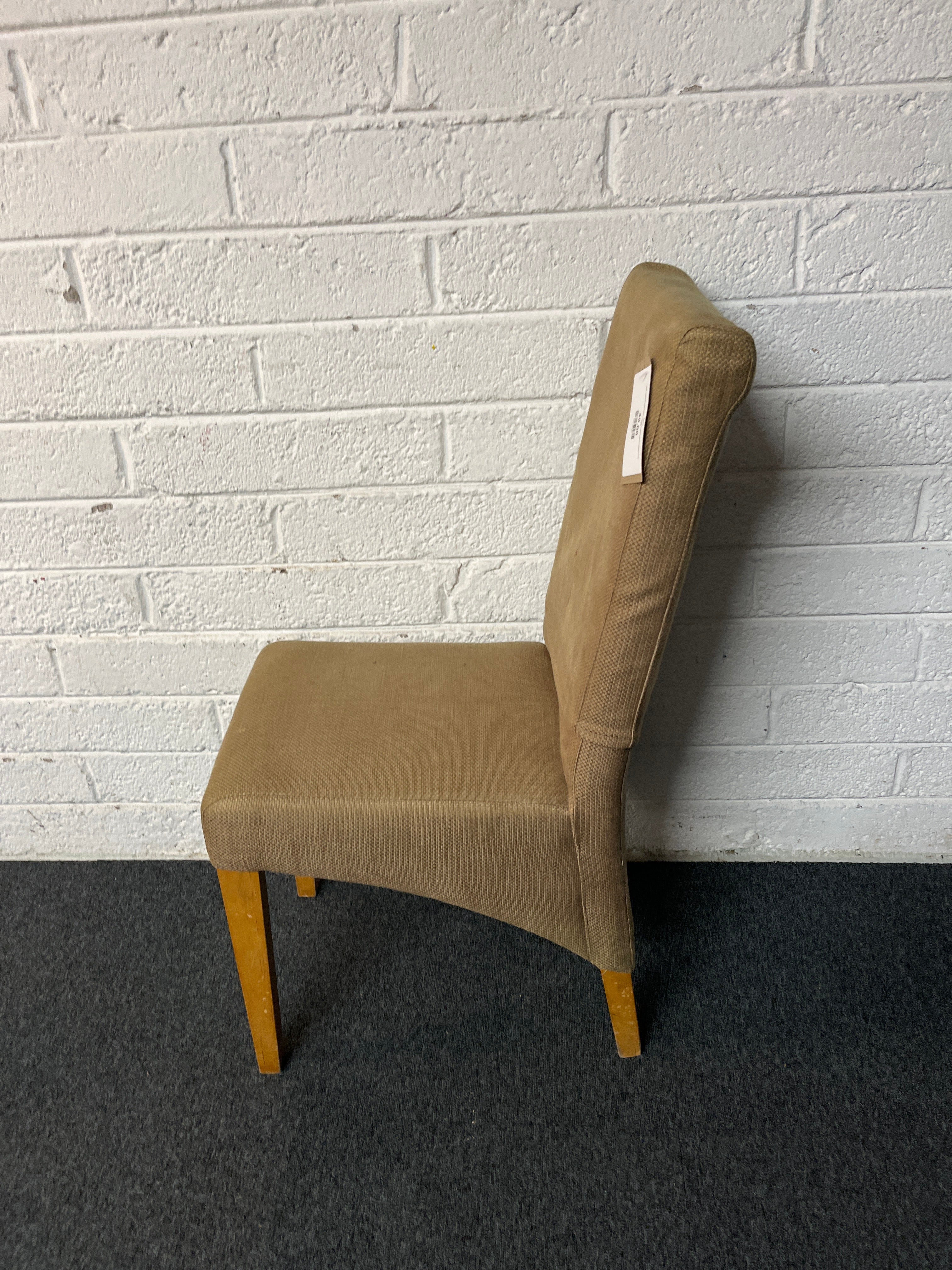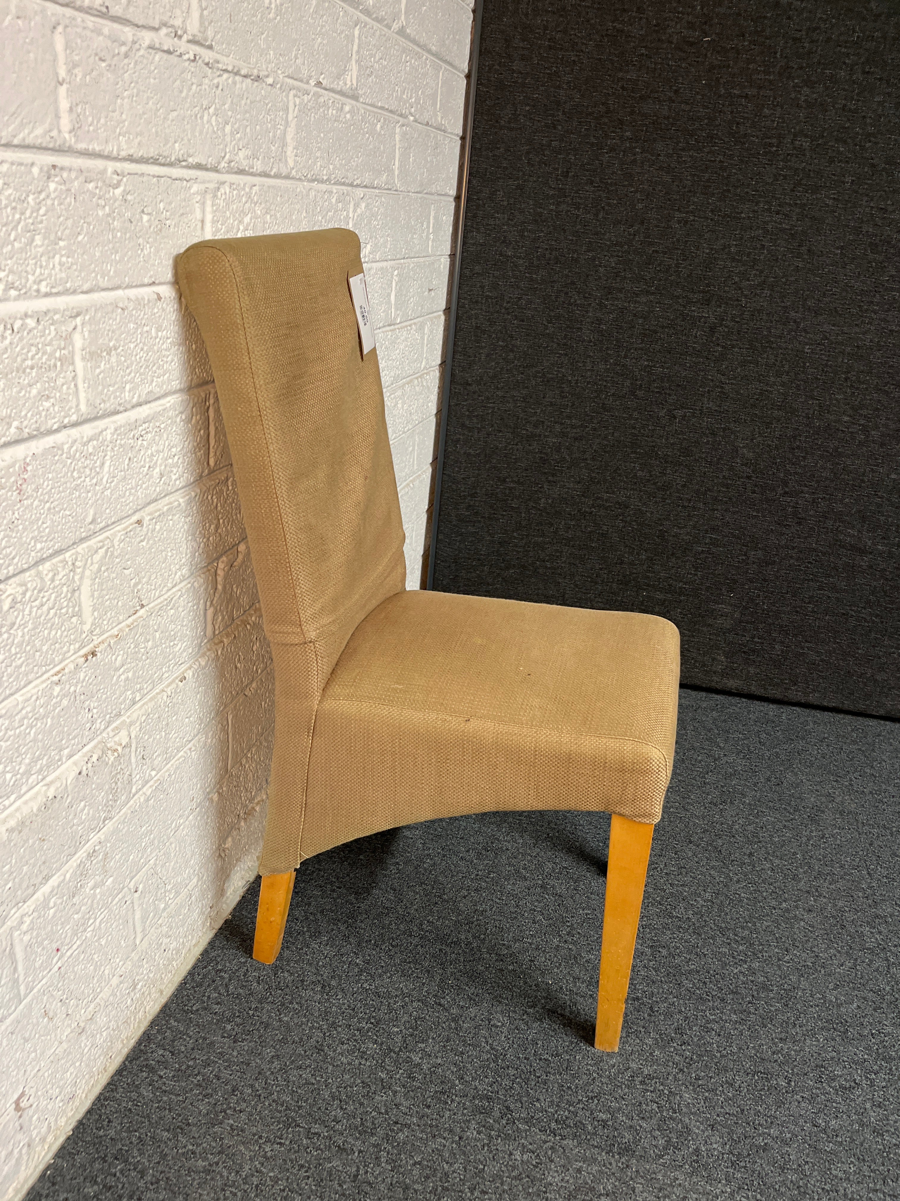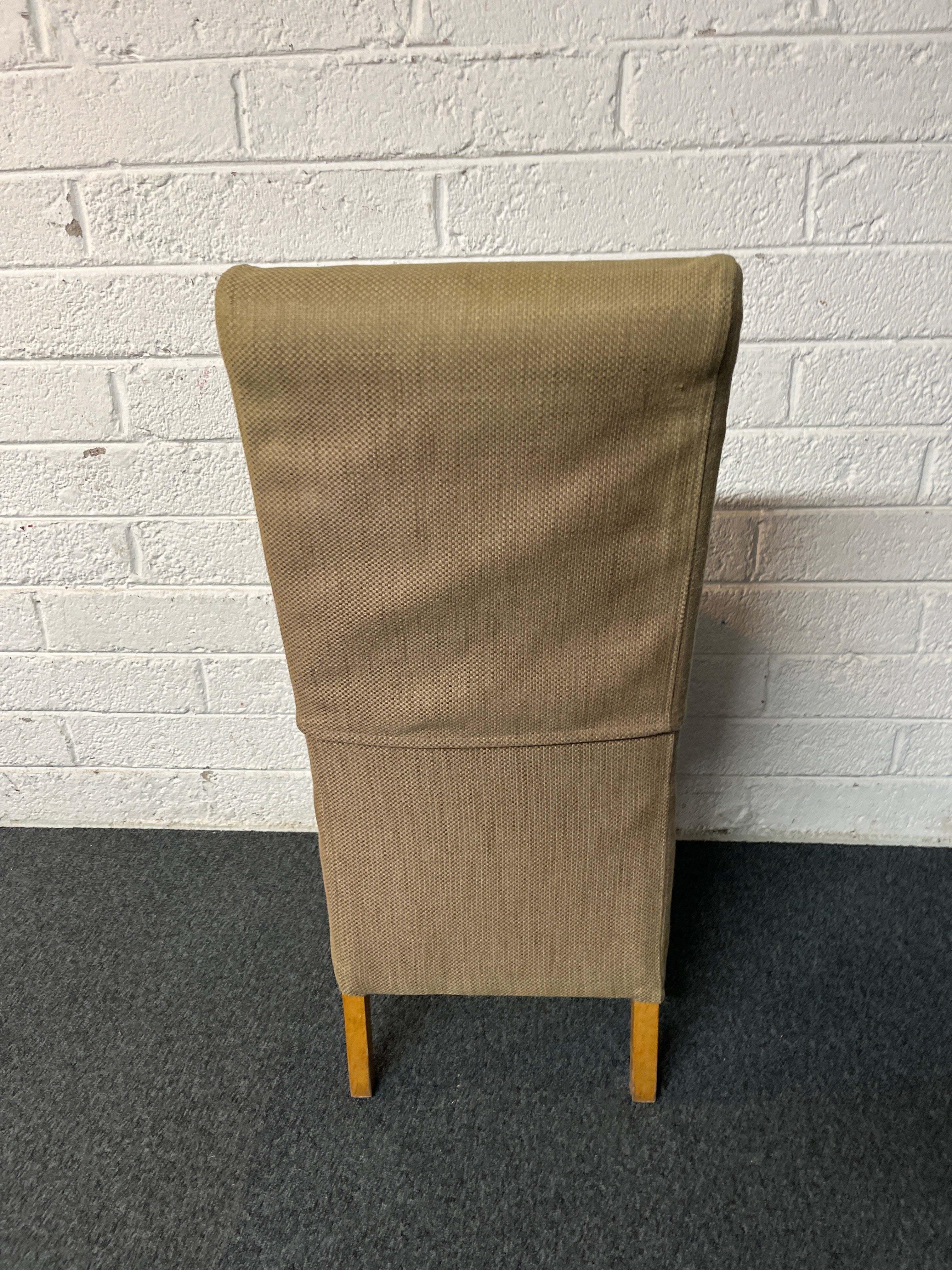 - Share: High back Brown fabric, solid wood frame dining chair 1225