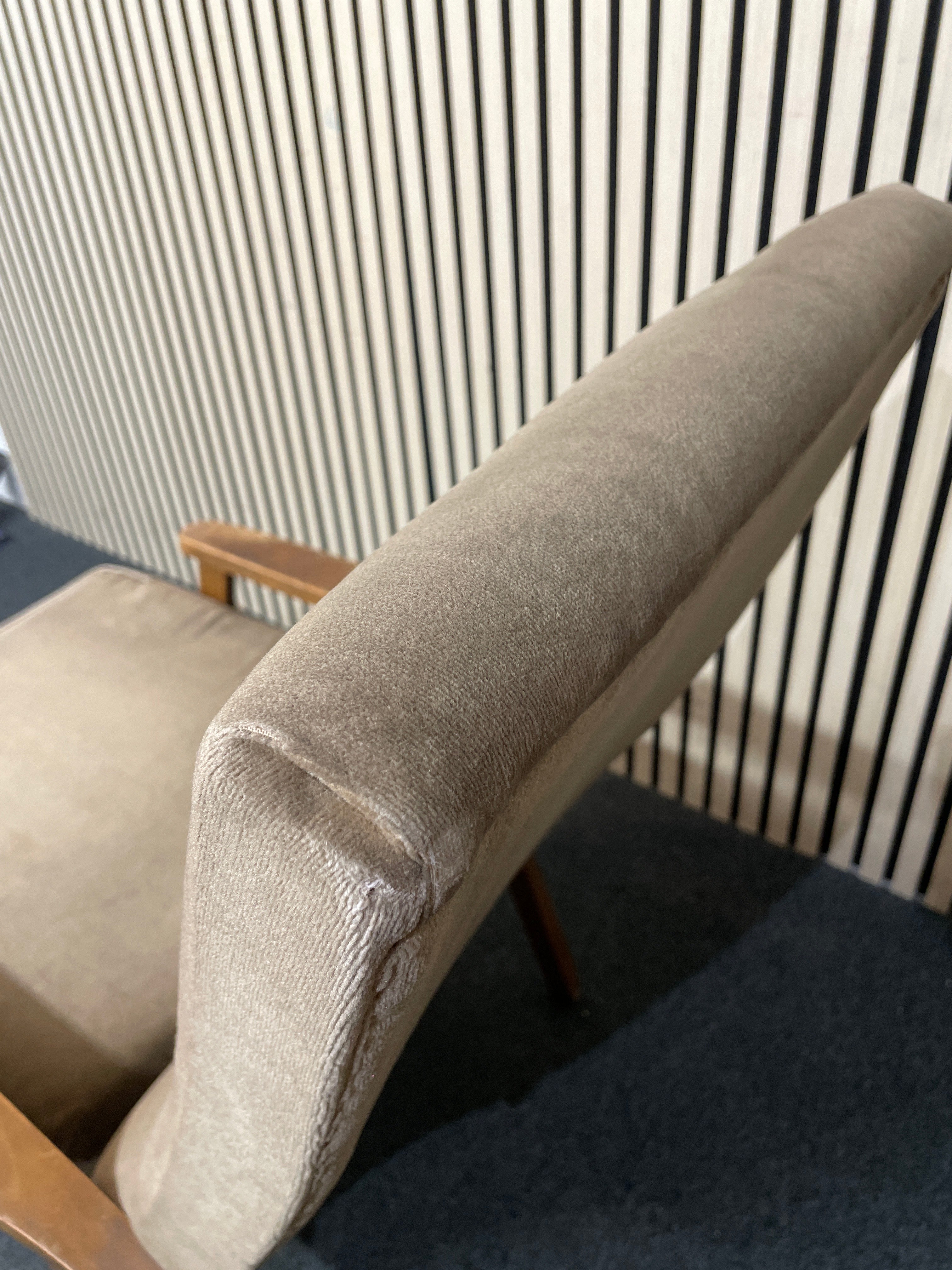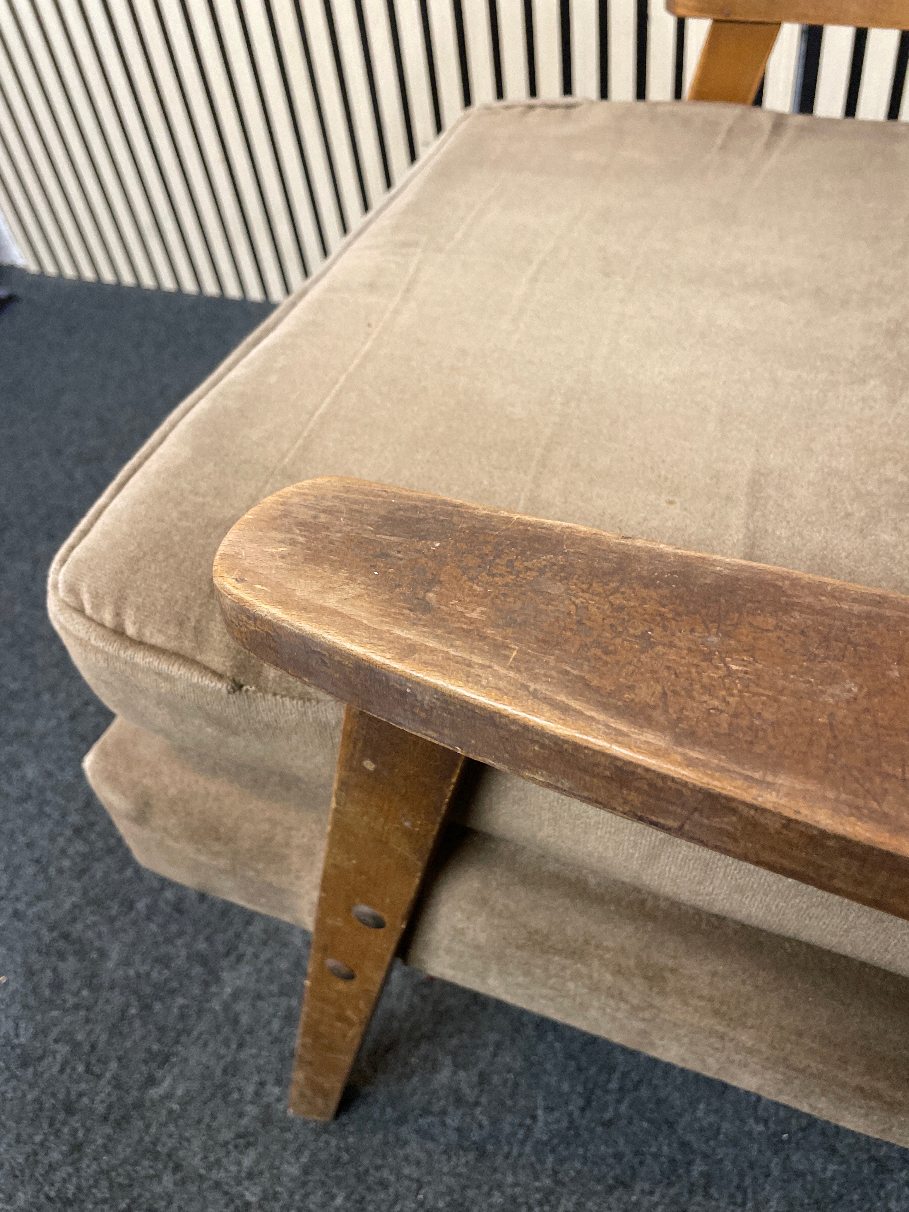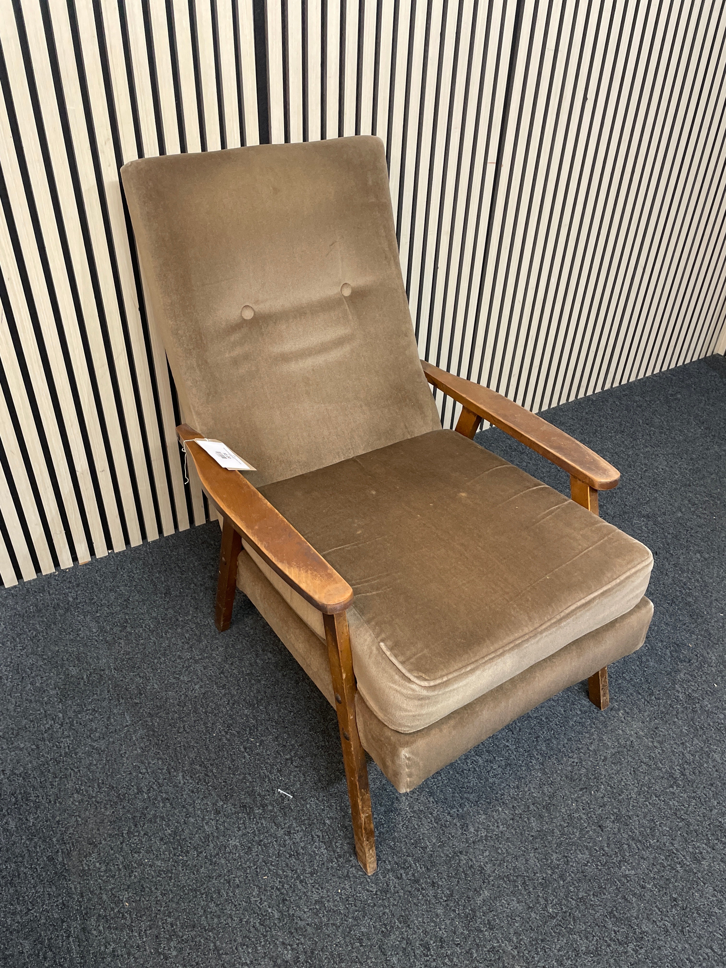 High back solid wood frame, brown fabric Fireside Armchair 1126