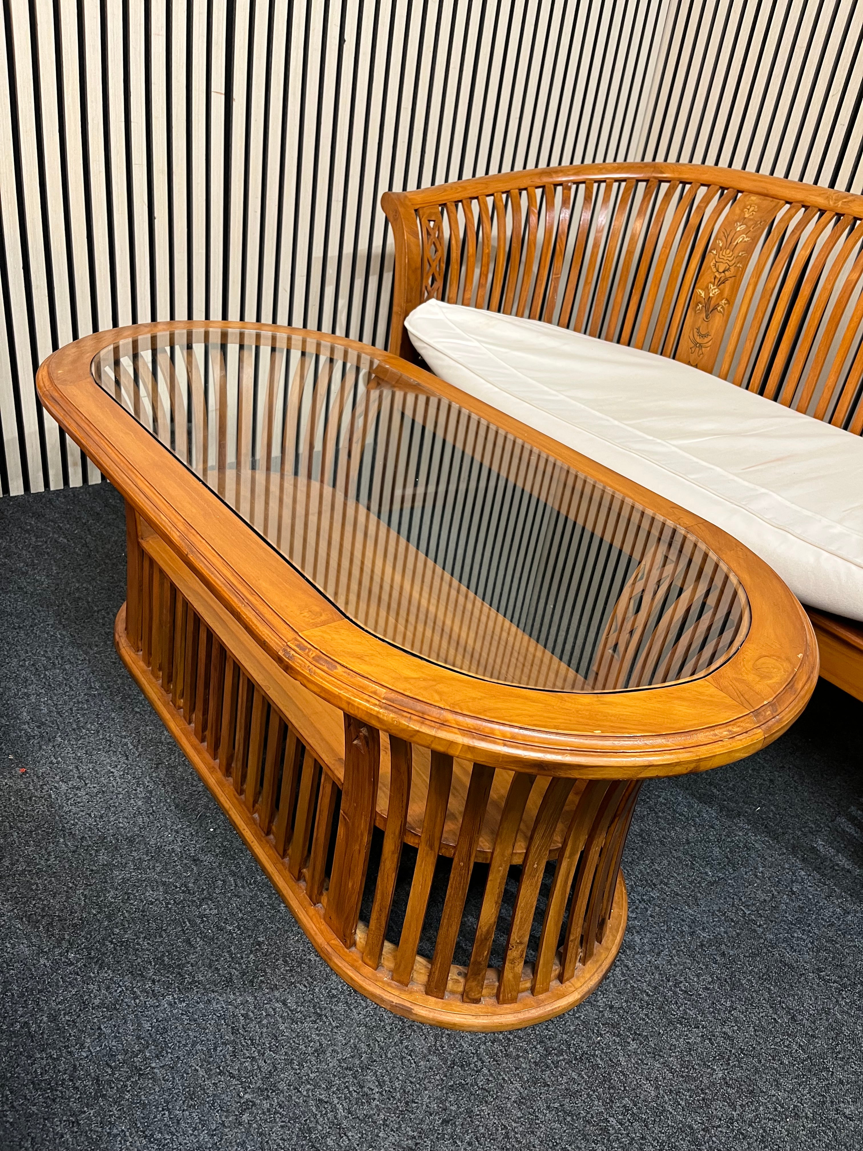 Indonesian solid teak conservatory set 2+2+1+coffee table with white fabric cushions