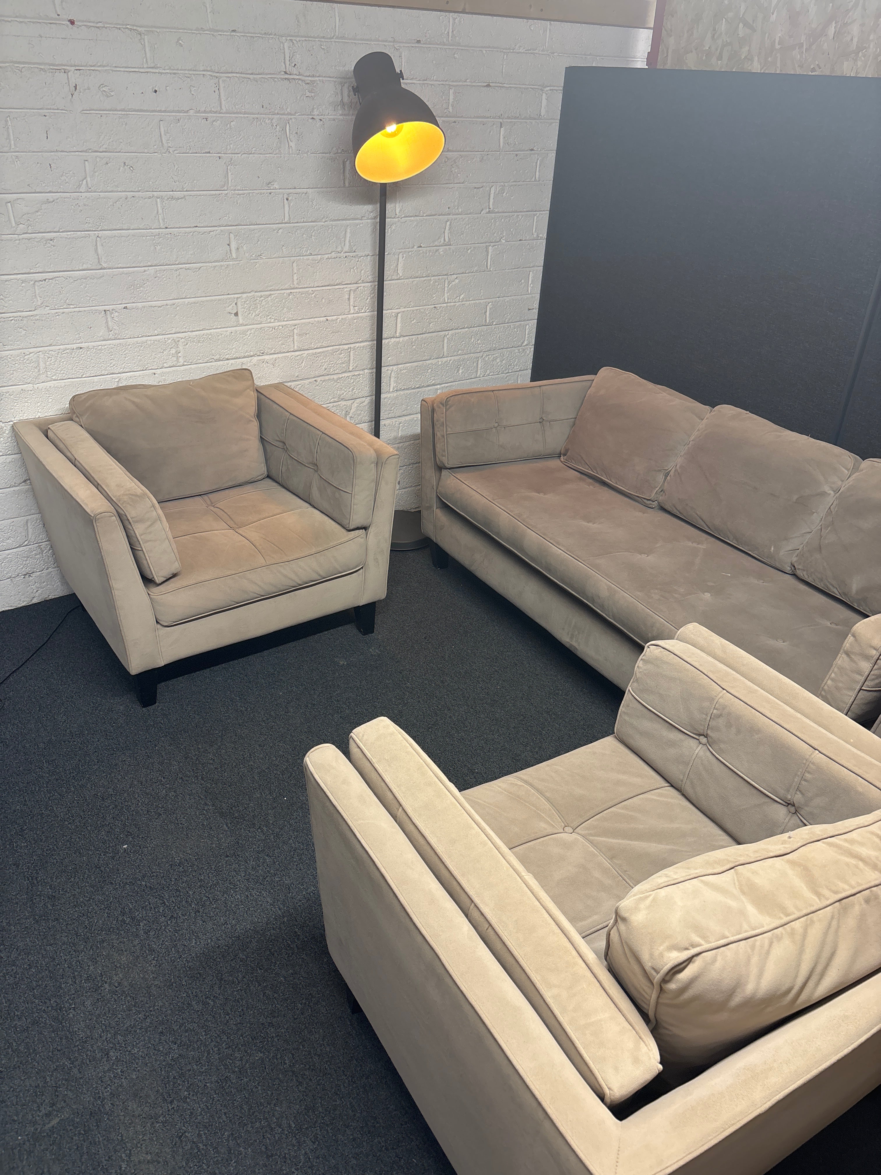Large 3+1+1 light brown suede fabric sofa suite 1225