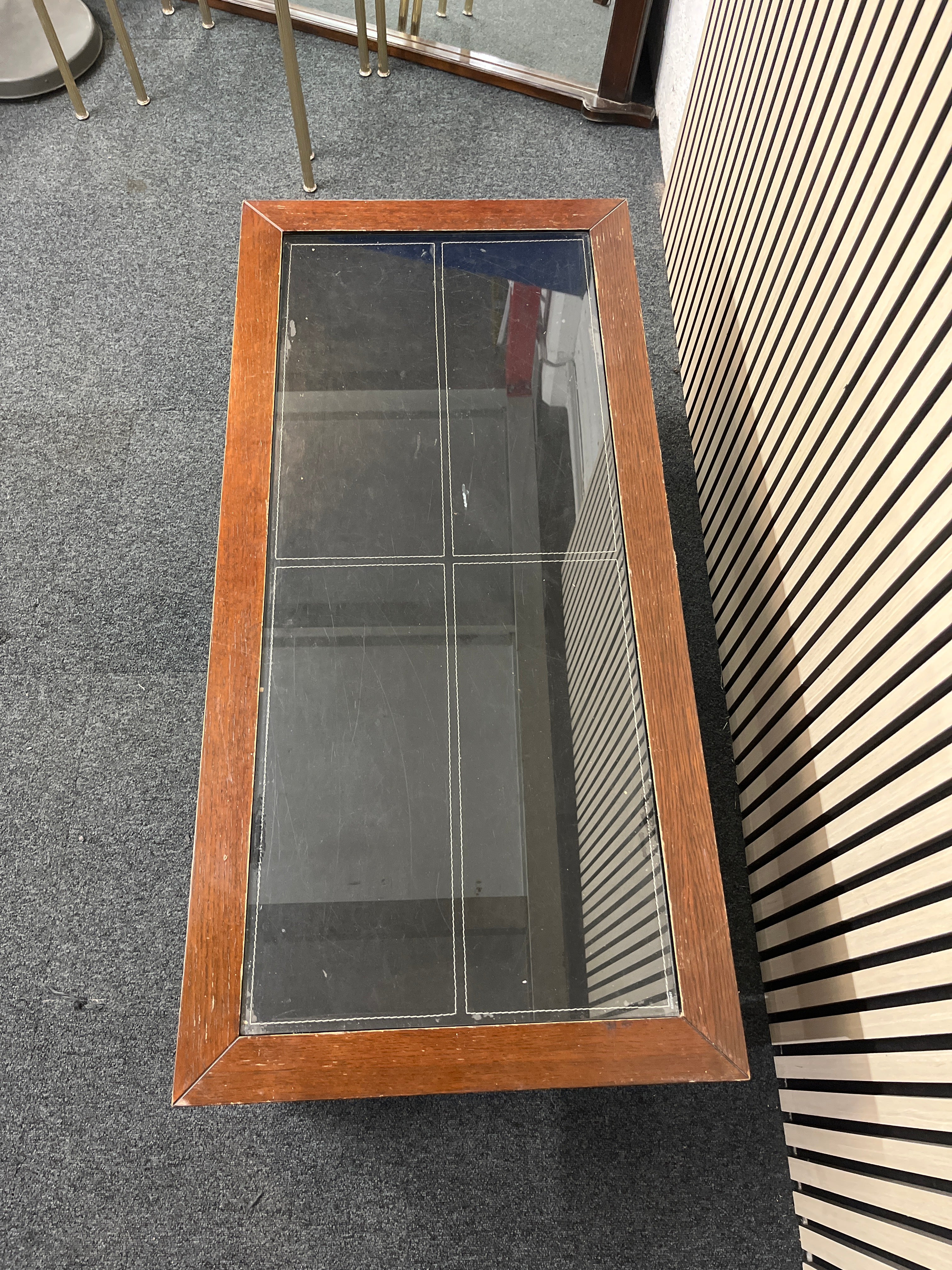 Mahogany coffee table with glass inserts (H 46 x W 110 x D 52 cm) 3325