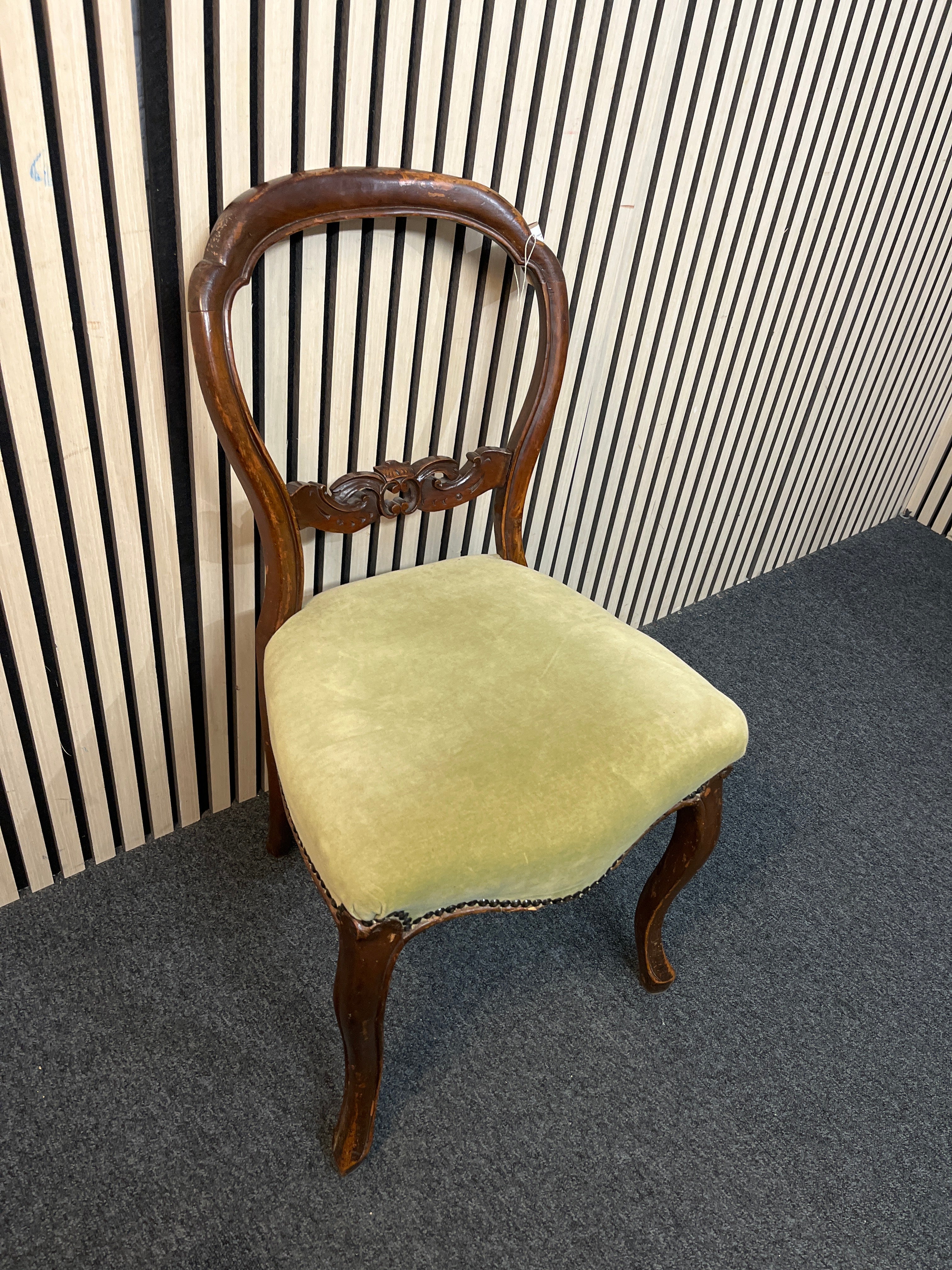 - Share: Mahogany framed spoon back dining chair with green seat fabric 2425
