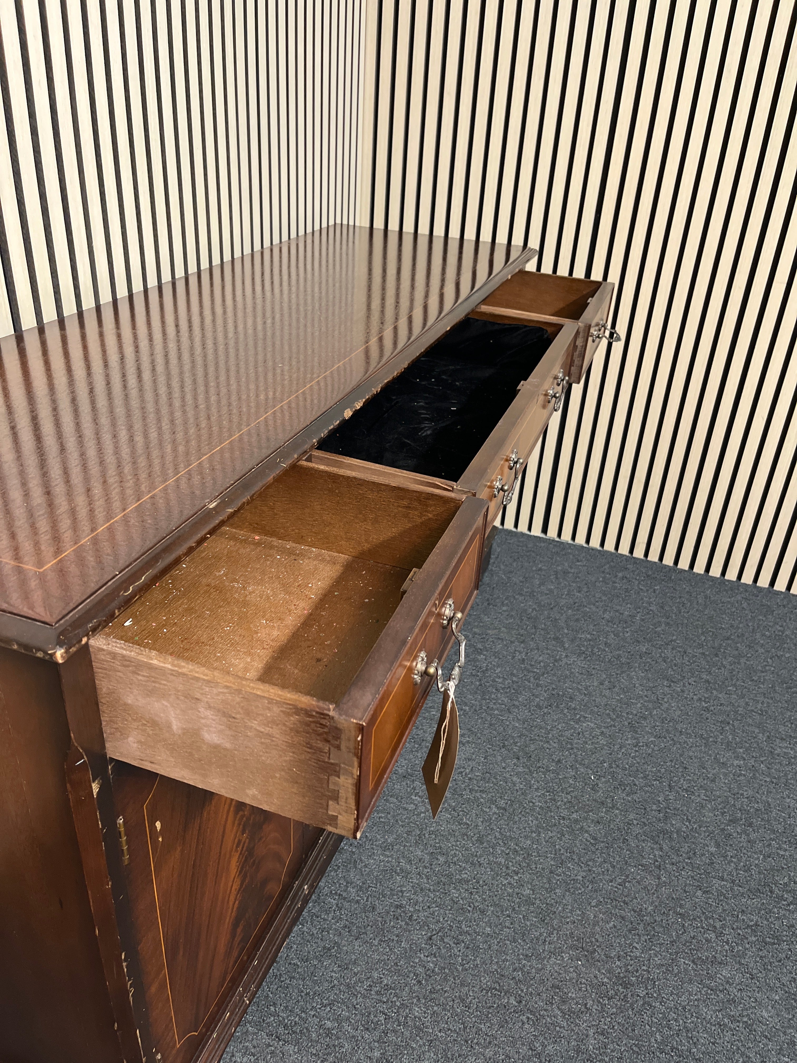 Mahogany inlaid 3 door 3 drawer sideboard (H 83 x W 152 x D 48 cm)