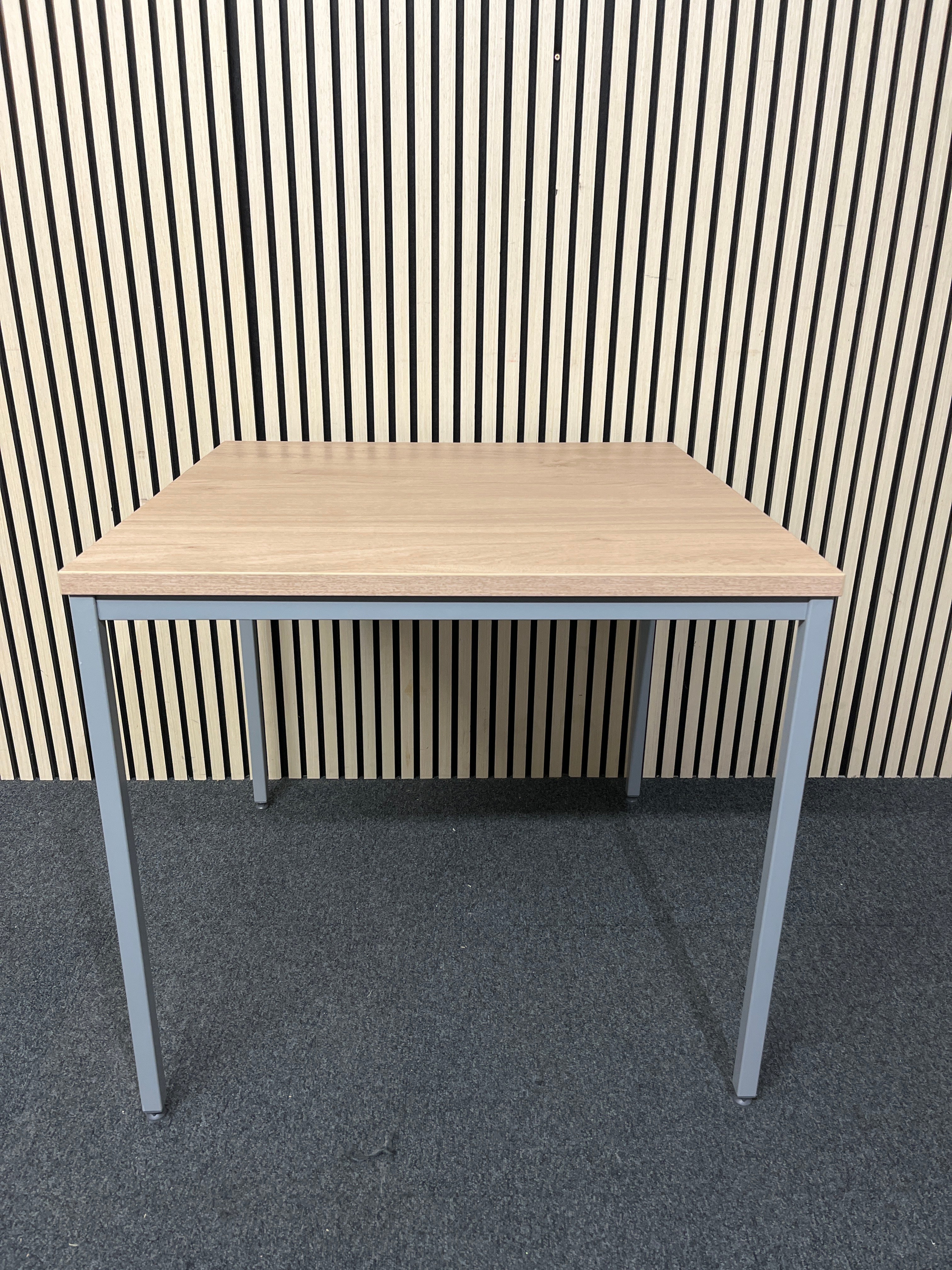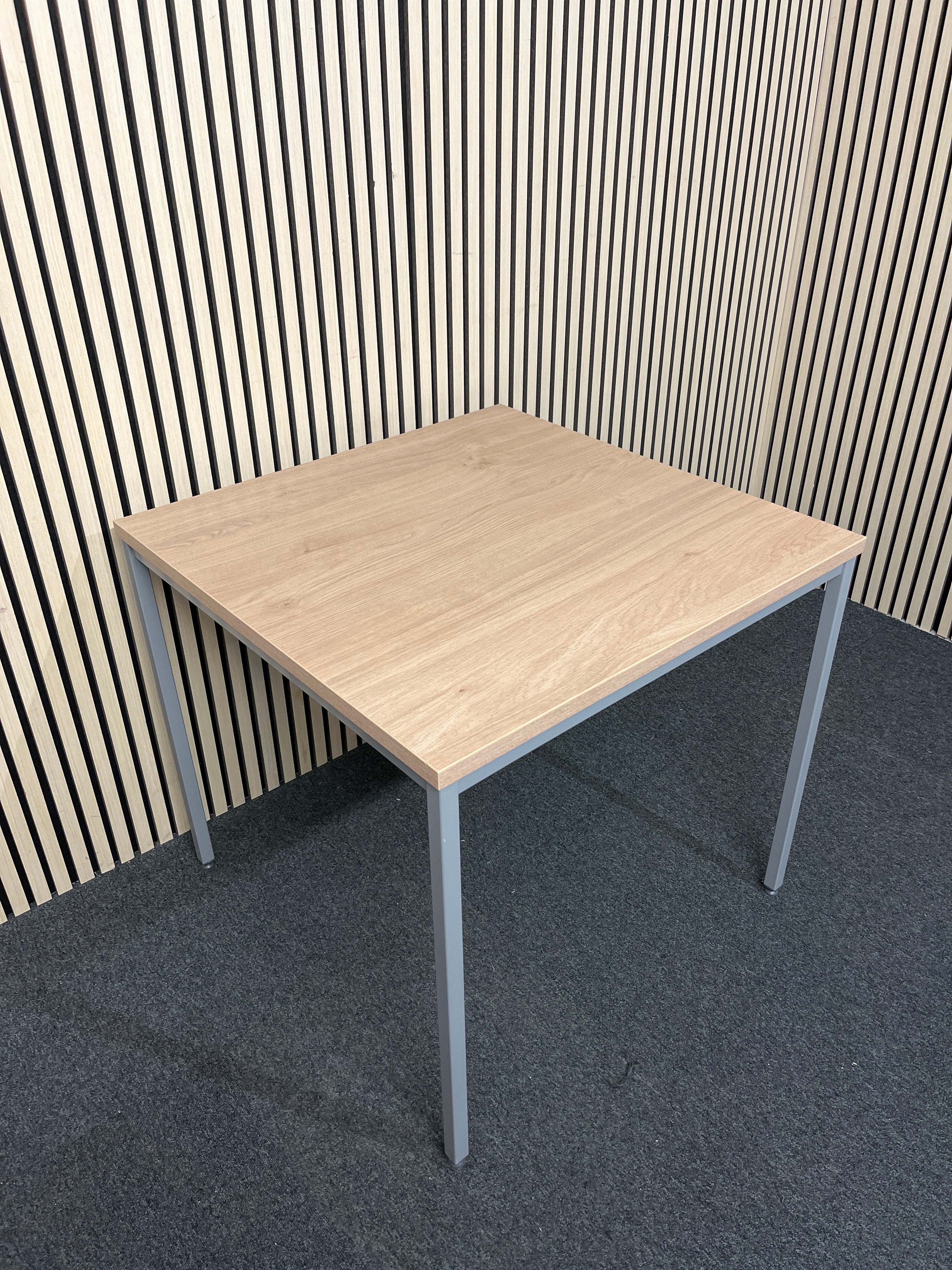 NEW light oak 25mm top 800x800 canteen table with silver metal framed legs. 12 no. in stock. Price inc VAT
