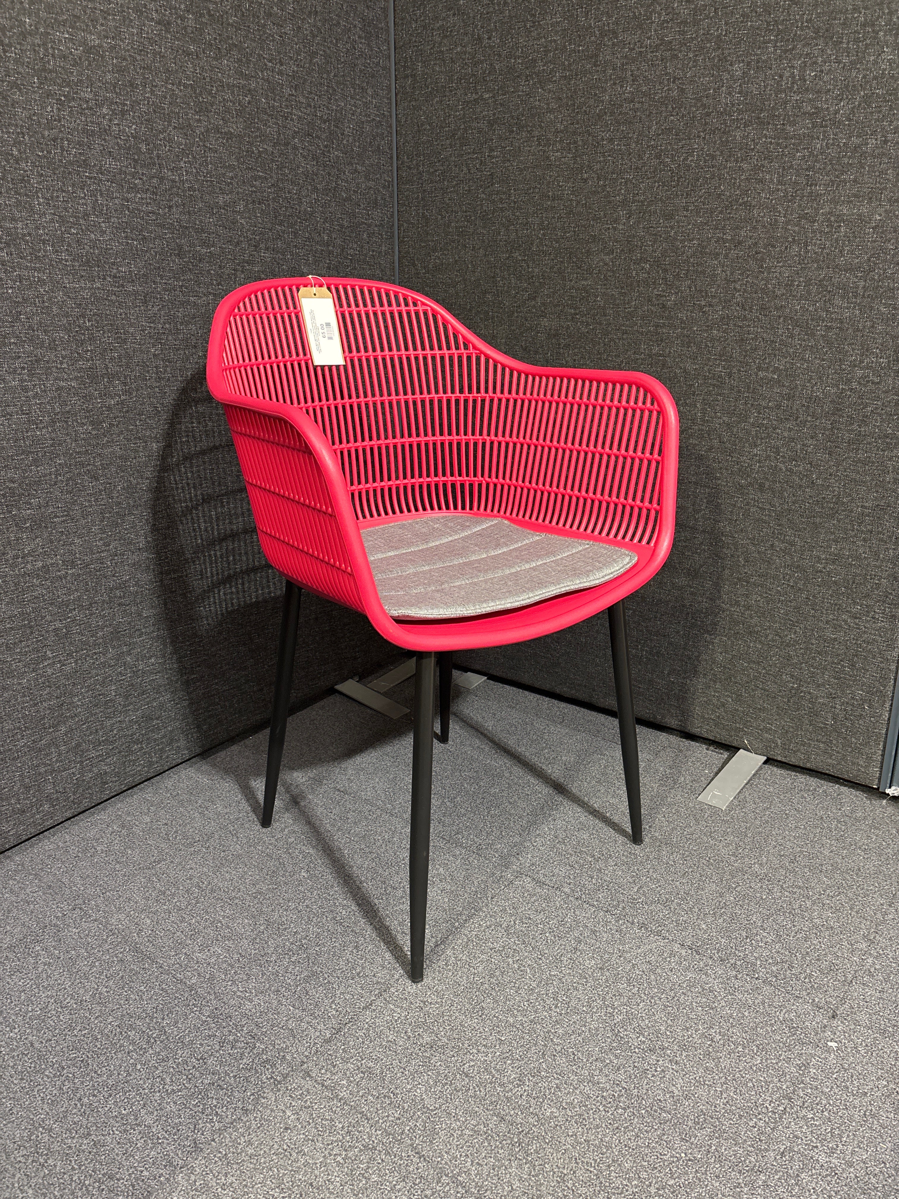 NEW Metro INDOOR OR OUTDOOR dining chair, RASPBERRY RED moulded plastic with tailored fabric seat. OTHER COLOURS AVAILABLE. LARGE QTYS AVAILABLE