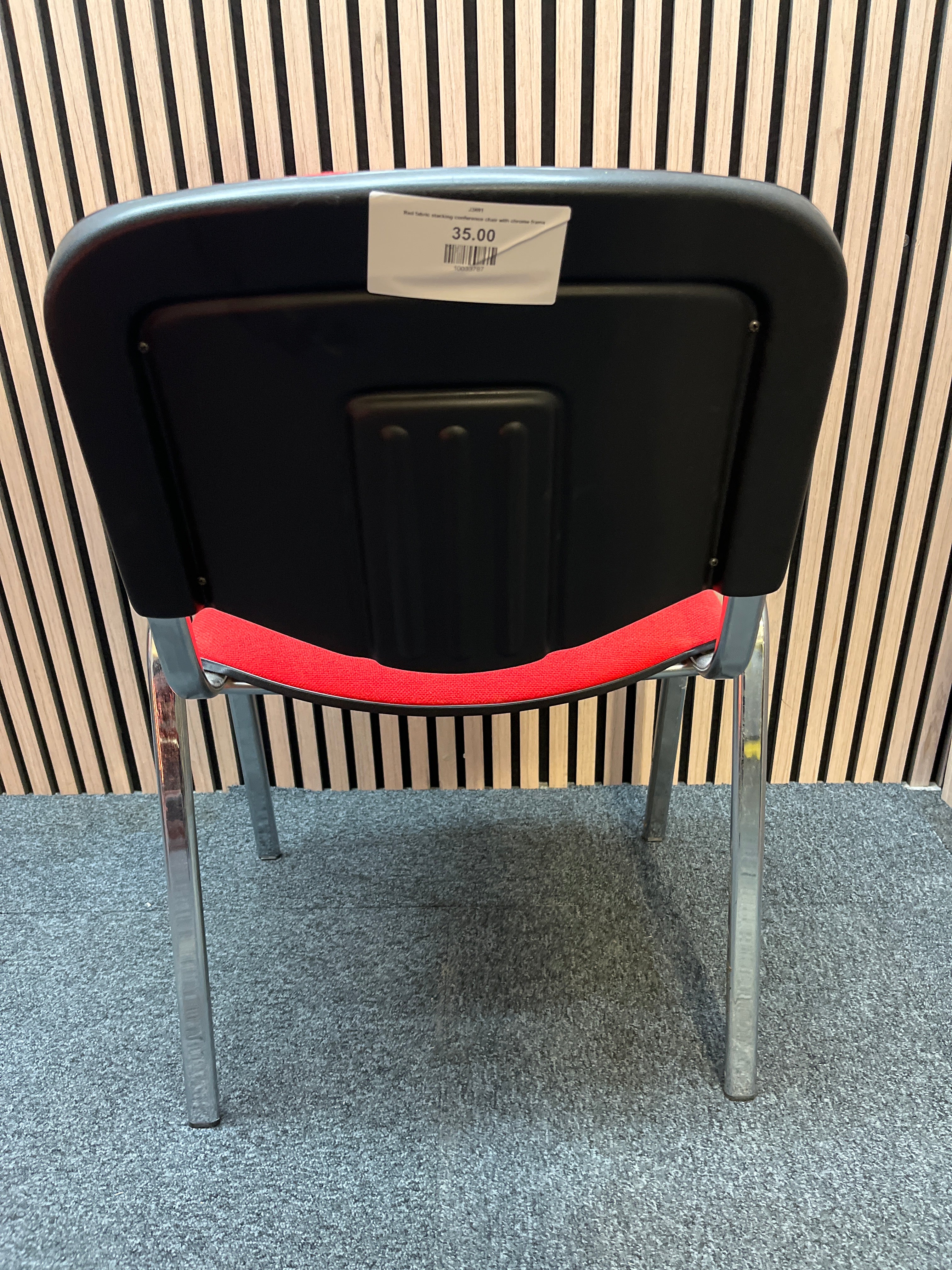 - Share: Red fabric stacking conference chair with chrome frame