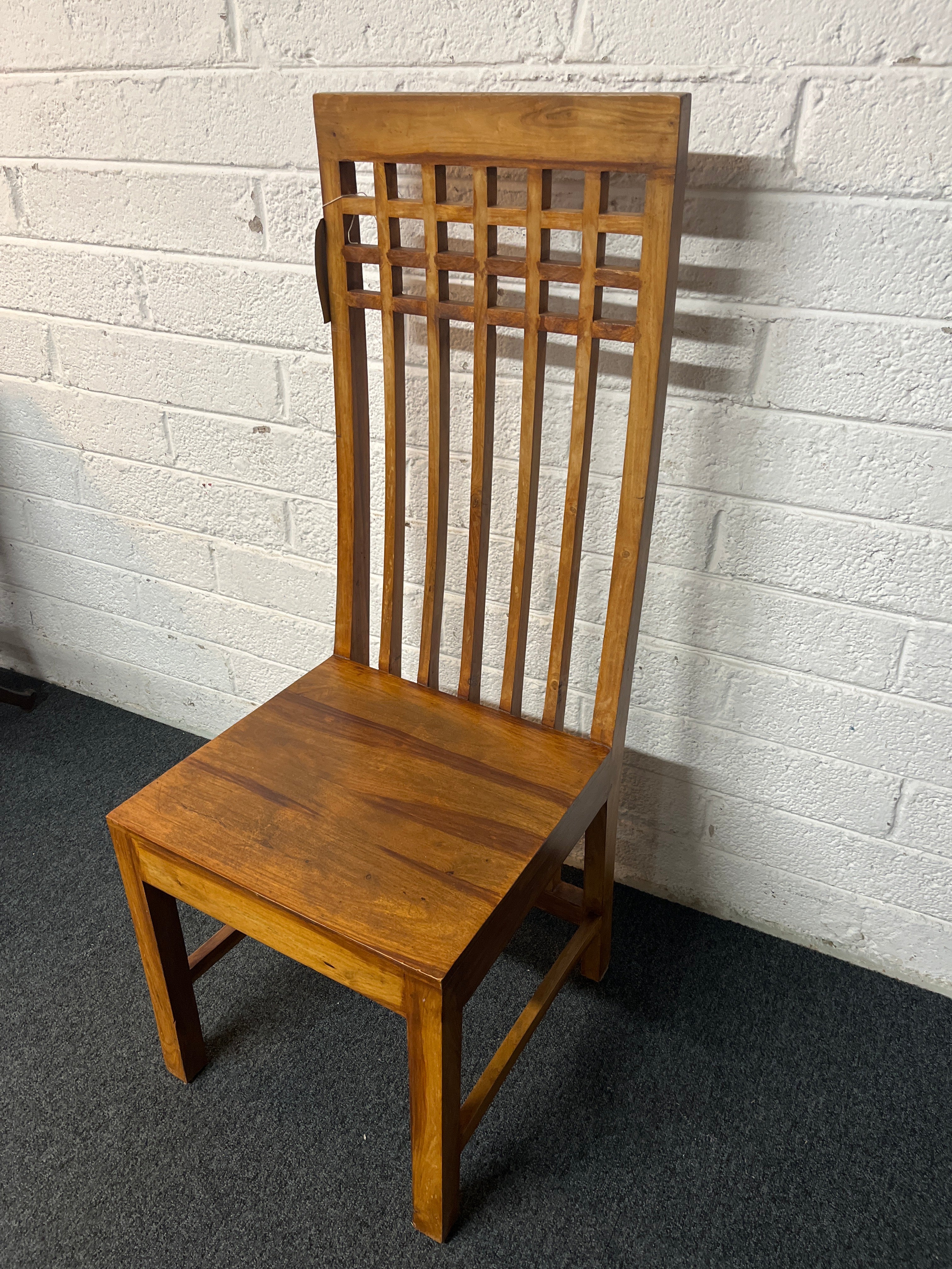 Solid dark teak wood stained high lattice back dining chair with wooden seat 2225