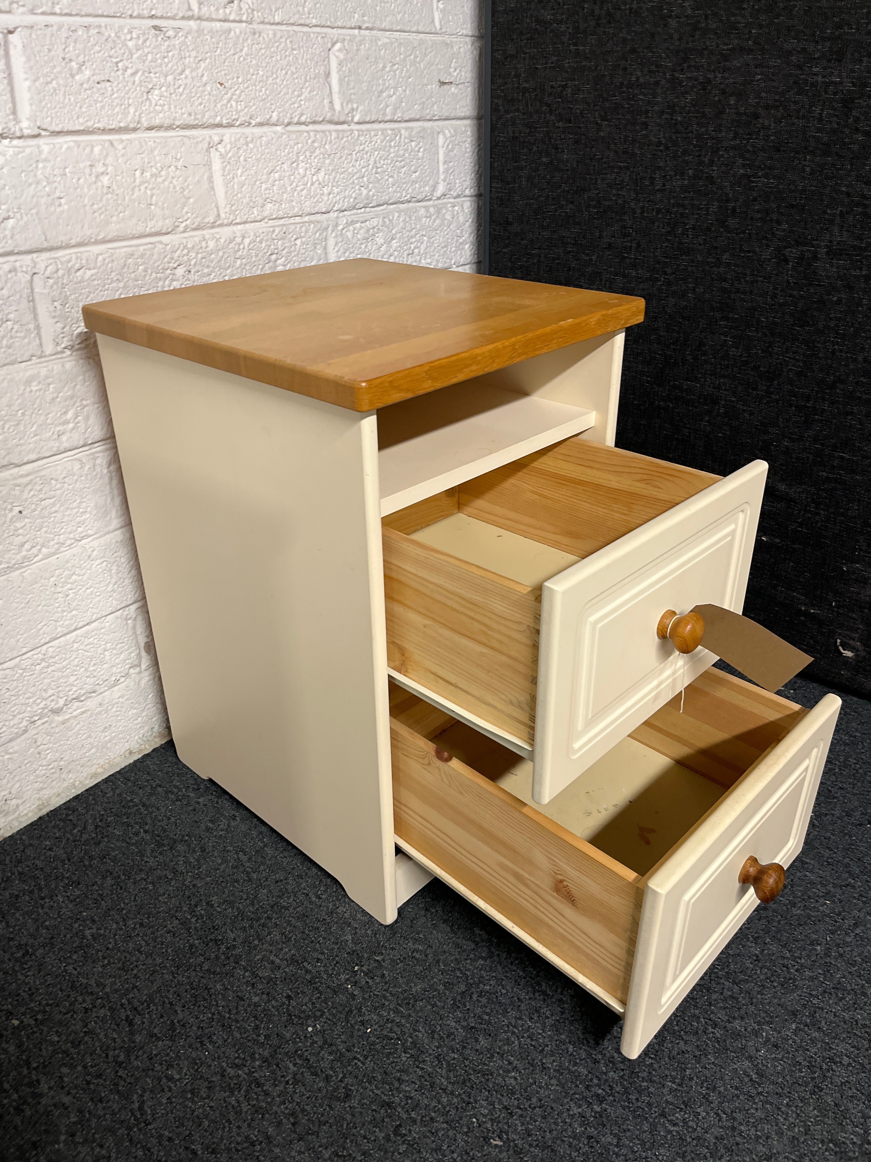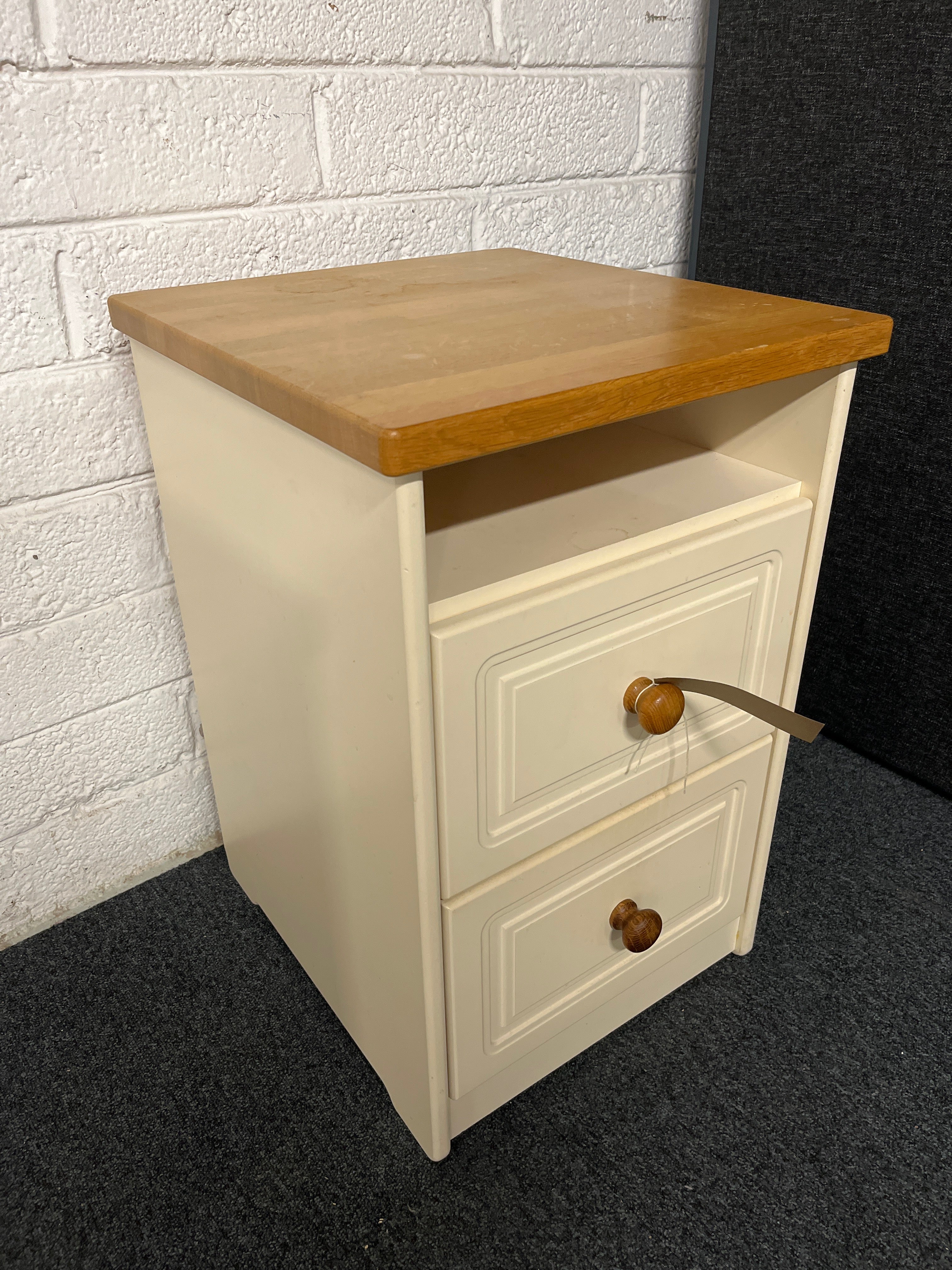 - Share: Solid oak and cream 2 drawer bedside locker 1225