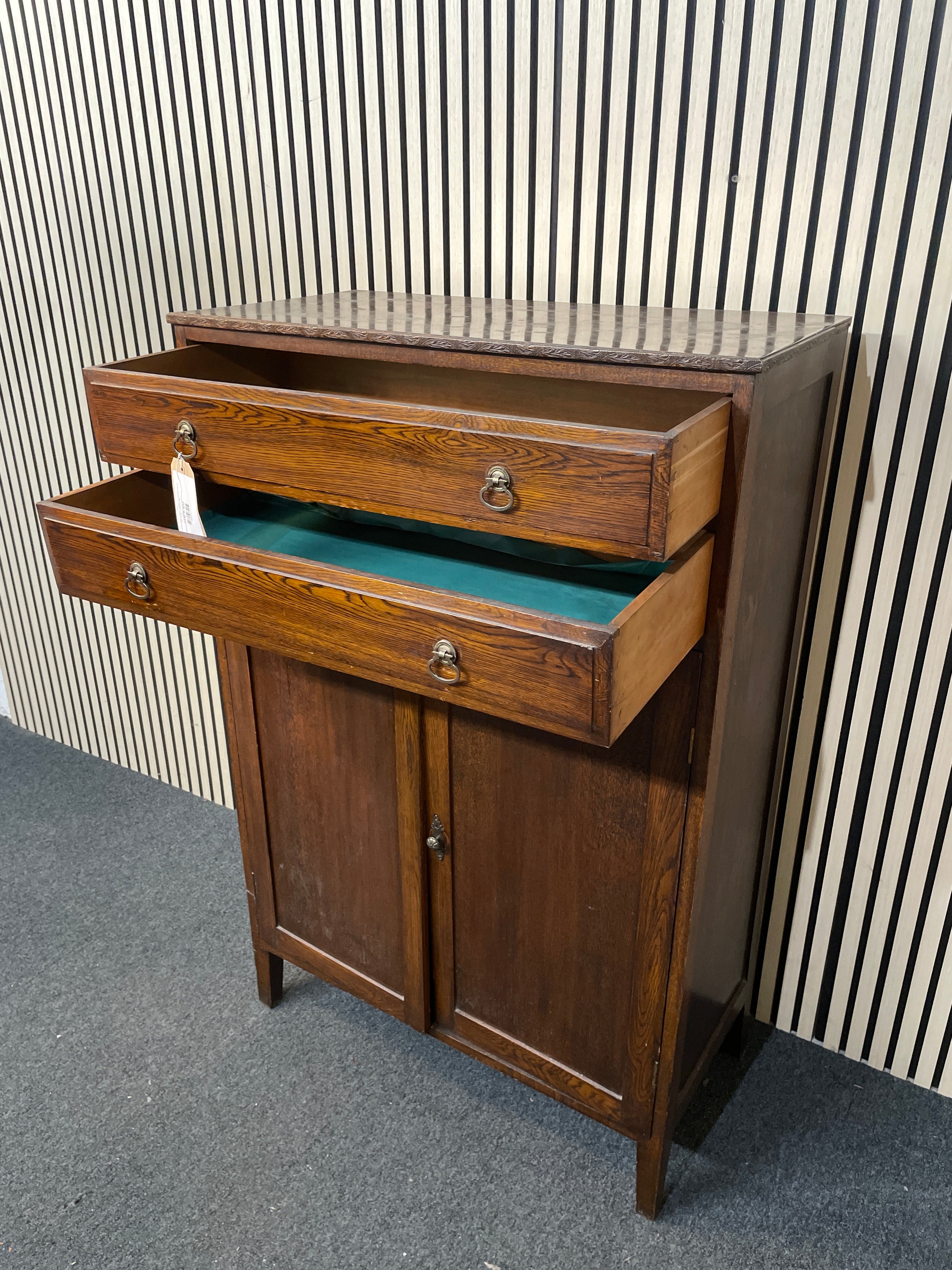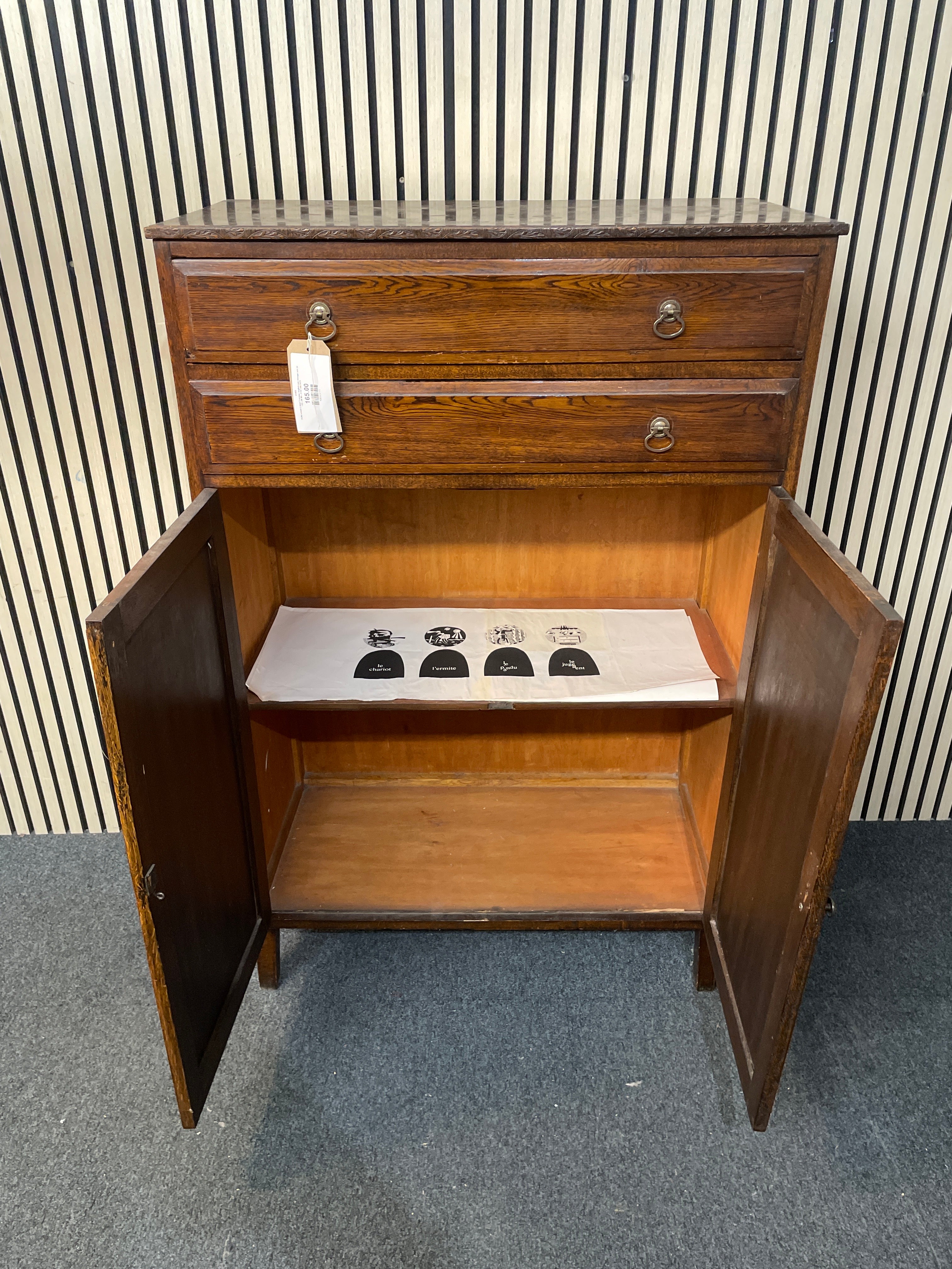 Solid ornate 2 door 2 drawer english oak storage unit (H 132 x W 86 x D 42 cm) 2425
