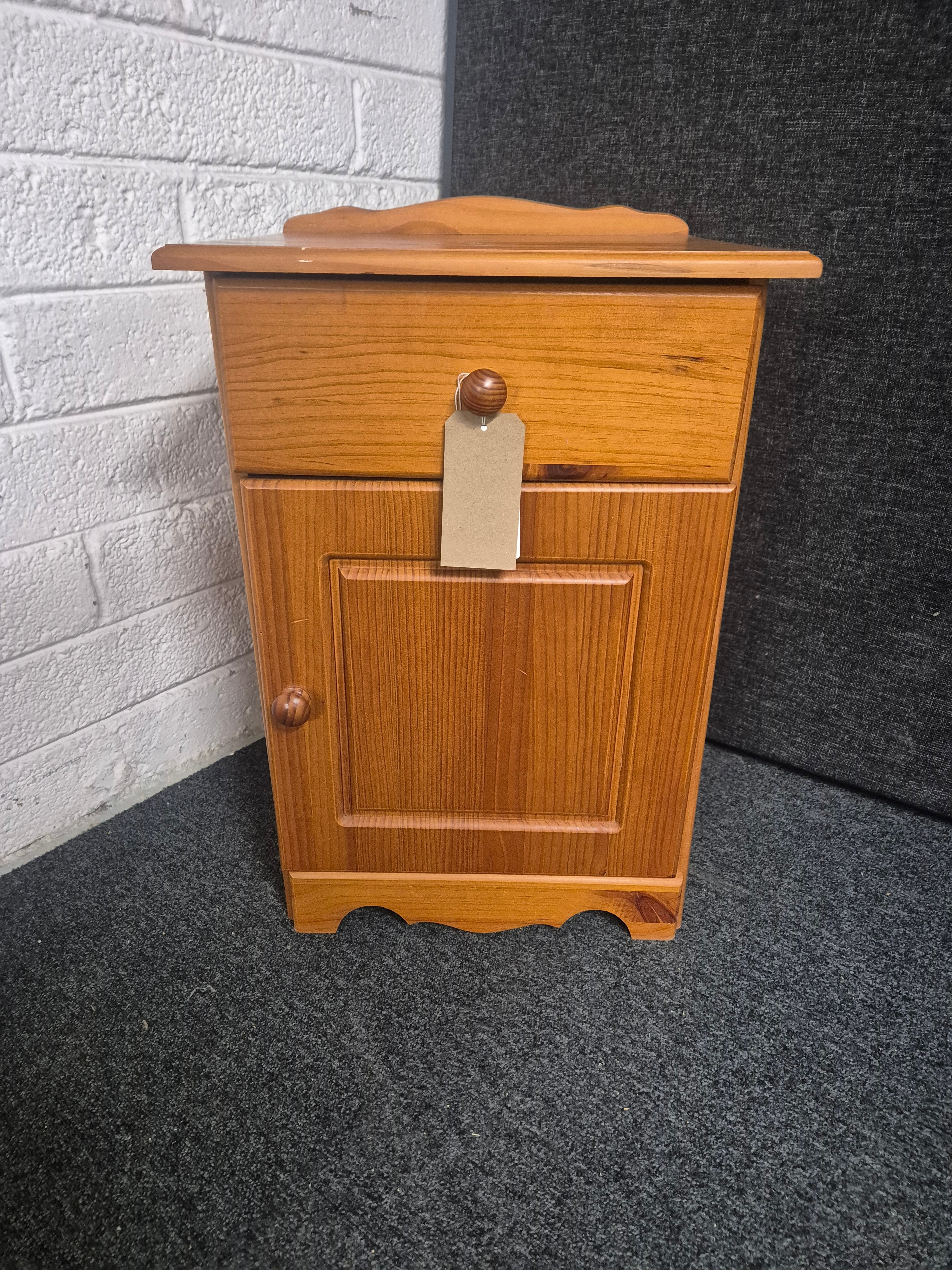 Solid pine 1 door 1 drawer bedside locker