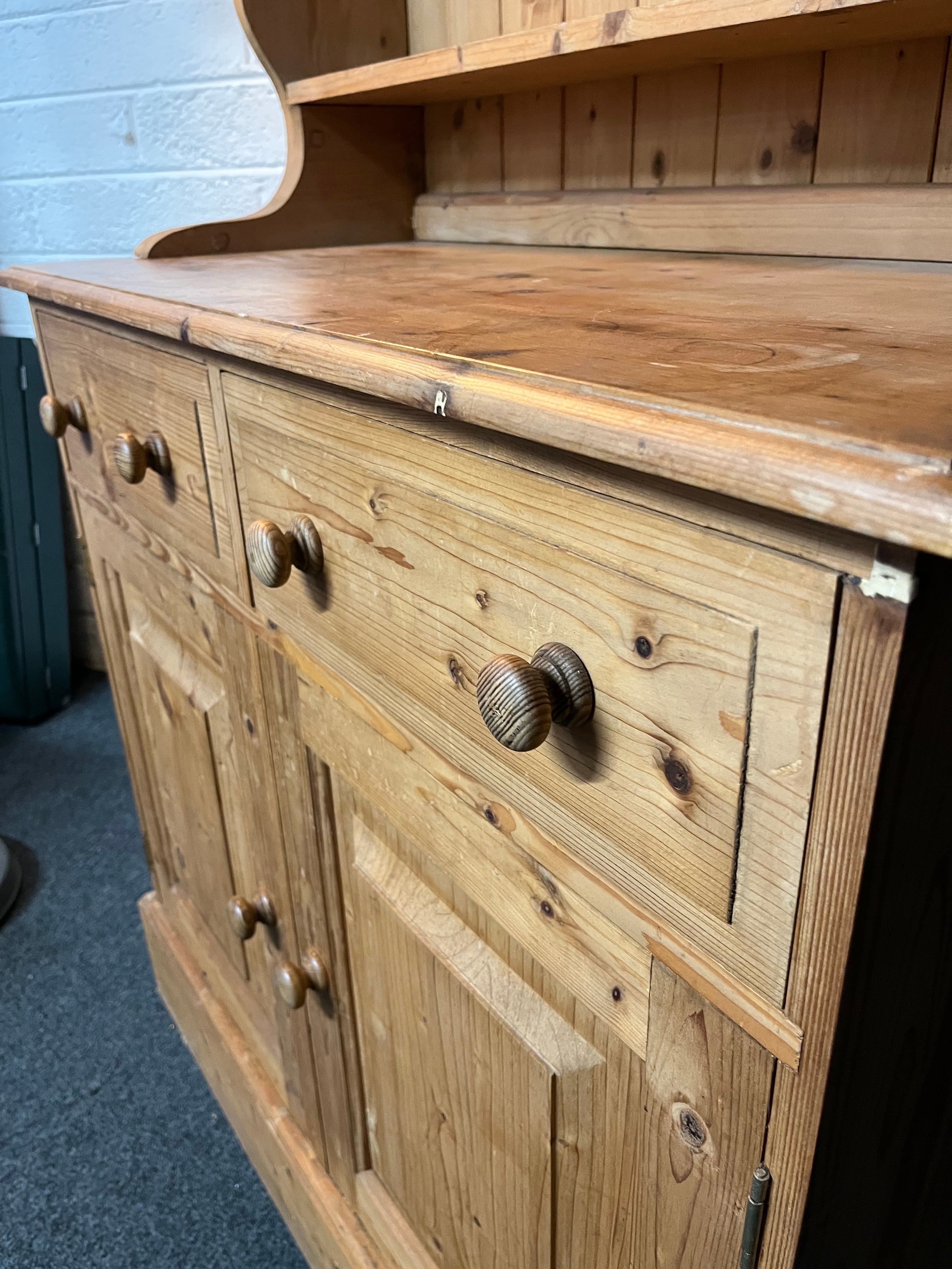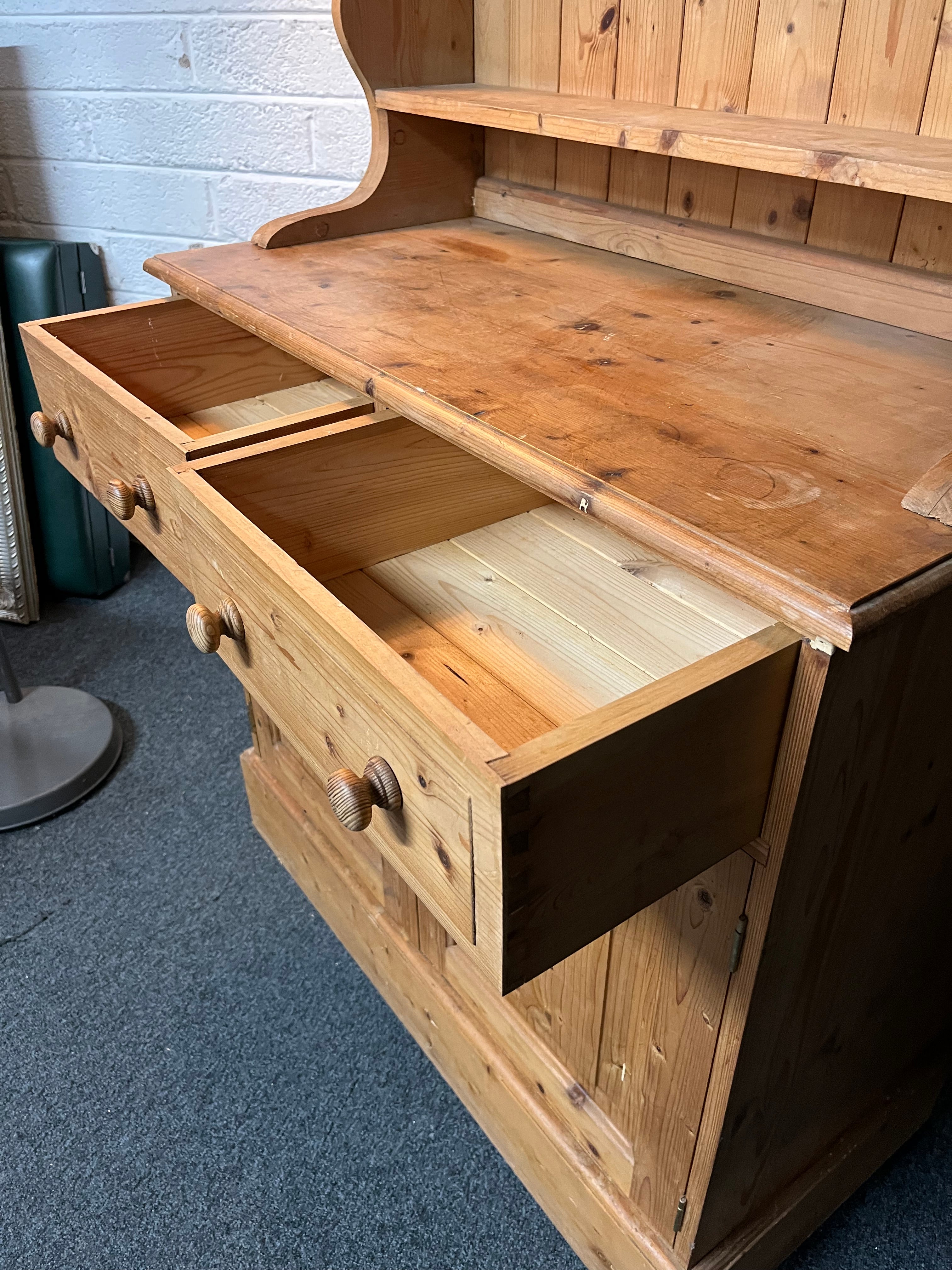 - Share: Solid pitch pine kitchen dresser (H 198 x W 91 x D 43 cm) 2225