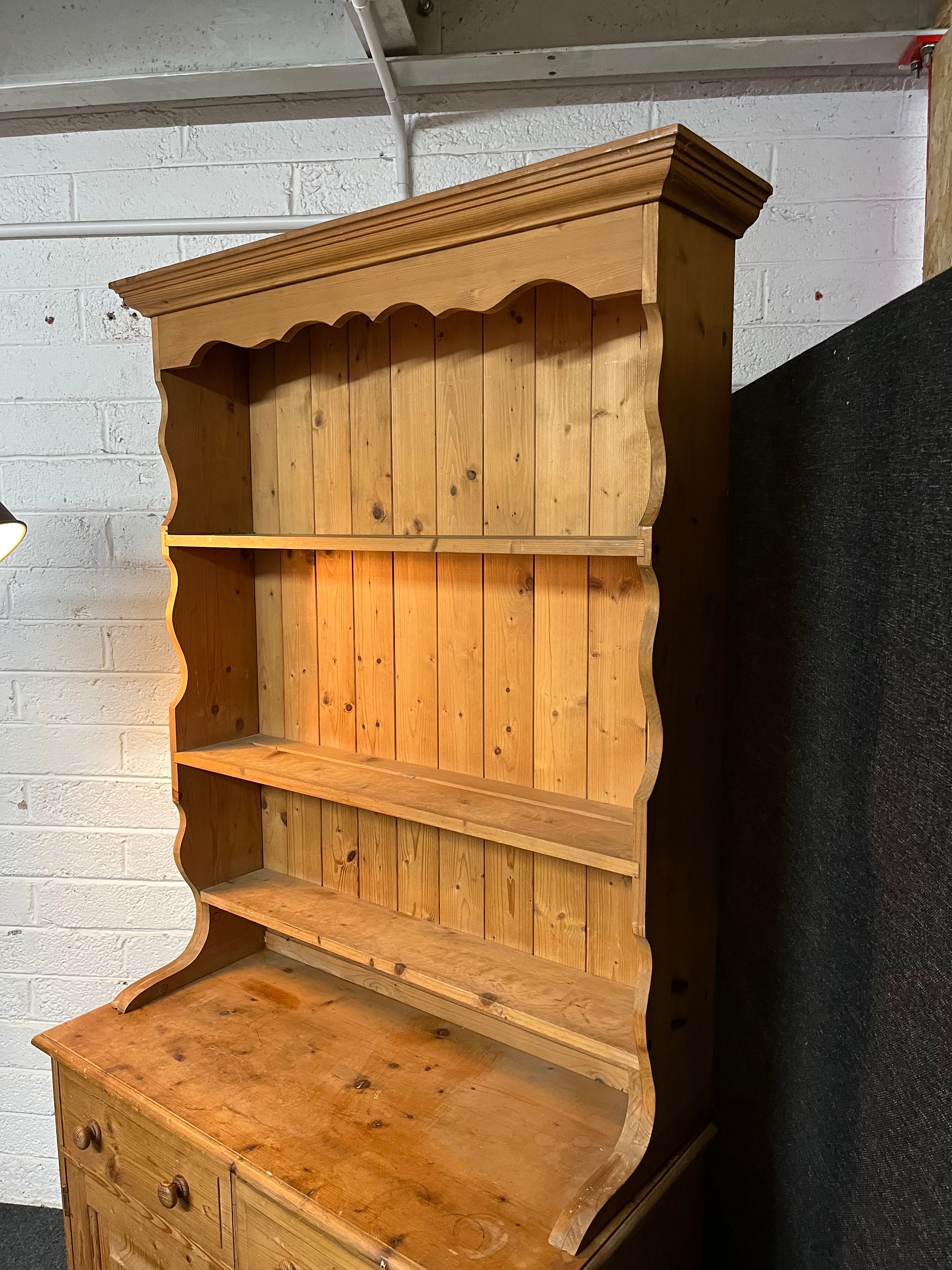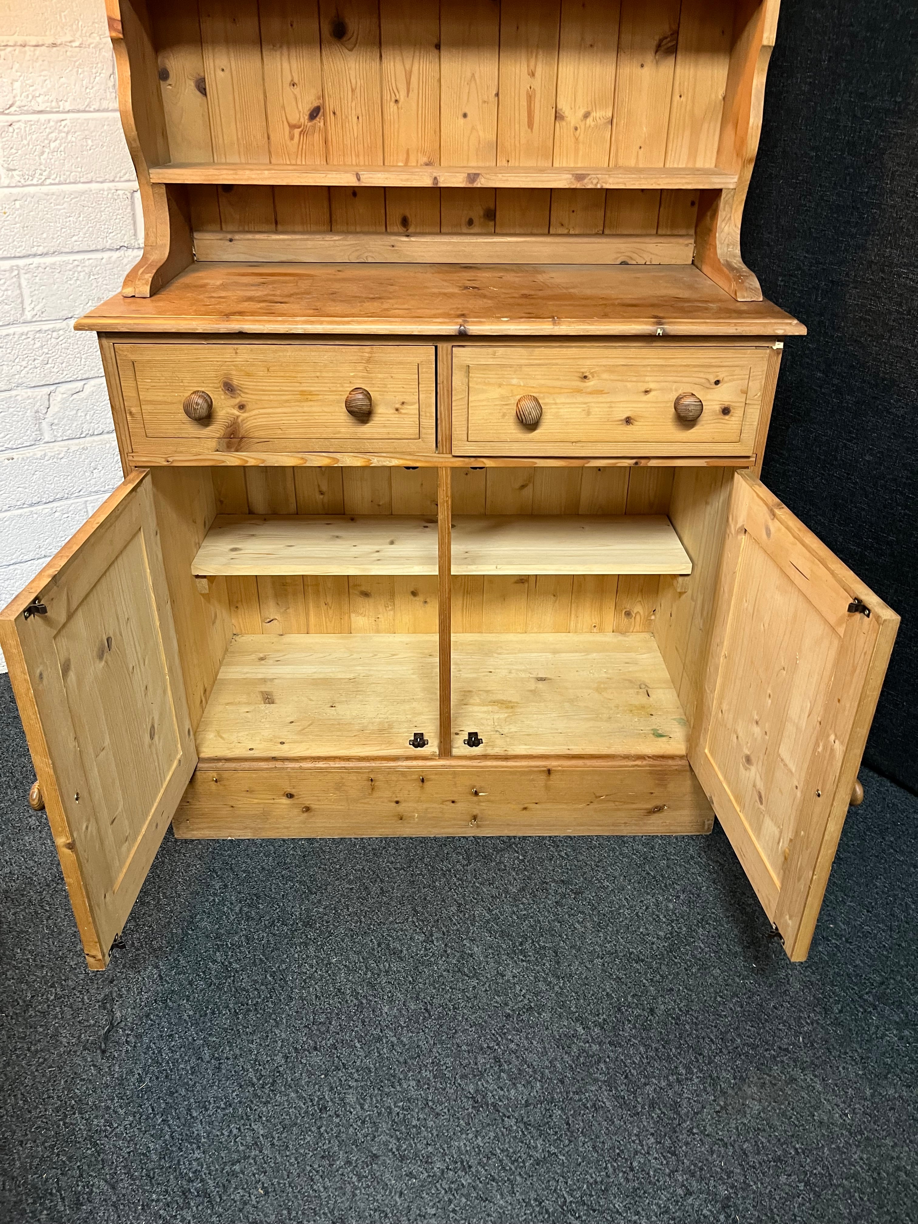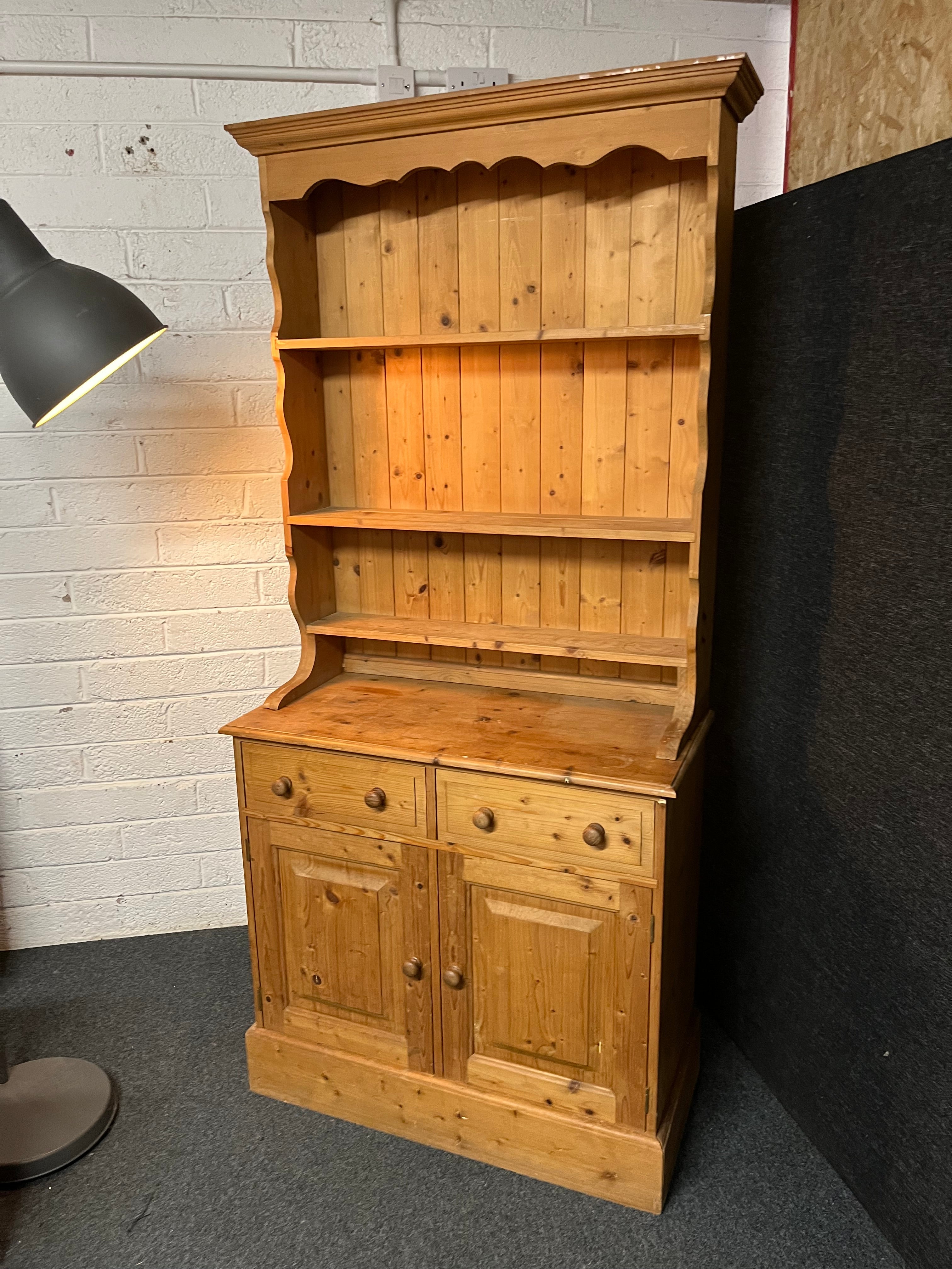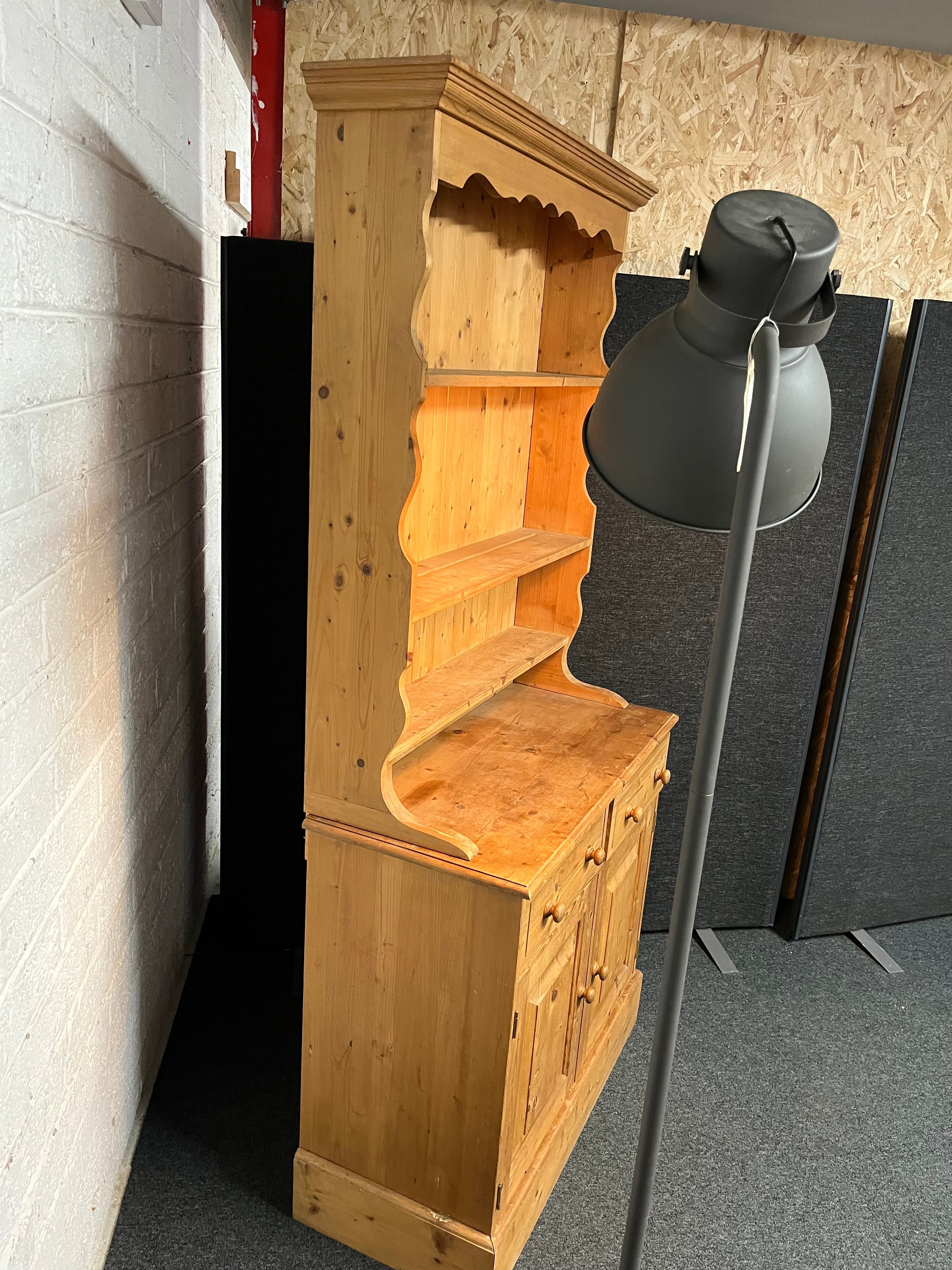 Solid pitch pine kitchen dresser (H 198 x W 91 x D 43 cm)