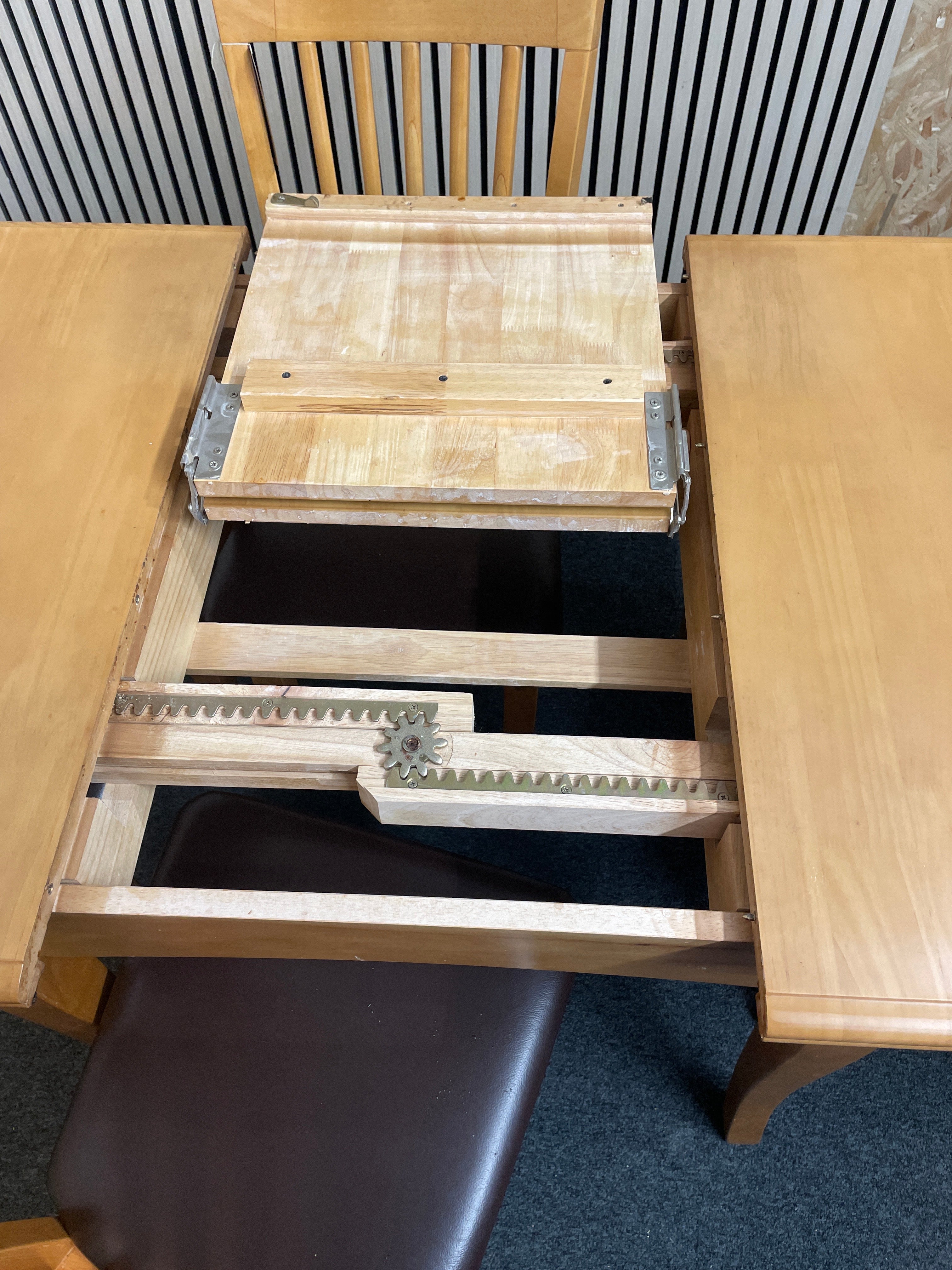 - Share: Solid wood extendable square kitchen table with 4 no. high slatted back, leather seat dining chair (H 73 x W 90, 120 x D 80 cm) 2425