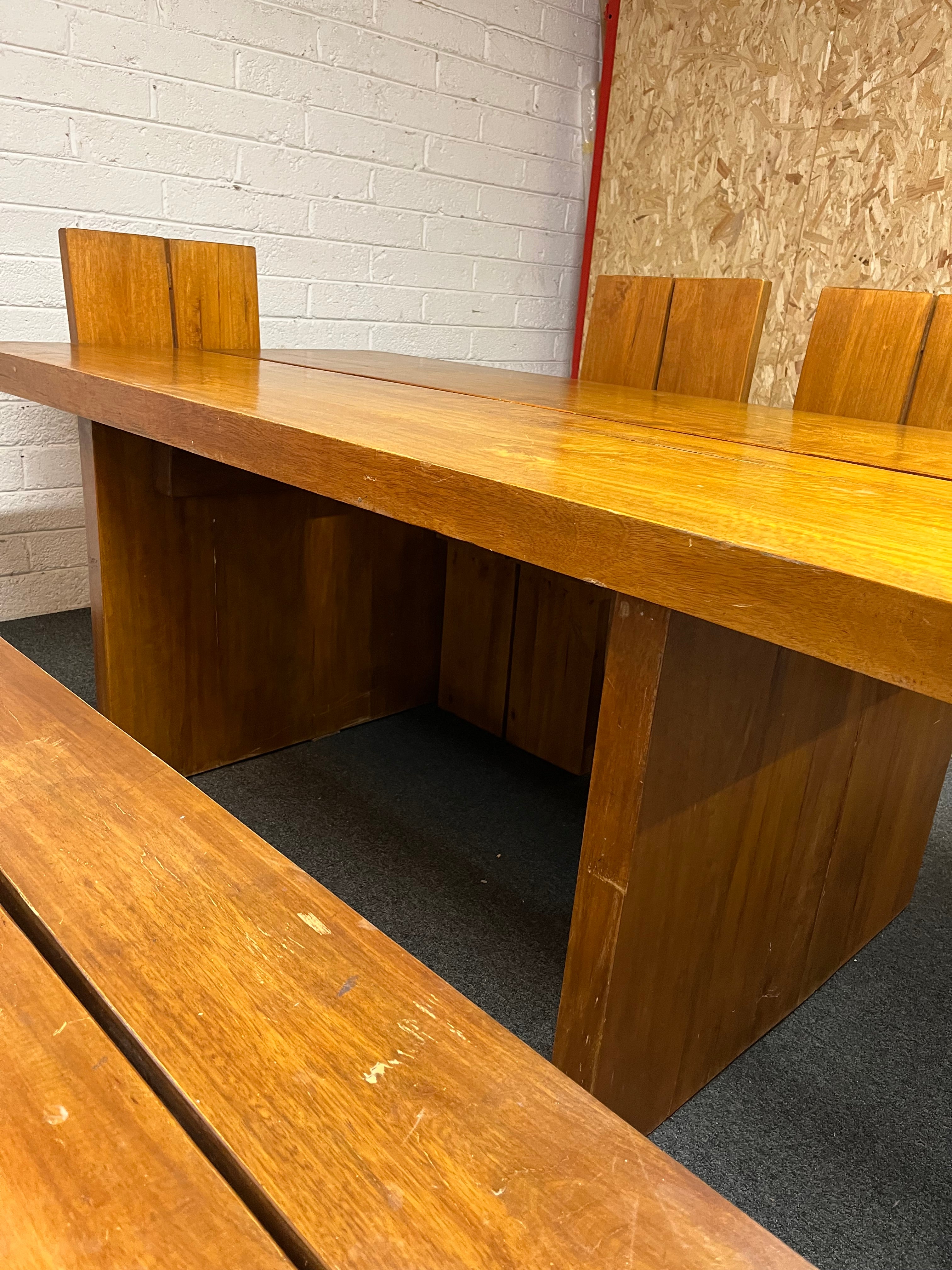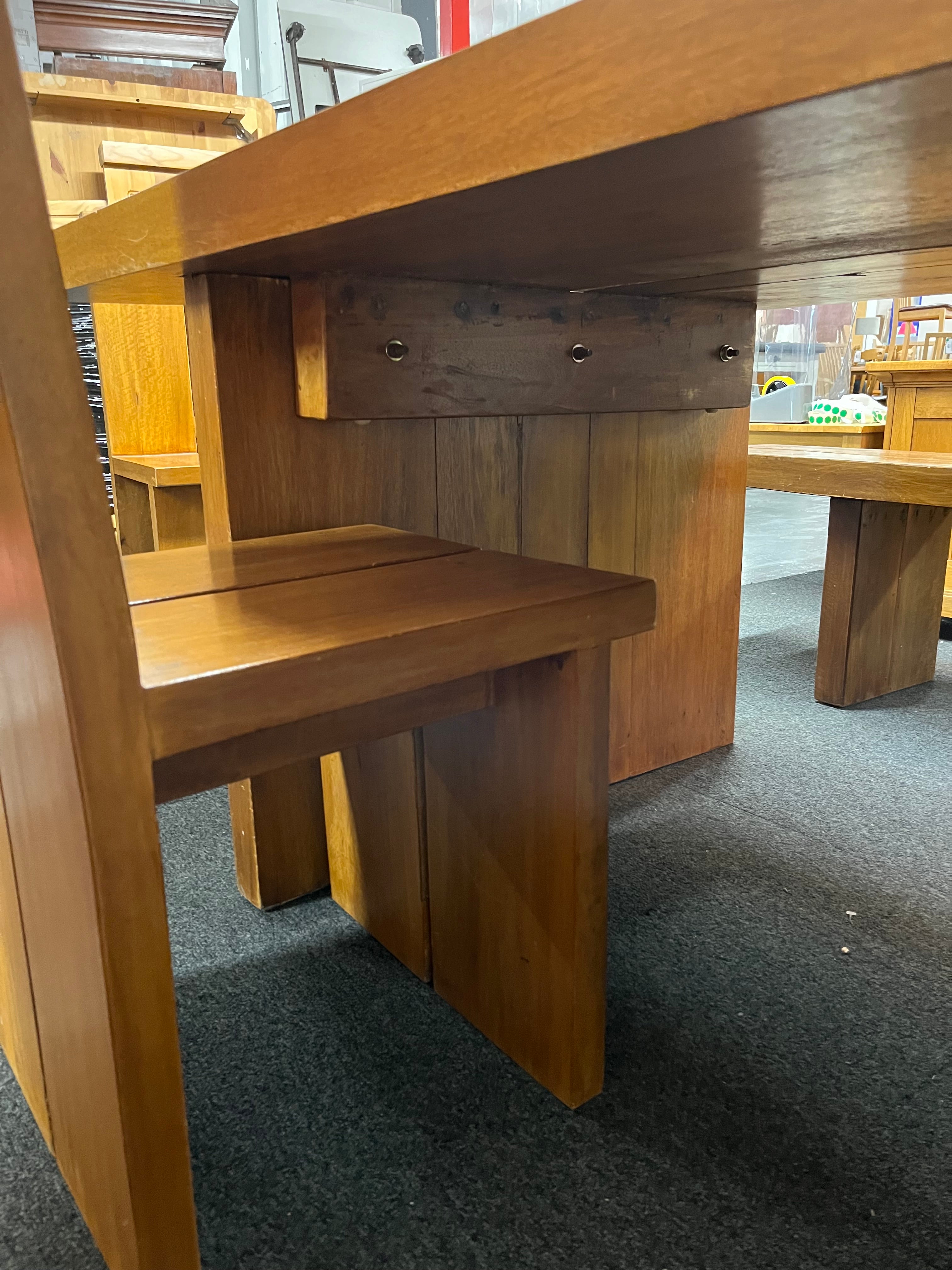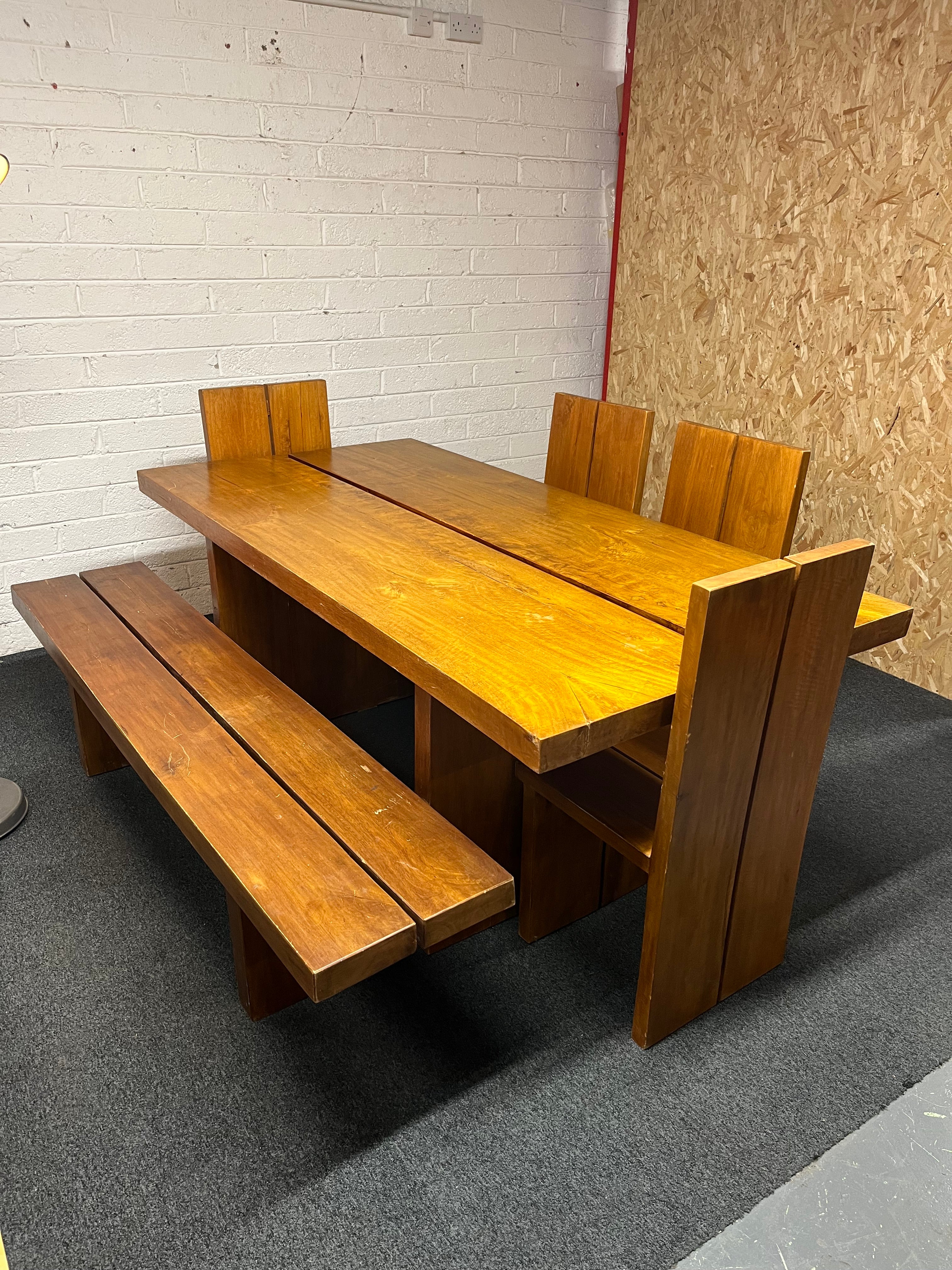 Solid wood large rectangular dining table (L 200 x W 101 cm) with 4 no.matching solid wood chairs and bench 1325