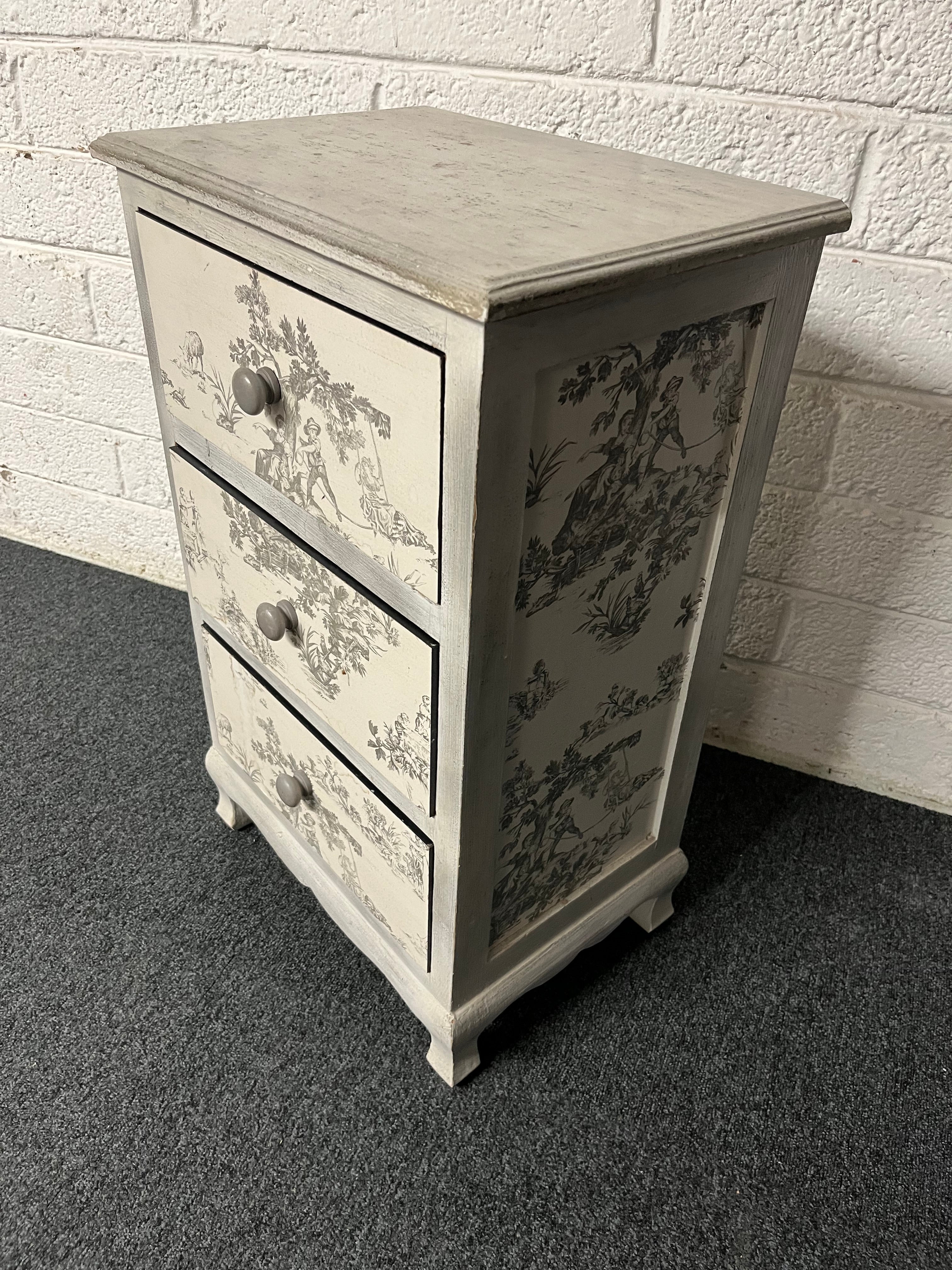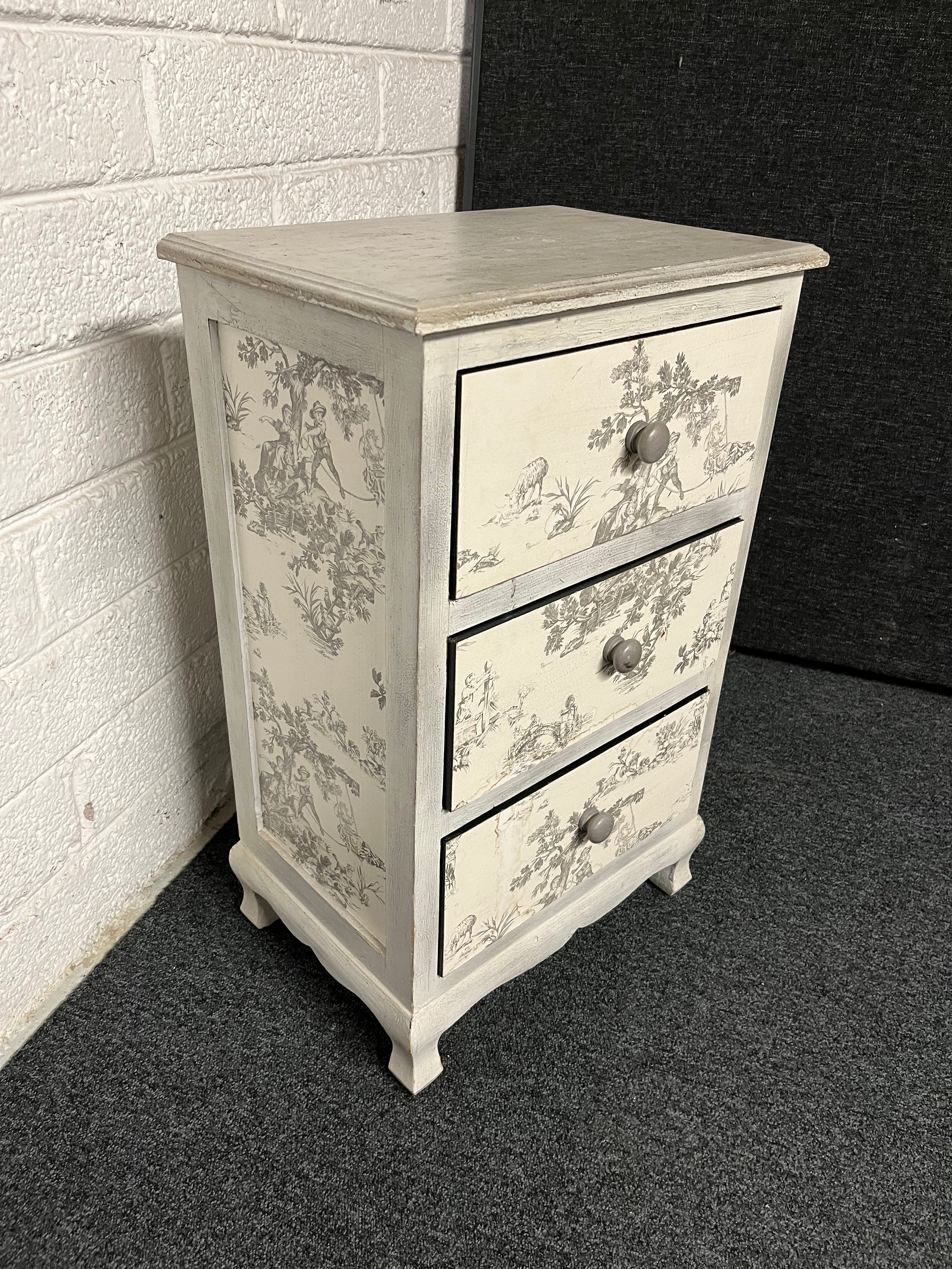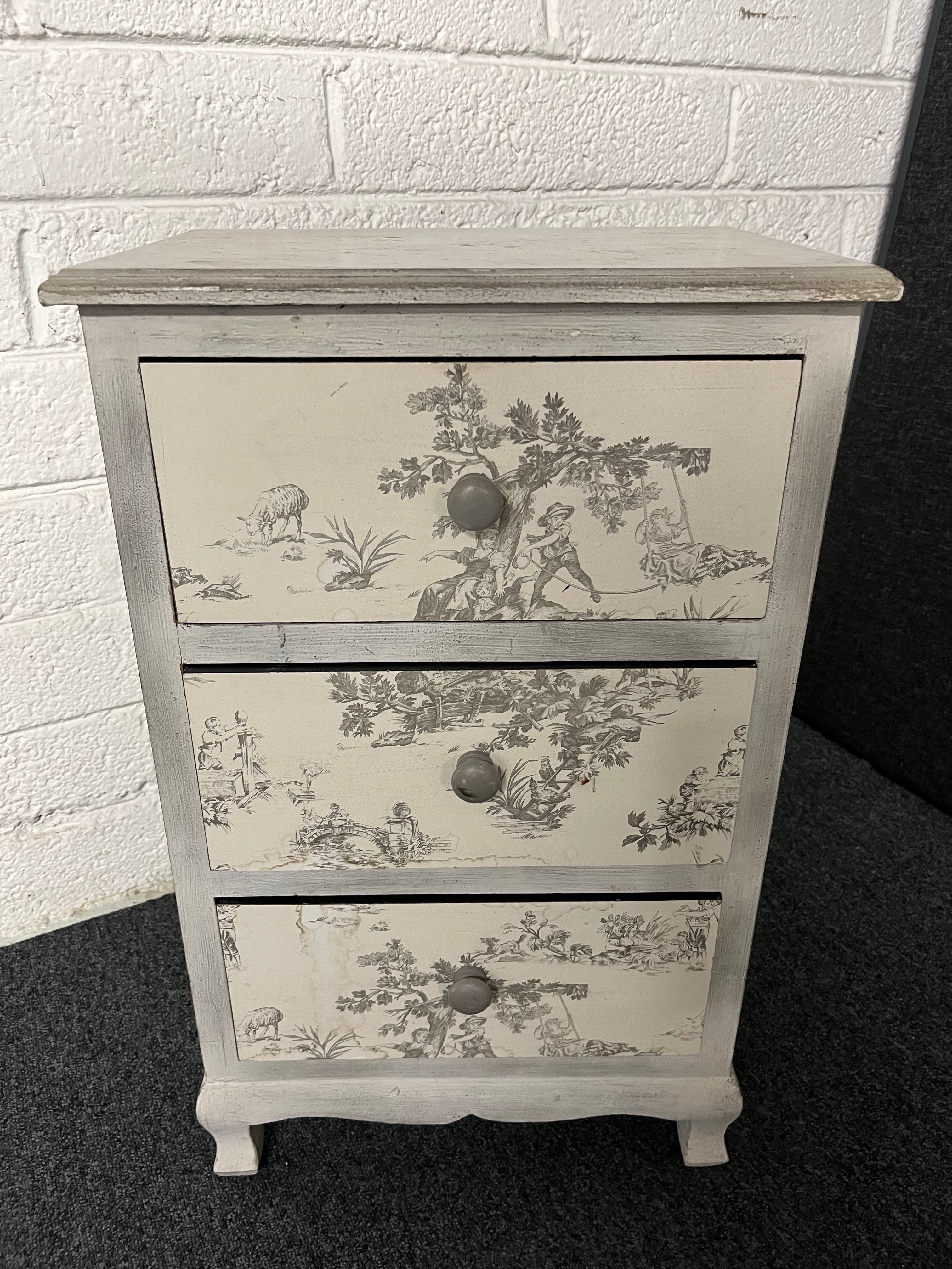 Solid wood silver painted with floral decal 3 drawer bedside locker 1225