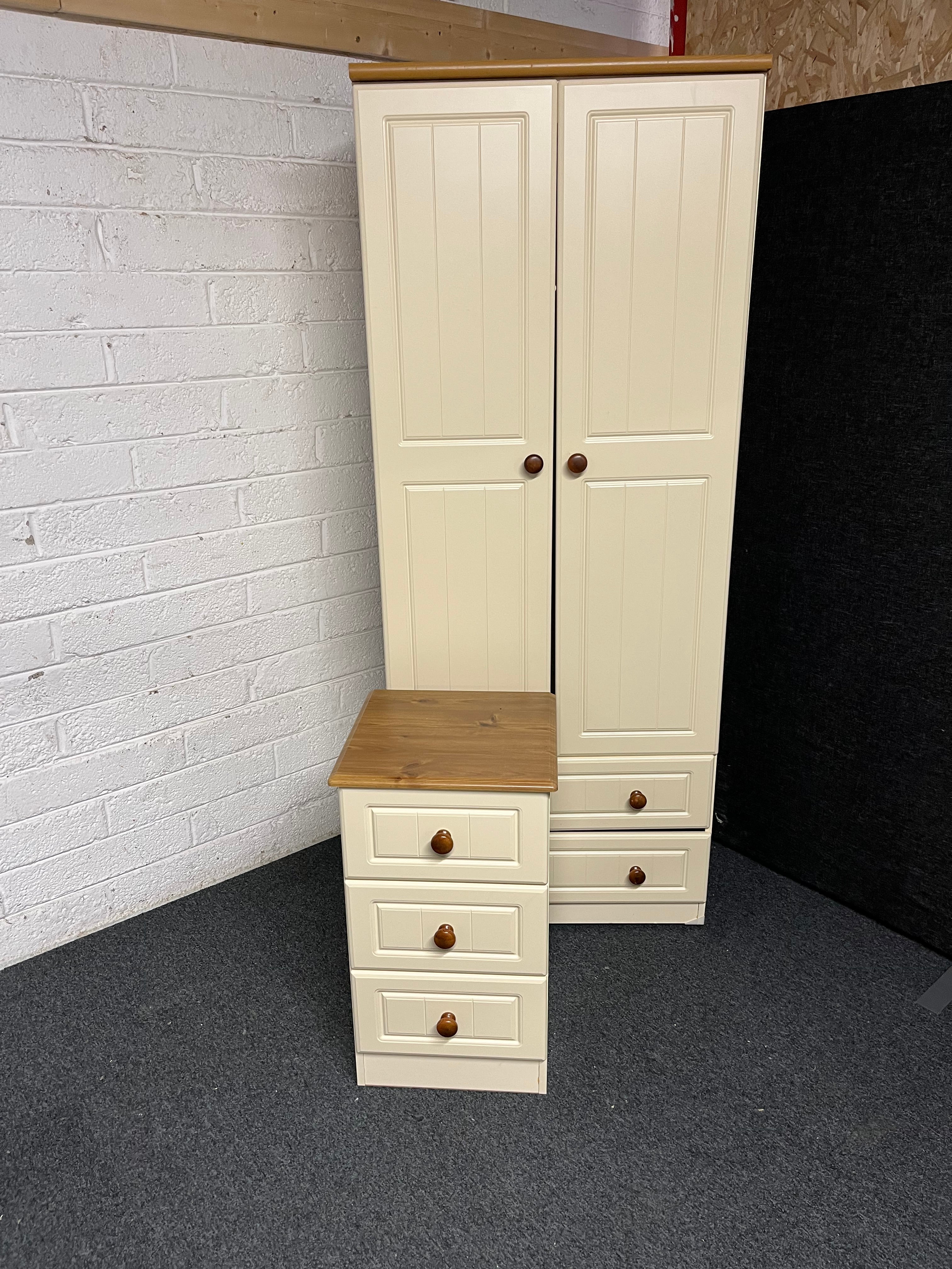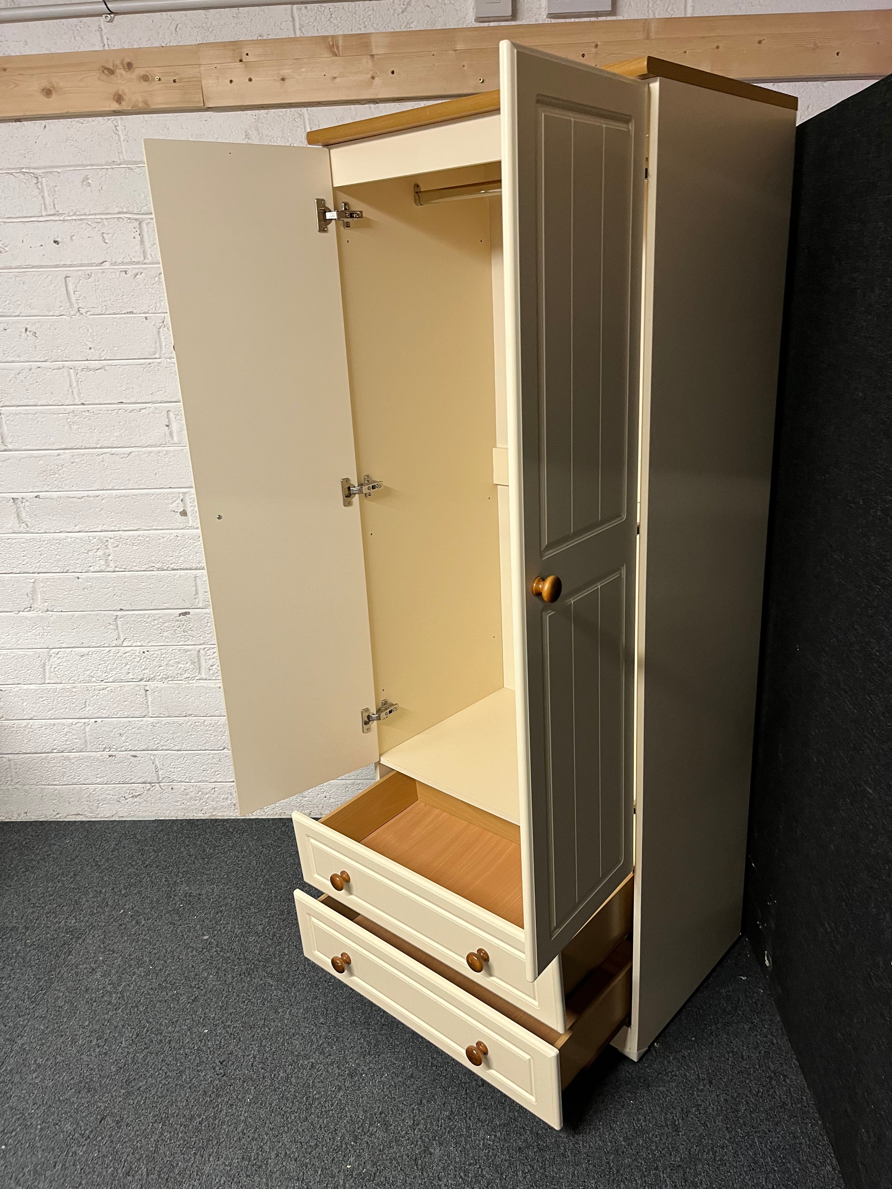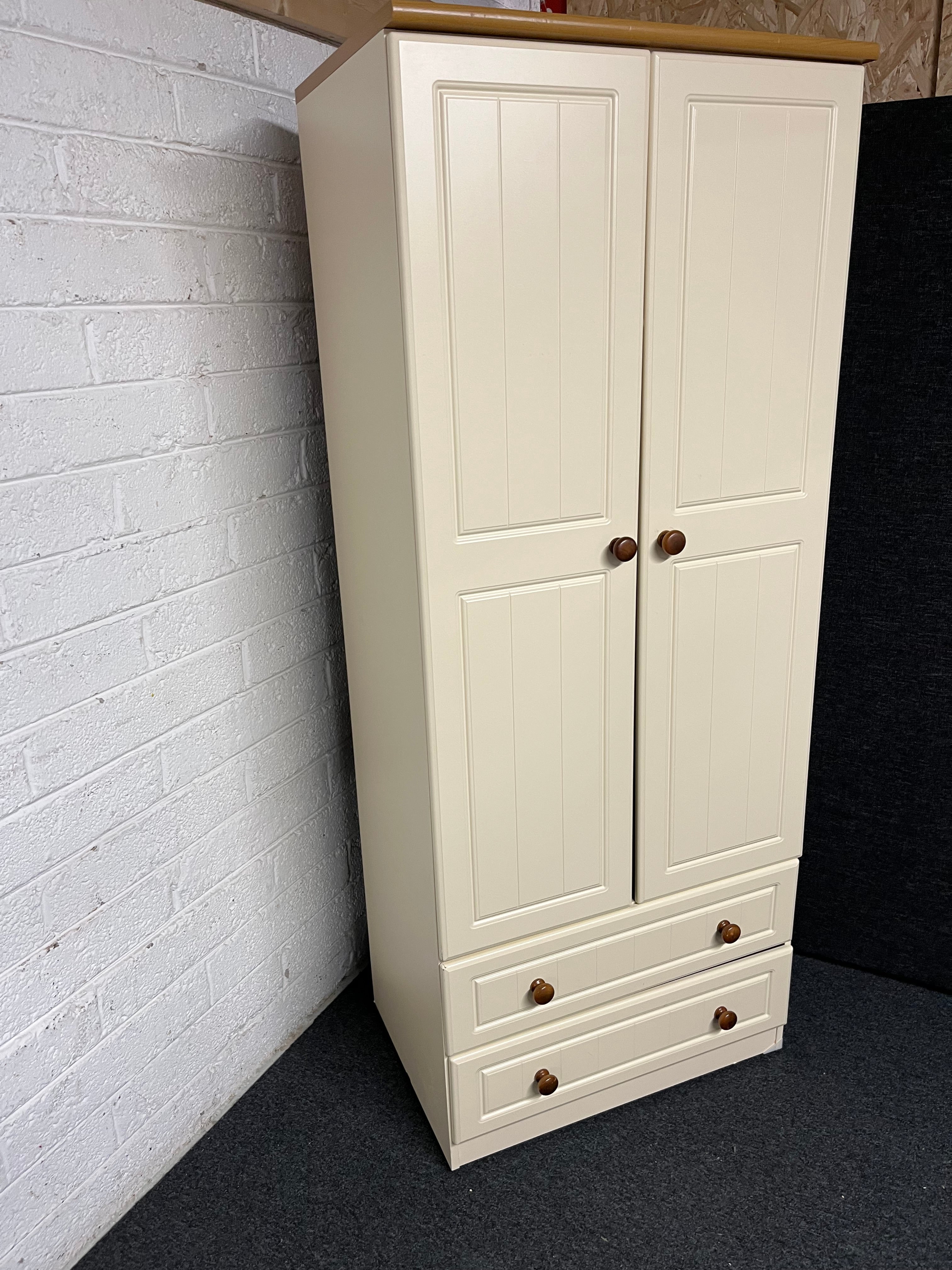 Tall cream and oak laminate 2 door 2 drawer wardrobe (H 1850 x W 740 x D 530 mm) 1225