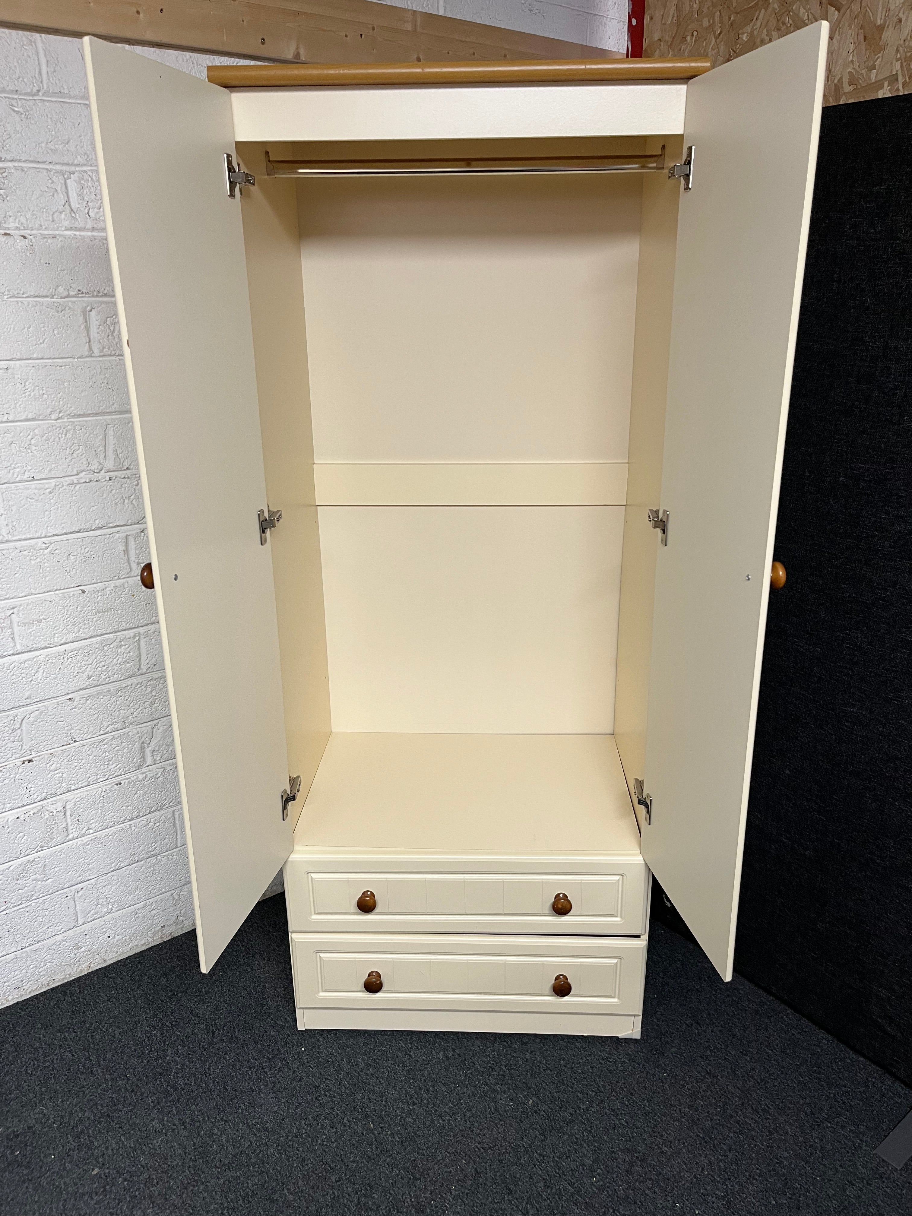 - Share: Tall cream and oak laminate 2 door 2 drawer wardrobe (H 1850 x W 740 x D 530 mm) 1225