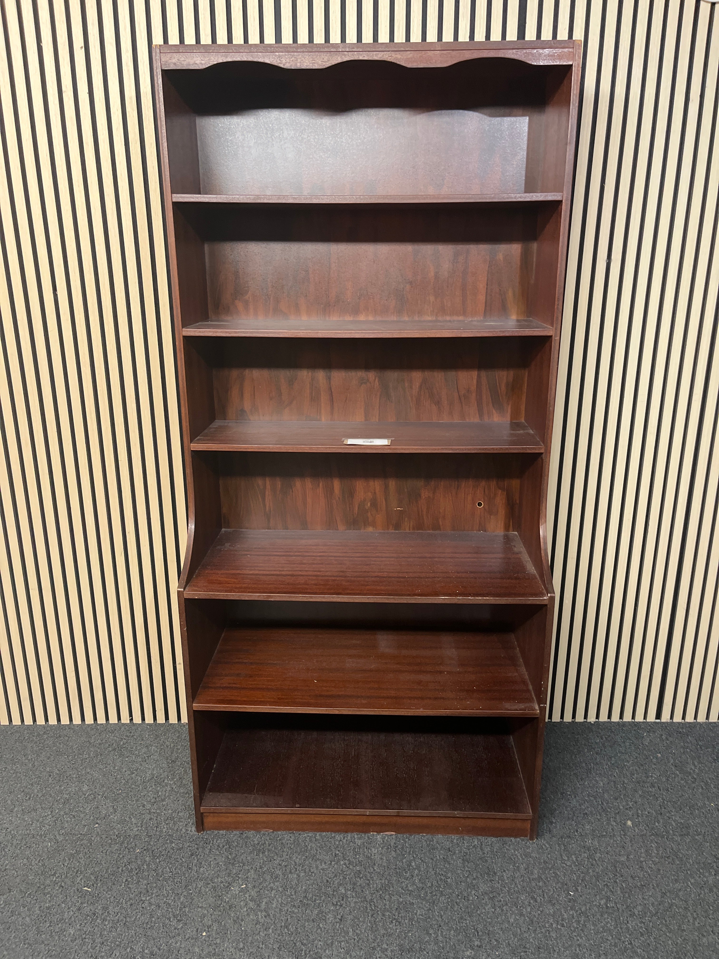 Tall dark wood stained open bookcase (H 194 x W 92 x D 50 cm)