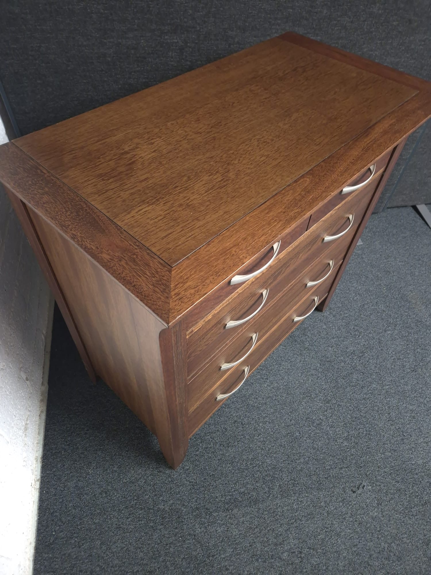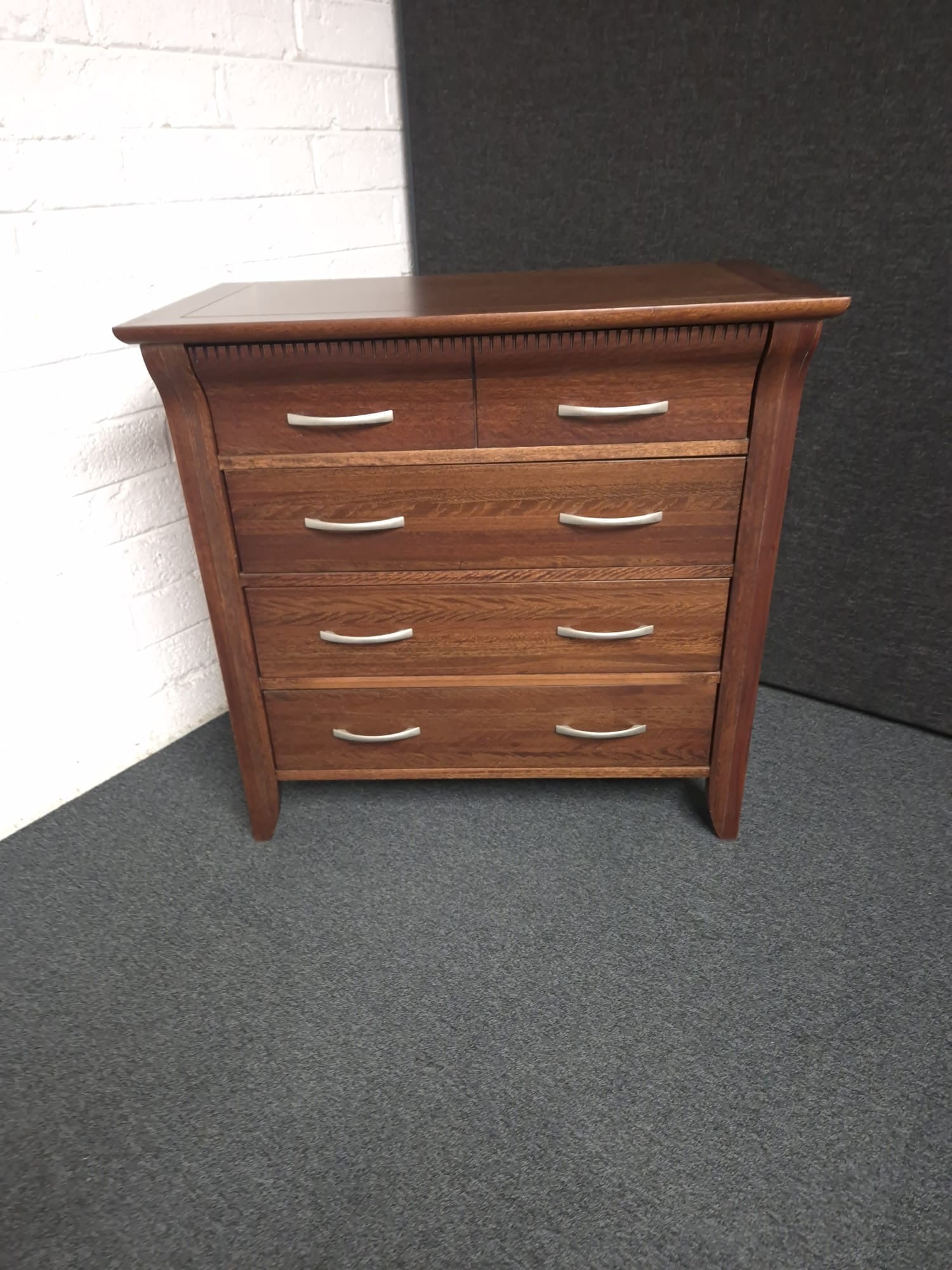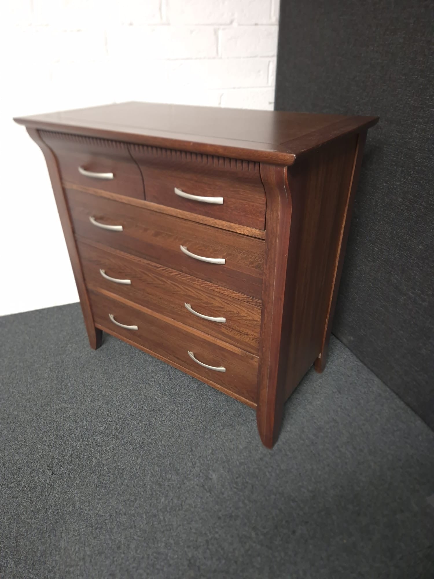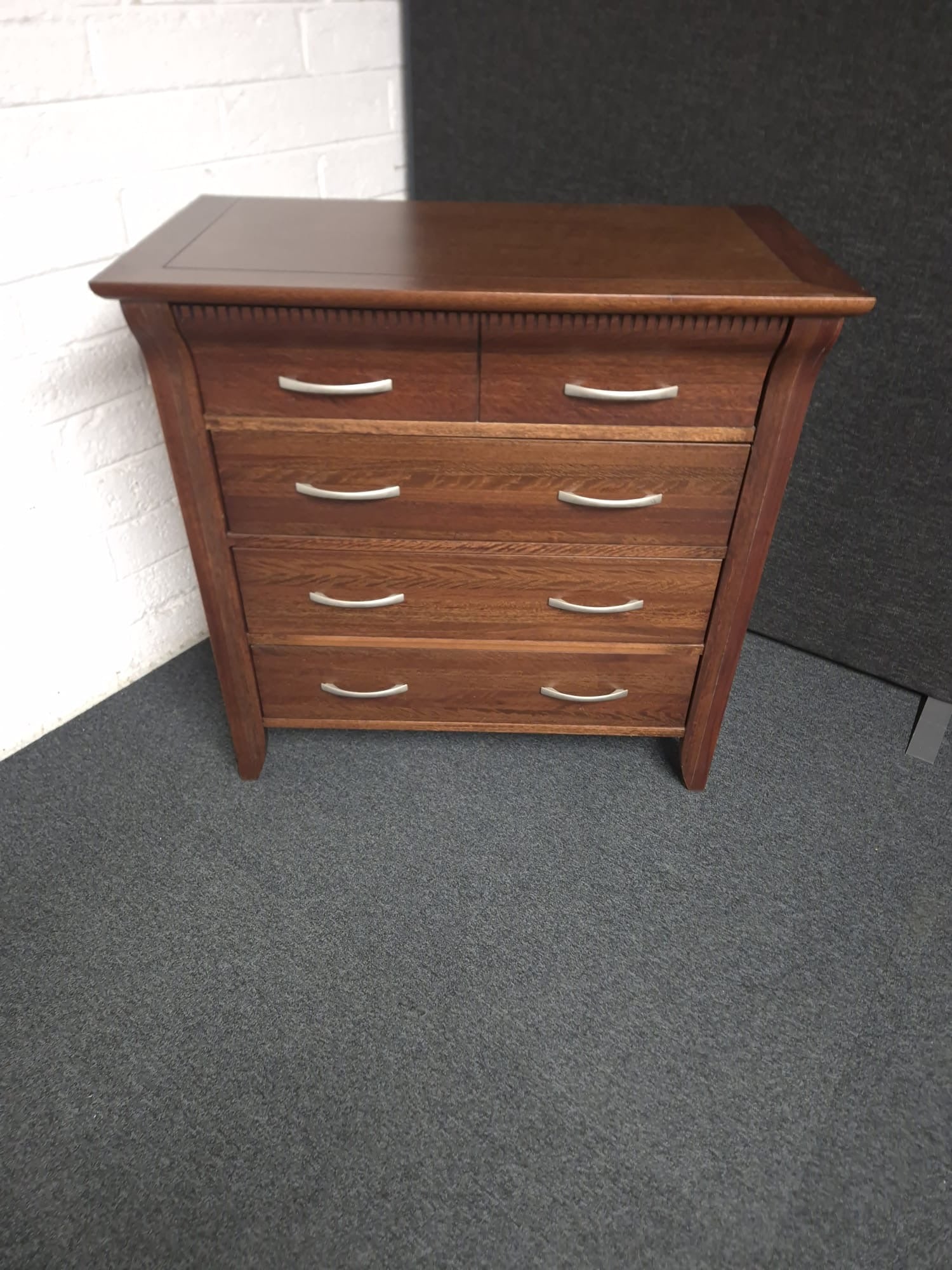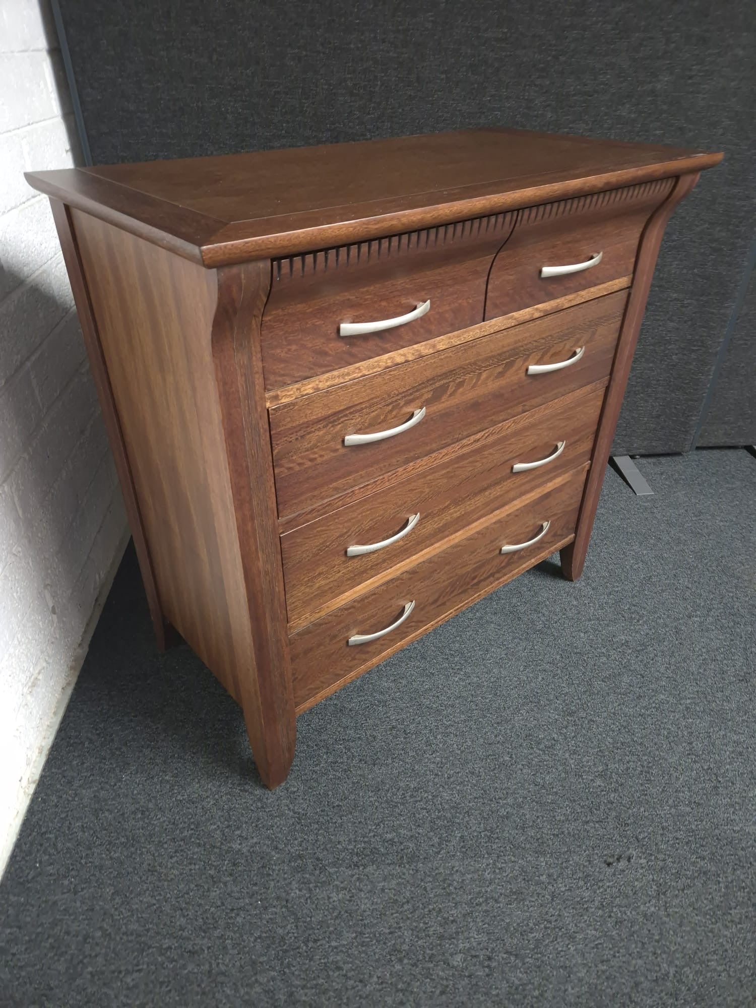Tall solid dark wood stained 3+2 chest of drawers ( H 930 x W 940 x 500 mm) 1225