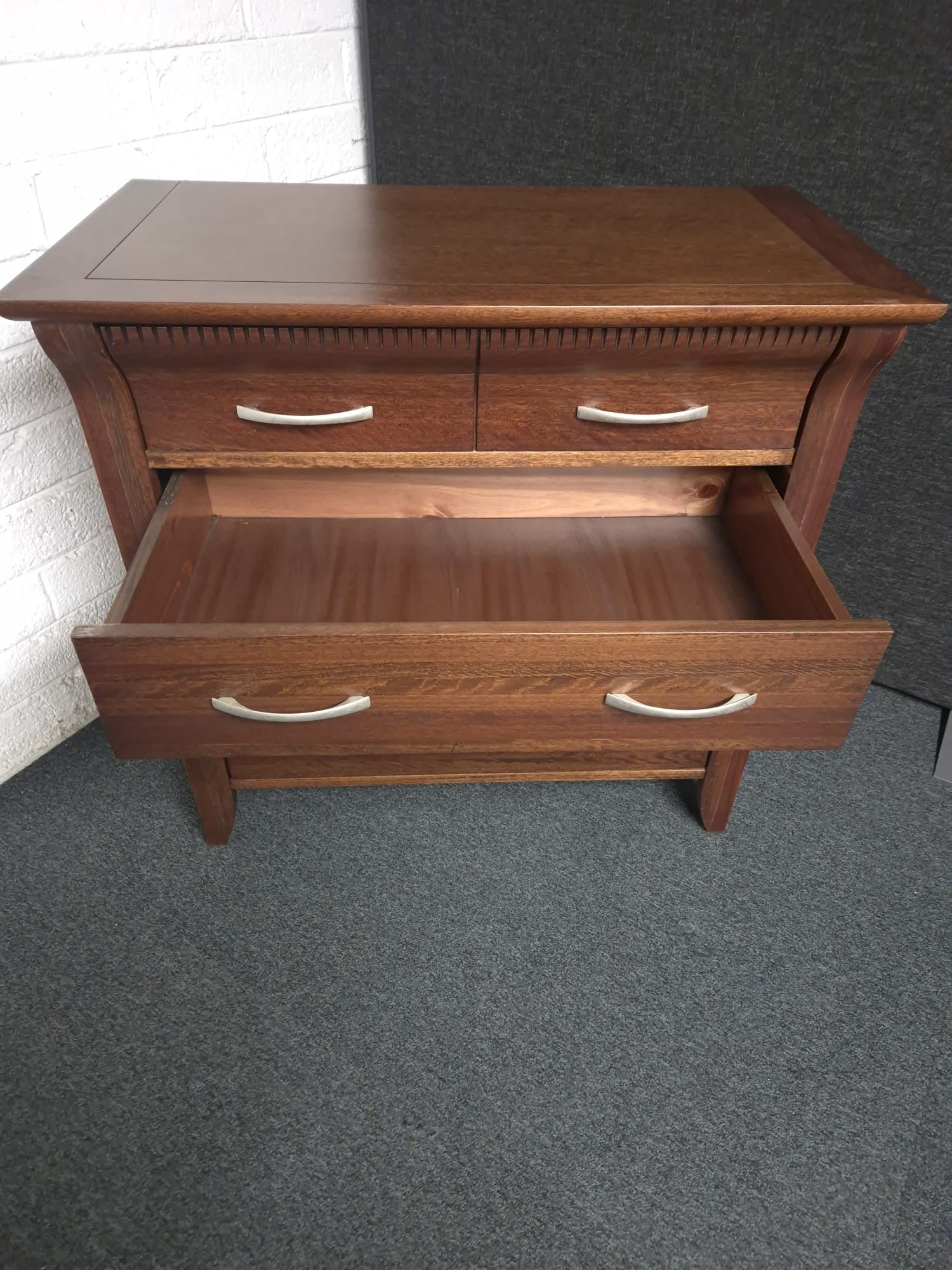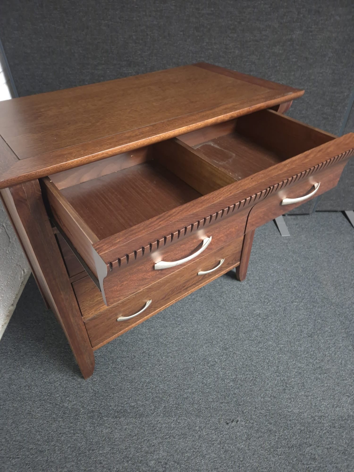 - Share: Tall solid dark wood stained 3+2 chest of drawers ( H 930 x W 940 x 500 mm) 1225